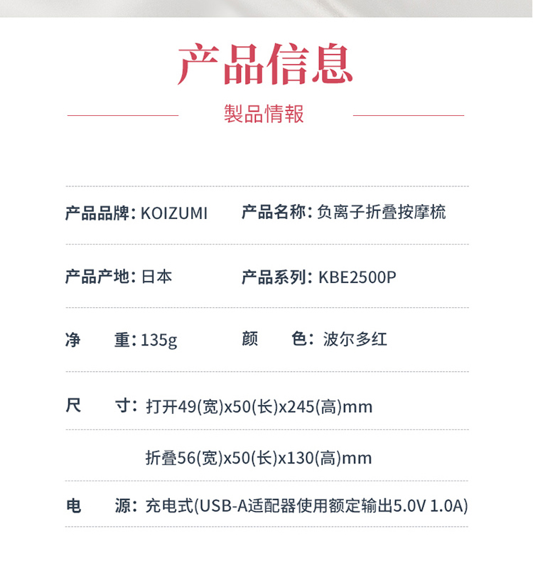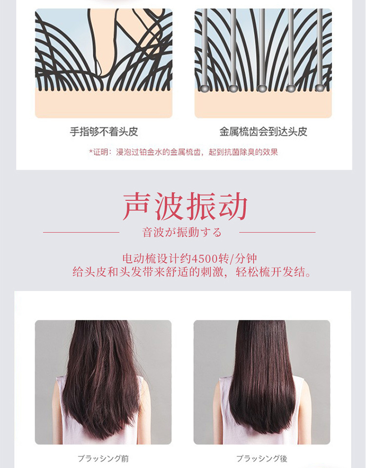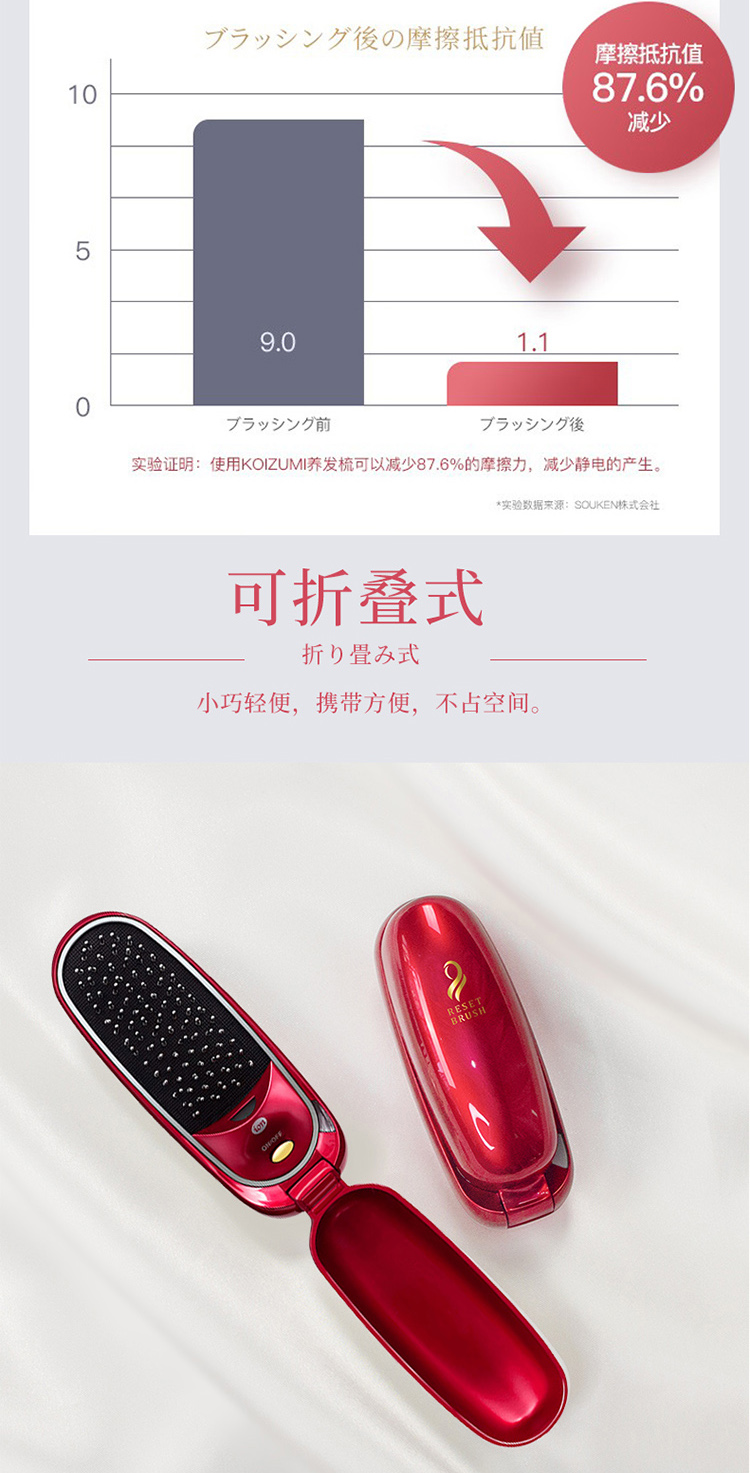日本小泉成器KOIZUMI便携防静电负离子电动按摩气垫梳子女网红款