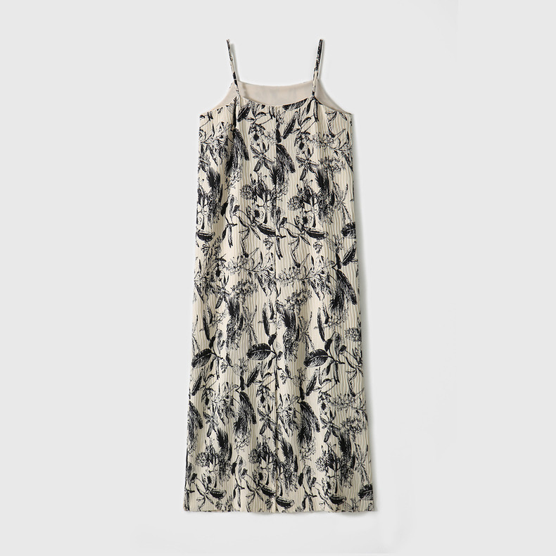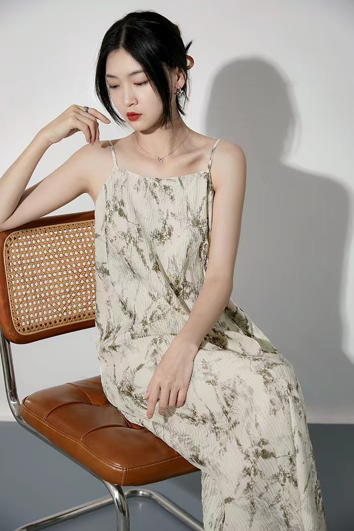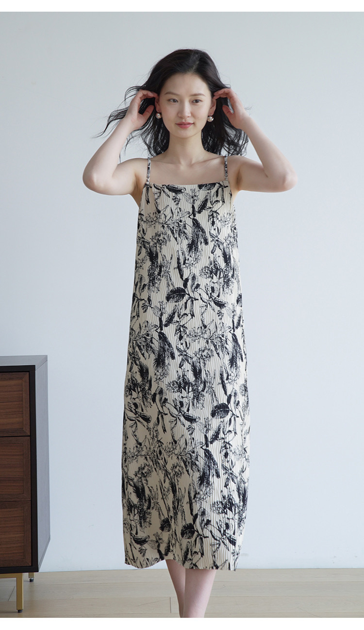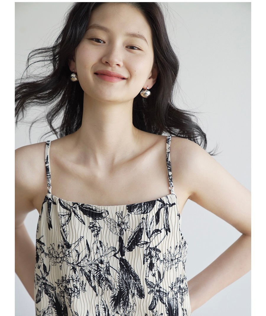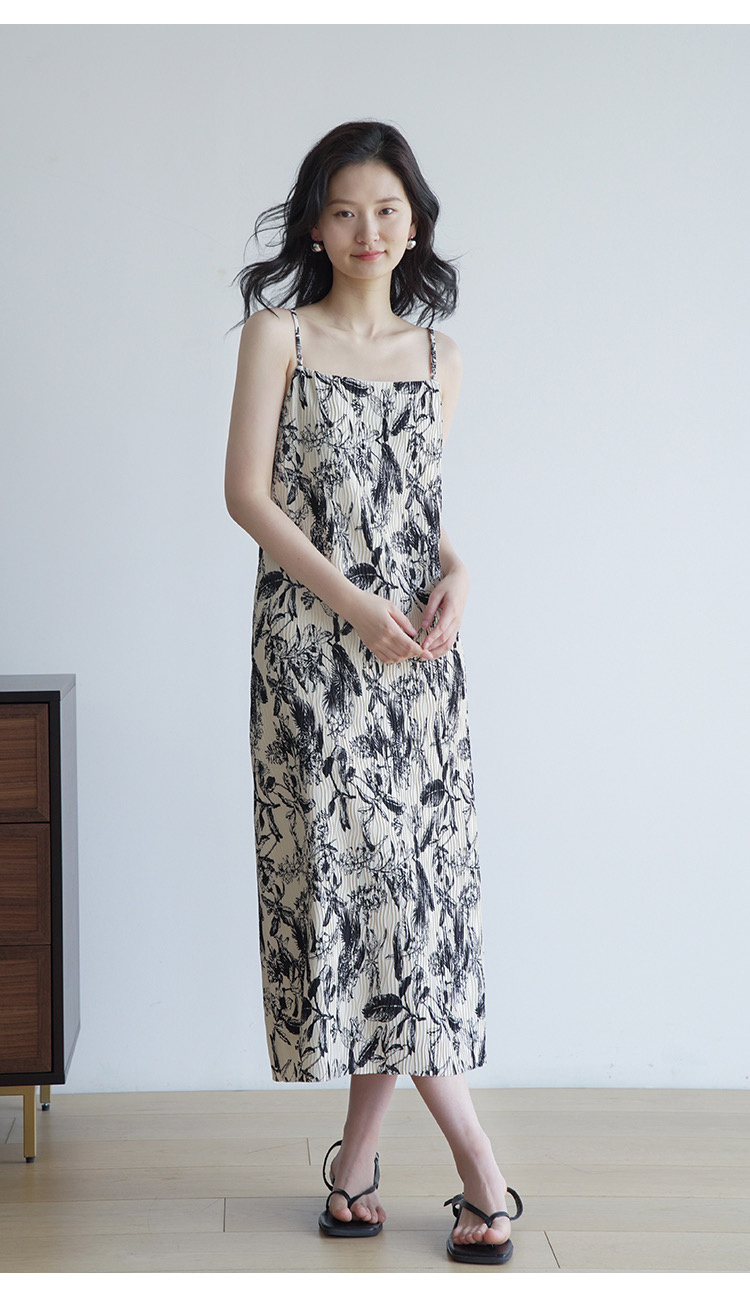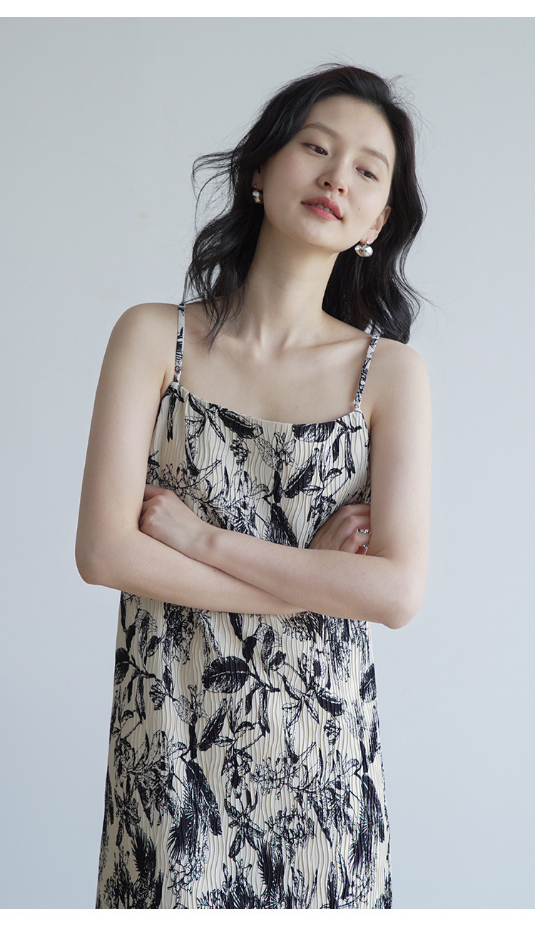 法式艺术压褶吊带连衣裙