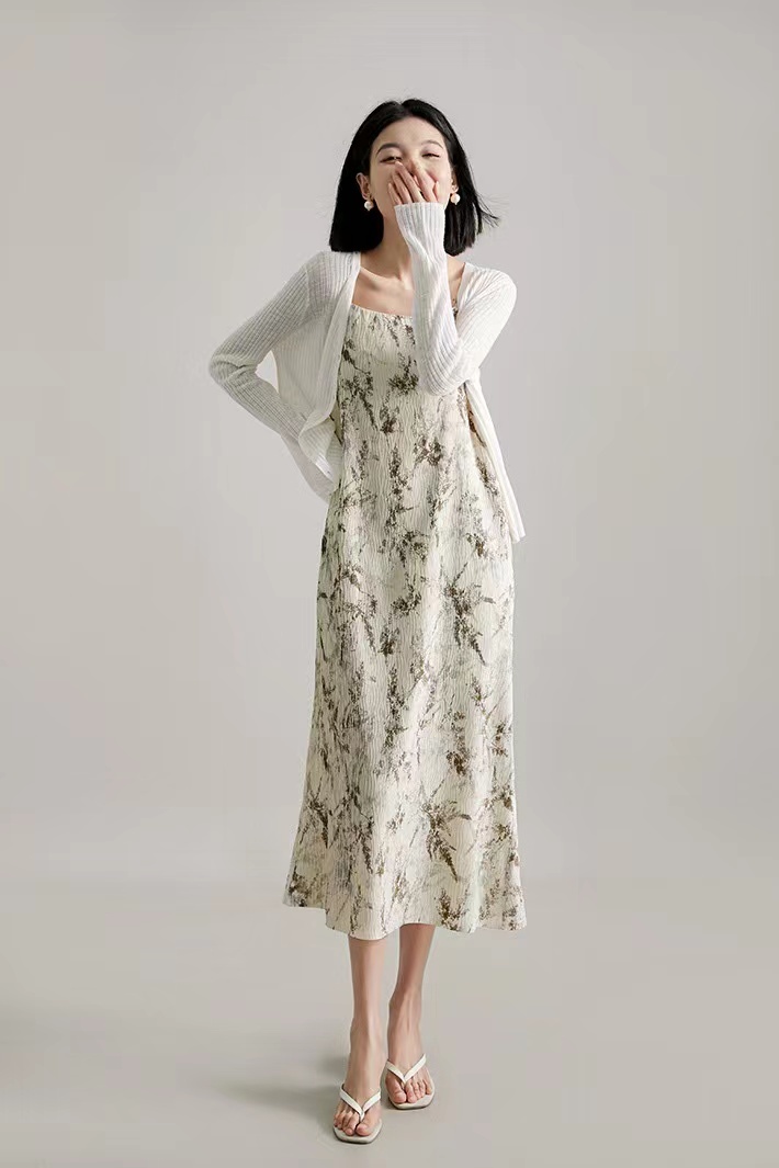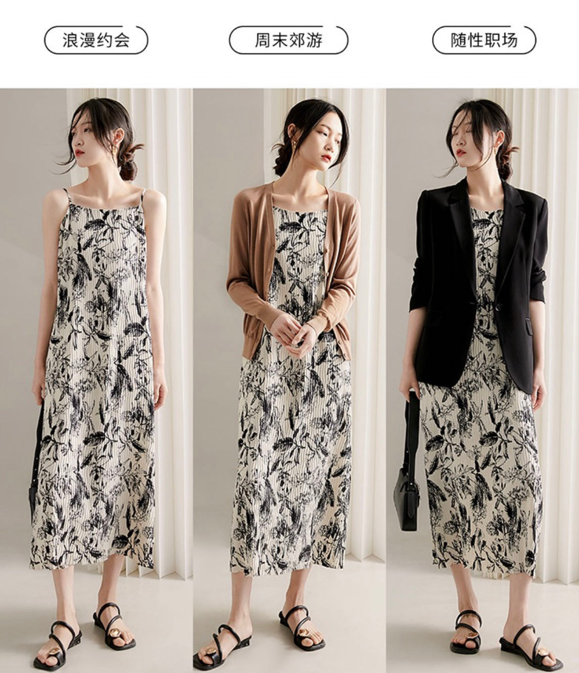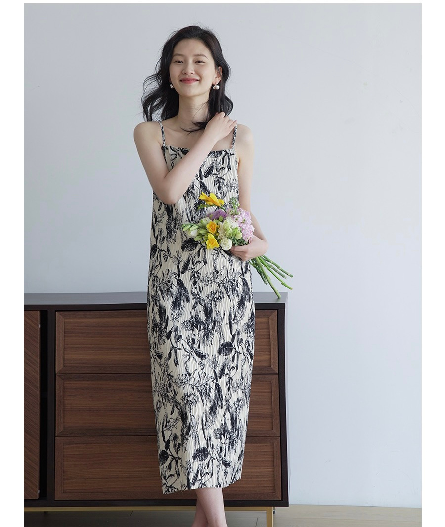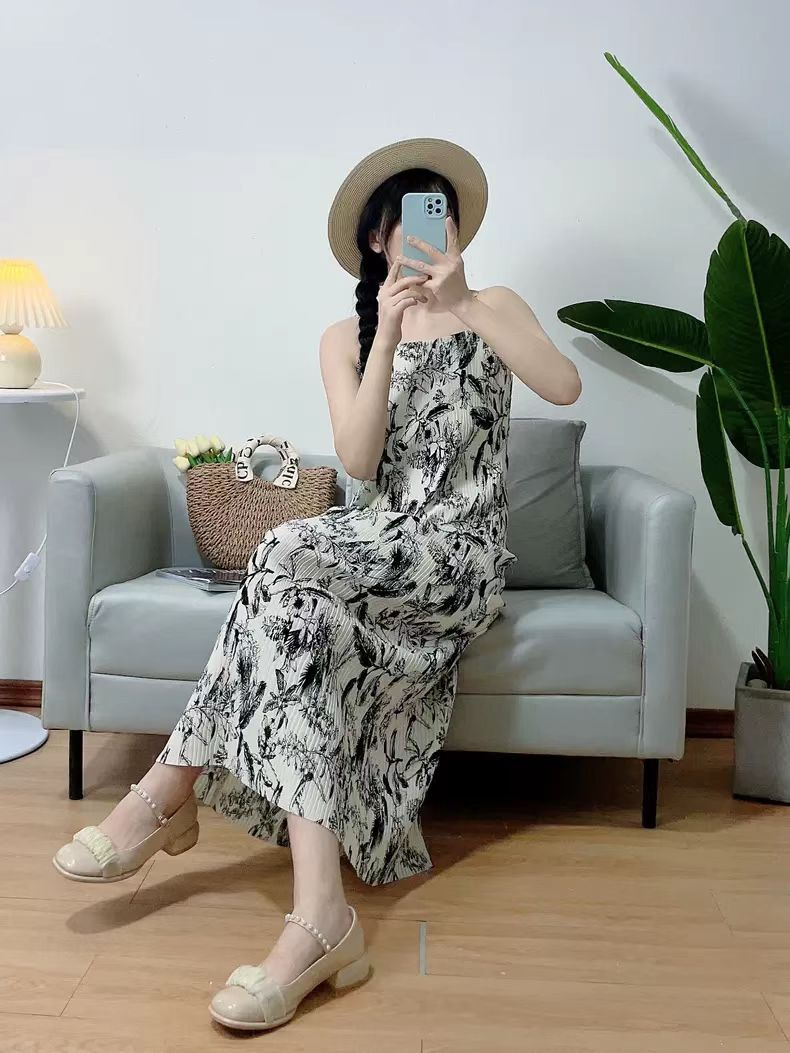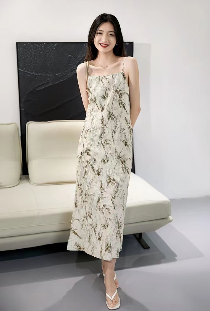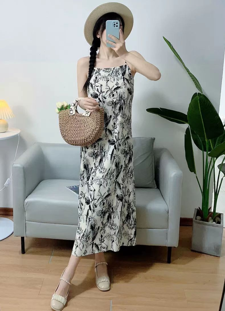 法式艺术压褶吊带连衣裙