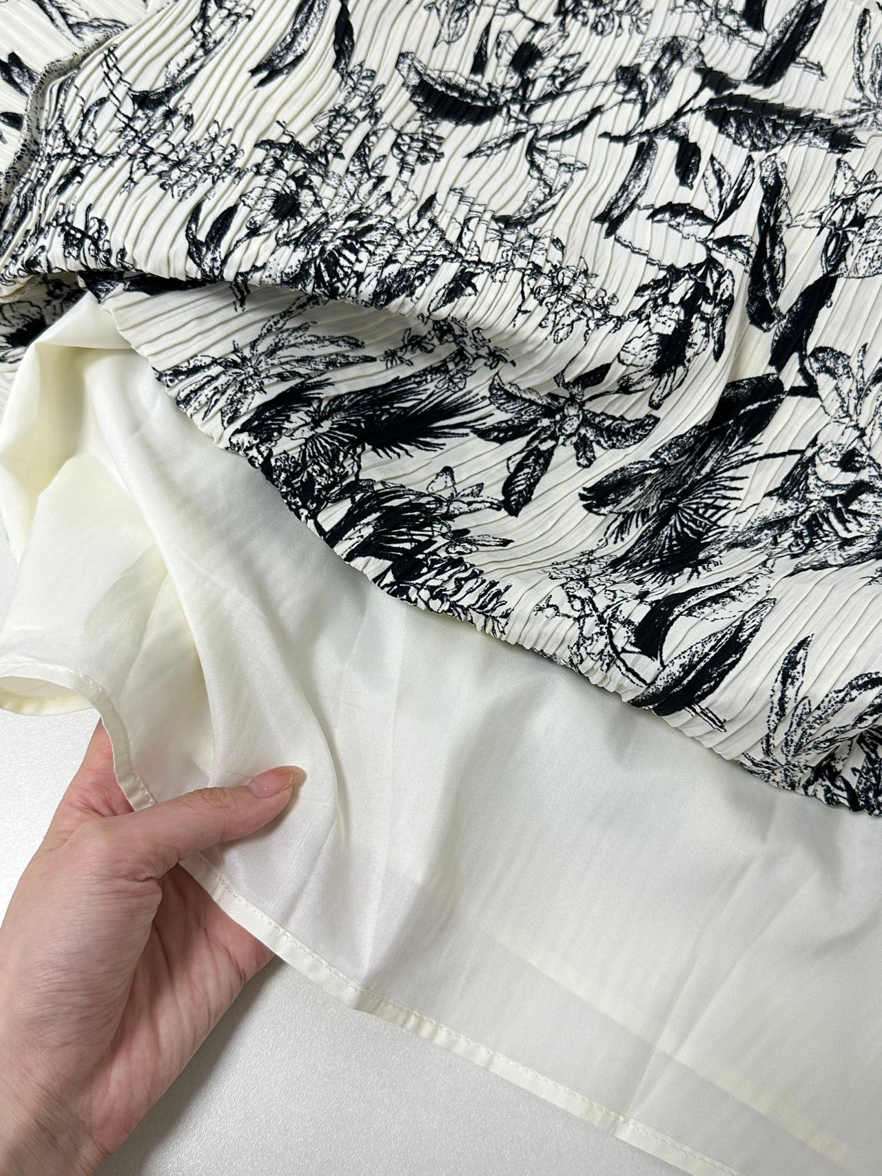 高端品质的裙子,连内衬都做的这么细致~ 面料柔滑清爽,手感超级好~ 做工走线都非常工整,看不到一点线头