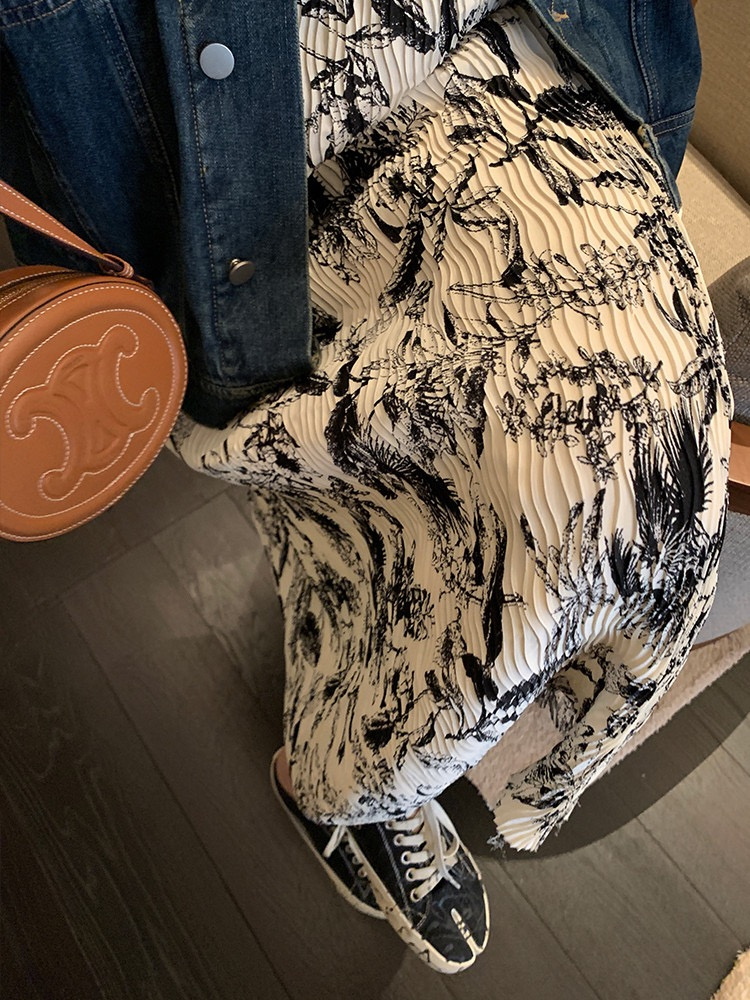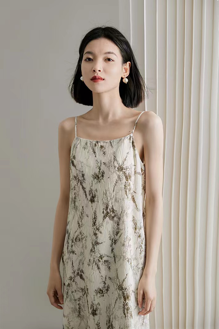 除了制作工艺 水墨风格的印花也十分繁杂 光是染色都得花3-5天,还要不停的去完善细节 才带来这件“完美主义者”的连衣裙 上身十分显瘦显气质~适合各种身型