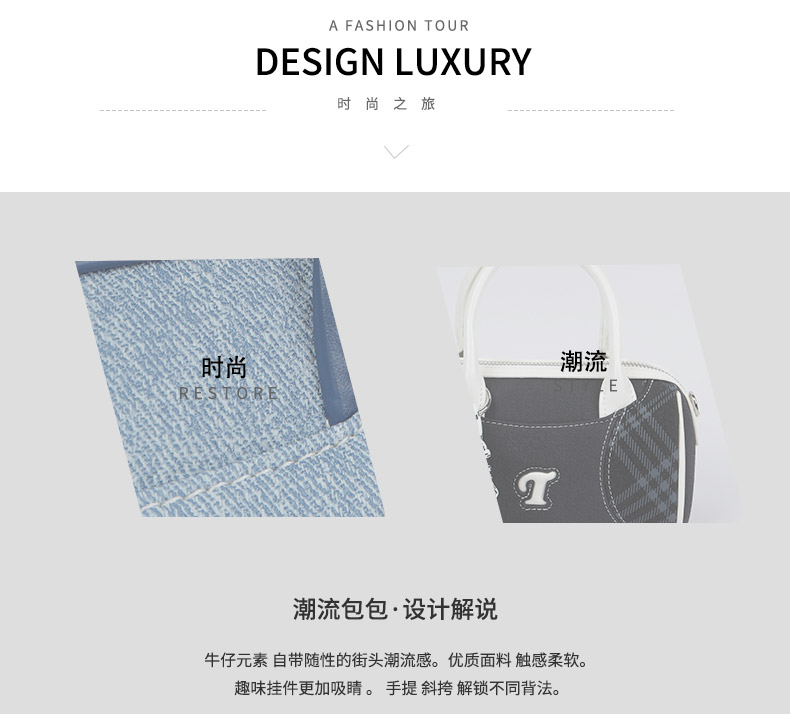 质感时装牛仔元素波士顿斜挎包-纪念日百货门店同款169263666