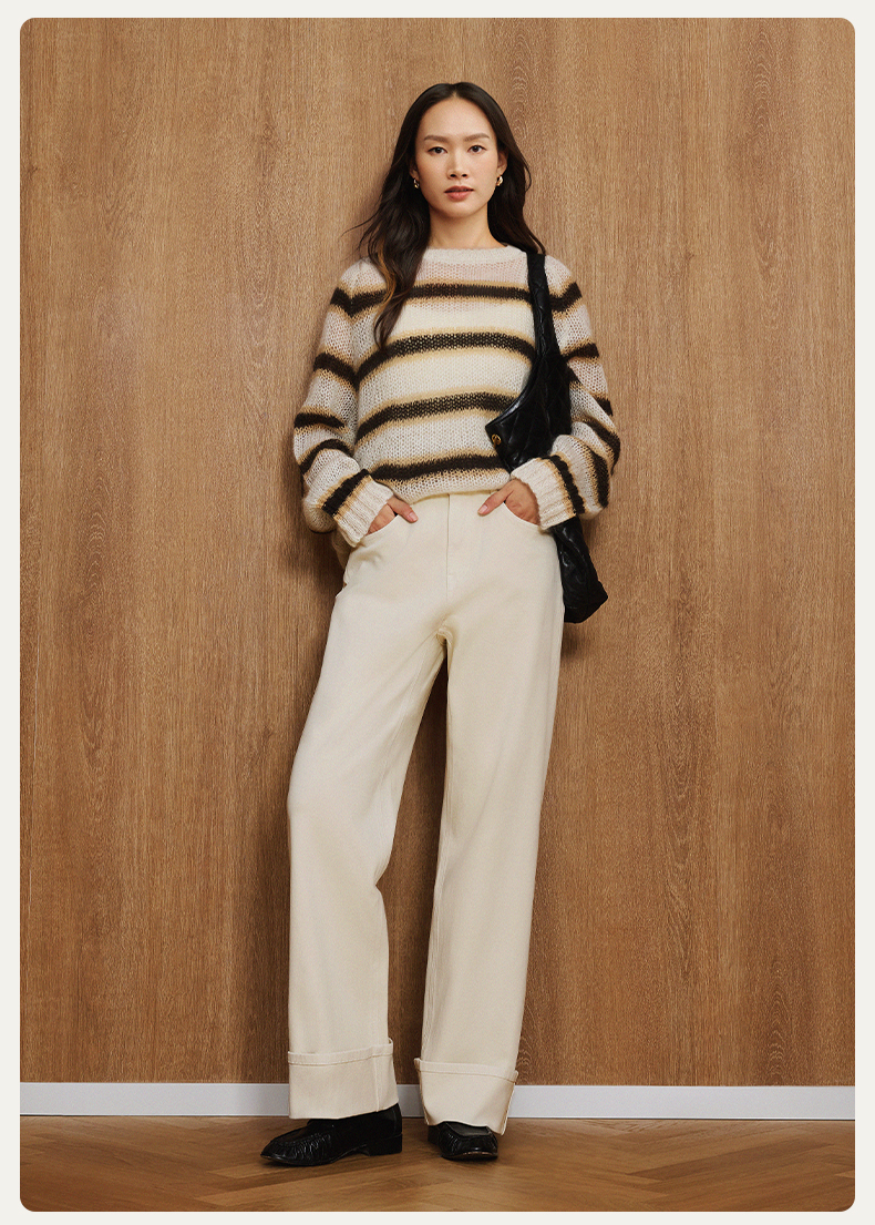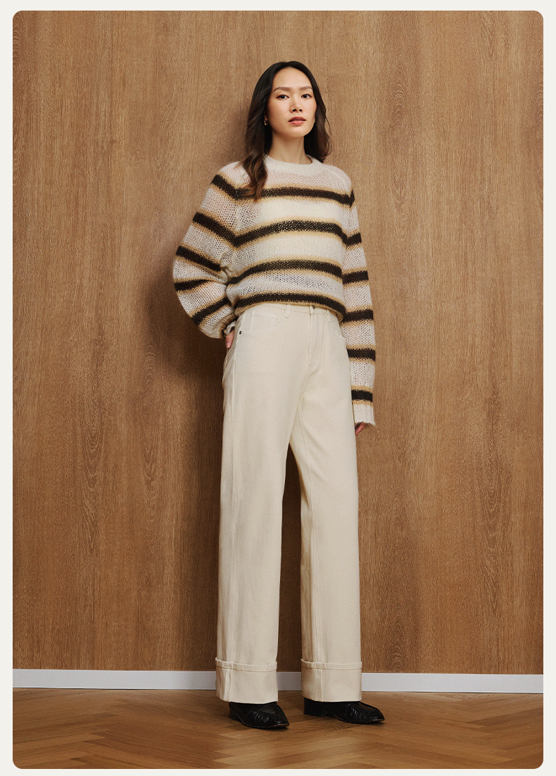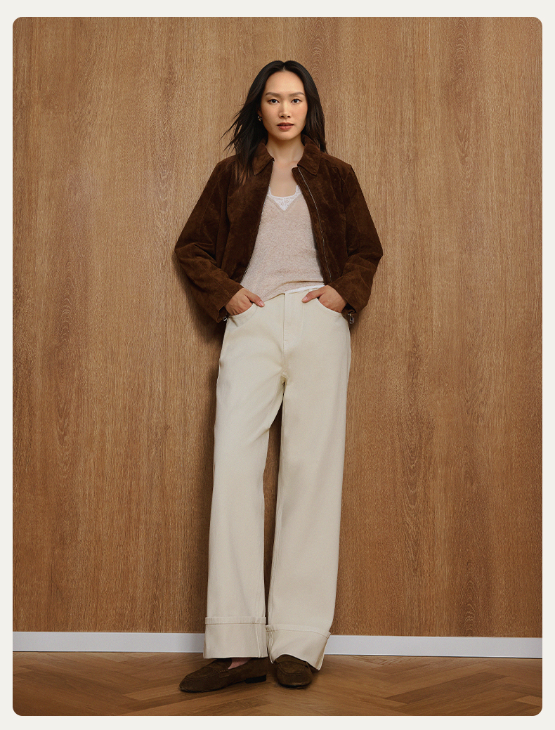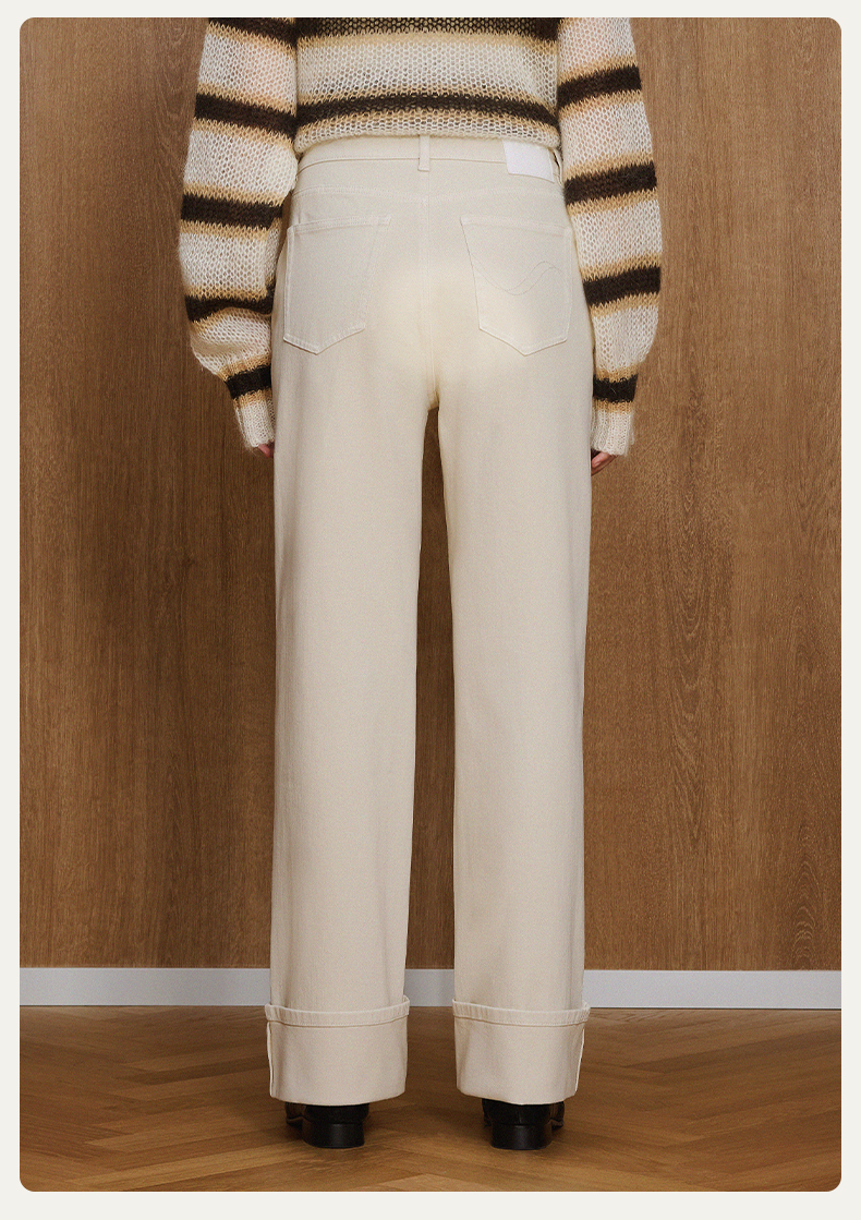 【白色翻边薯条裤】simplepieces秋新款SPS牛仔女微弹宽松直筒裤