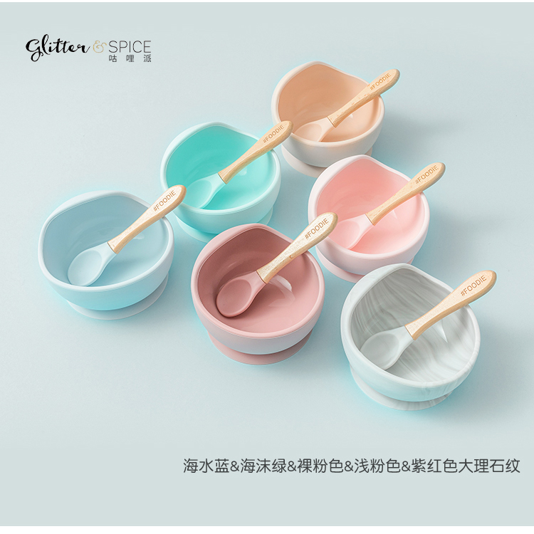 咕哩派glitterspice宝宝辅食碗婴儿碗勺套装硅胶吸盘碗餐具防摔碗