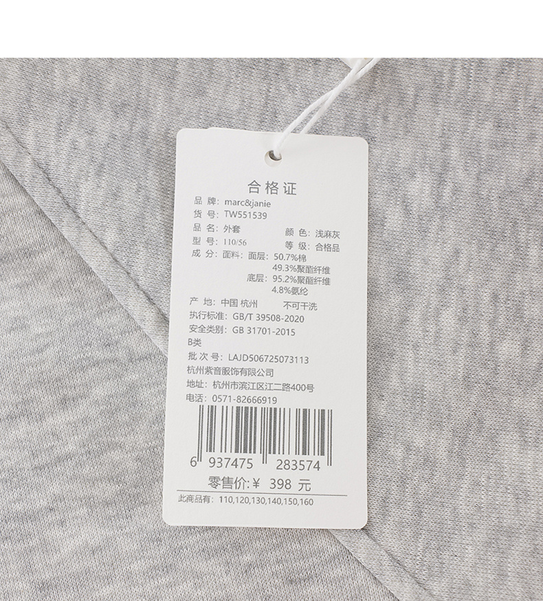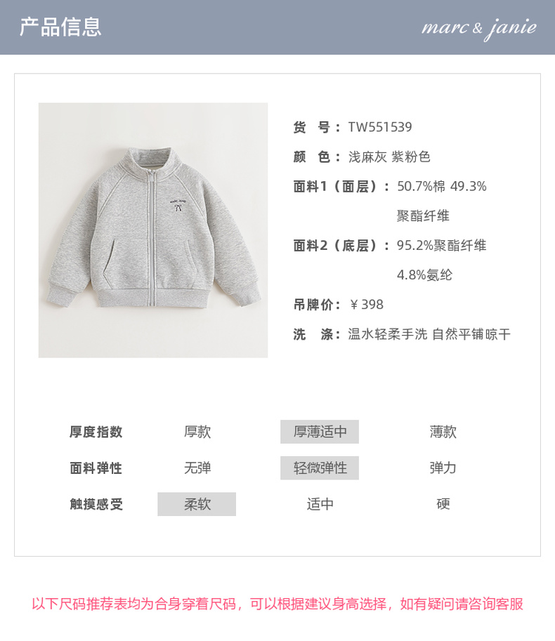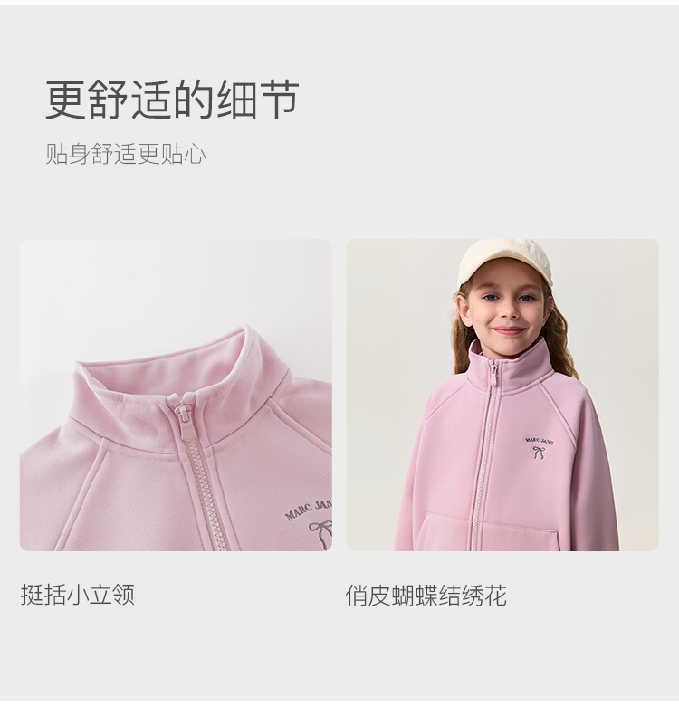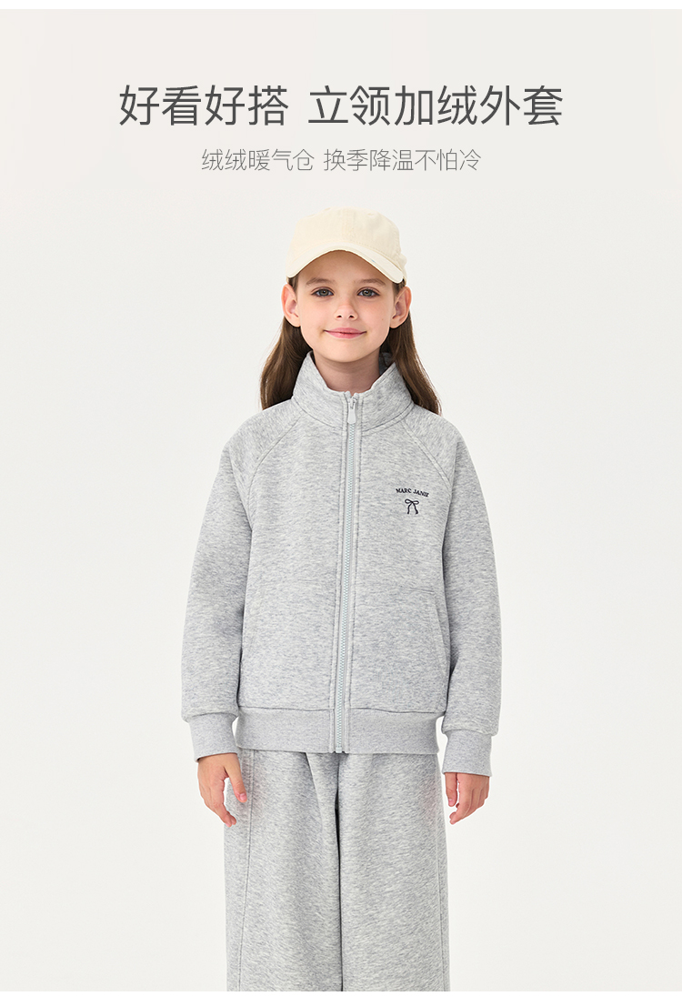 马克珍妮女童亲肤加绒立领外套2025年秋冬新款551539