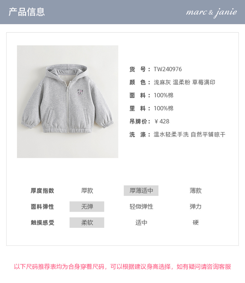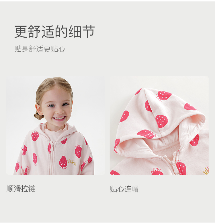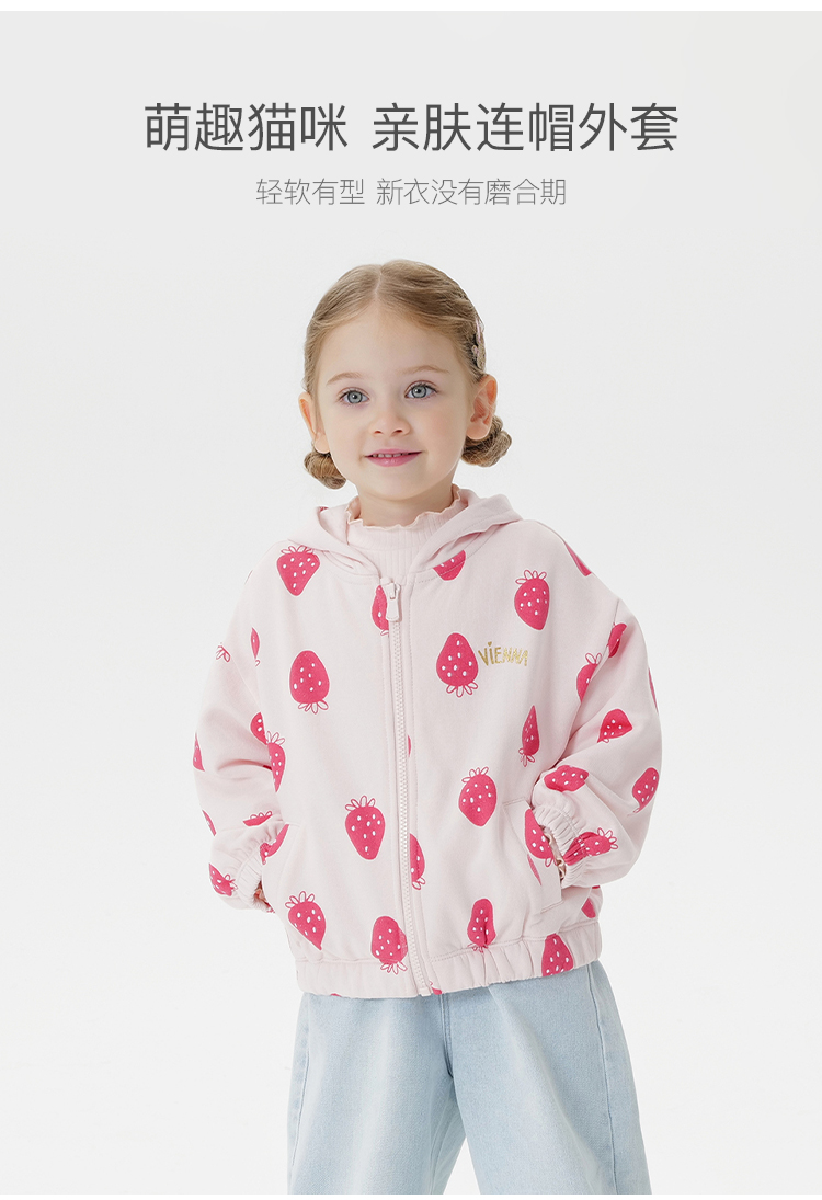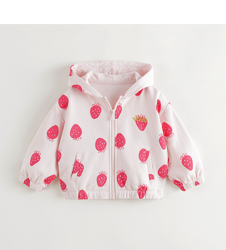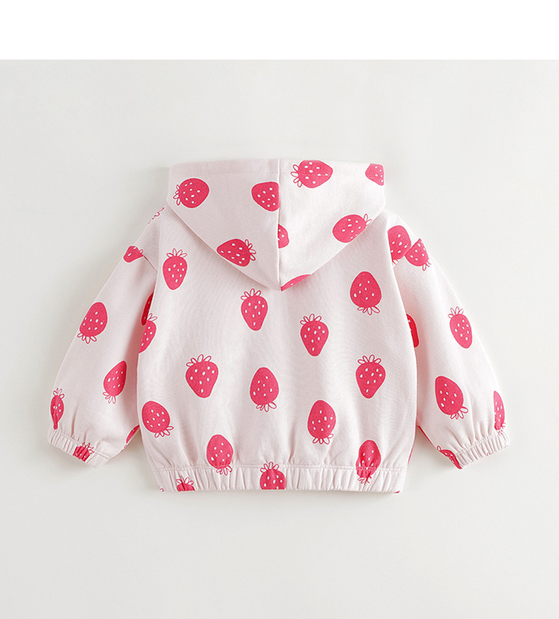 马克珍妮女童小草莓印花连帽外套儿童卫衣宝宝2025秋装新品551612