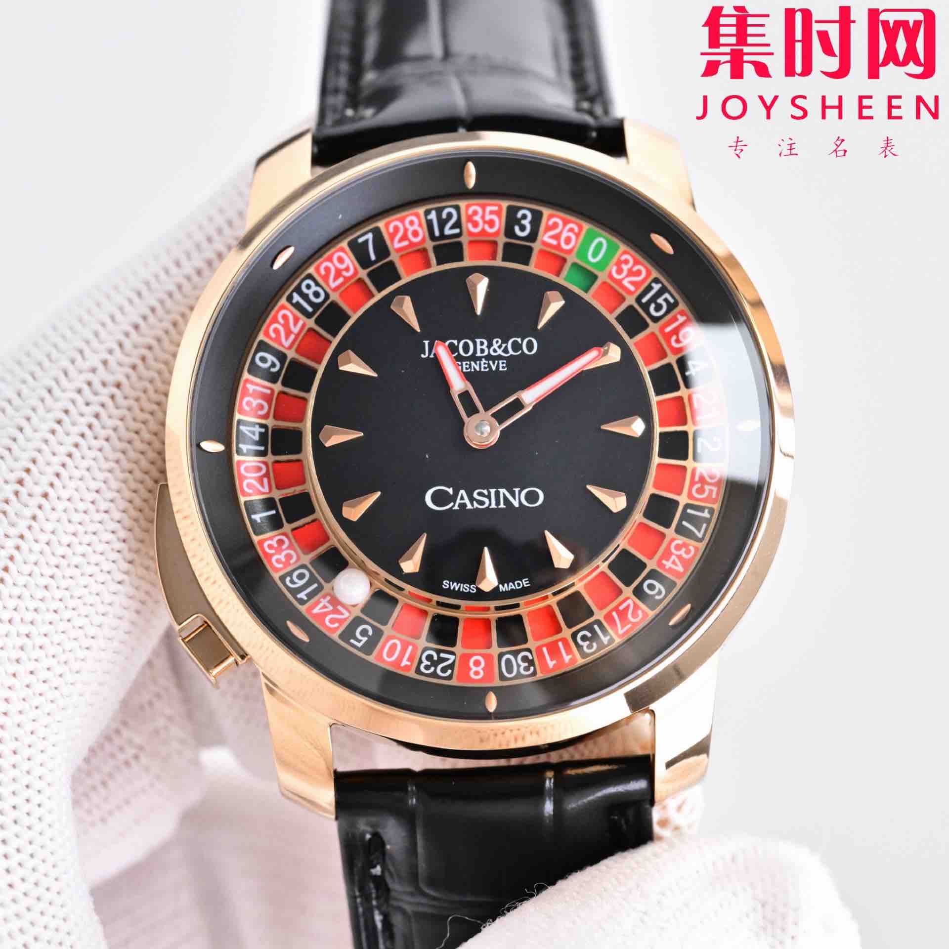 玩转时间博弈——Jacob & Co 捷克豹转盘 时来运转 男士腕表,搭载进口石英机芯精准走时,表径44mm 表盘内嵌可动赌盘装置,一按即启奢趣互动,红黑撞色表盘复刻经典轮盘美学,滚珠随手腕律动暗藏玄机,让腕间成为移动的娱乐场,点燃社交话题。316L精钢质感碰撞街头潮流,商务休闲皆成焦点~