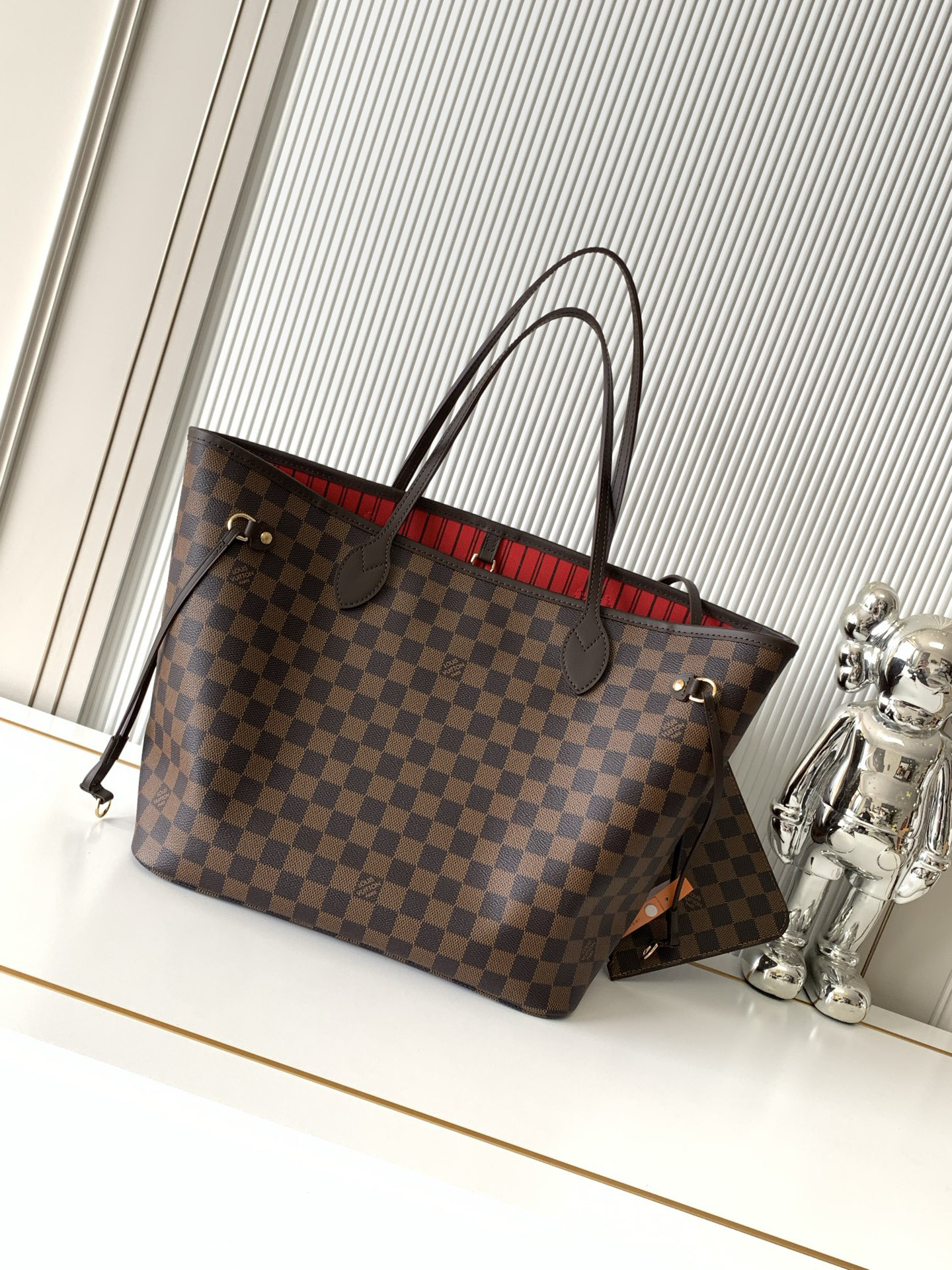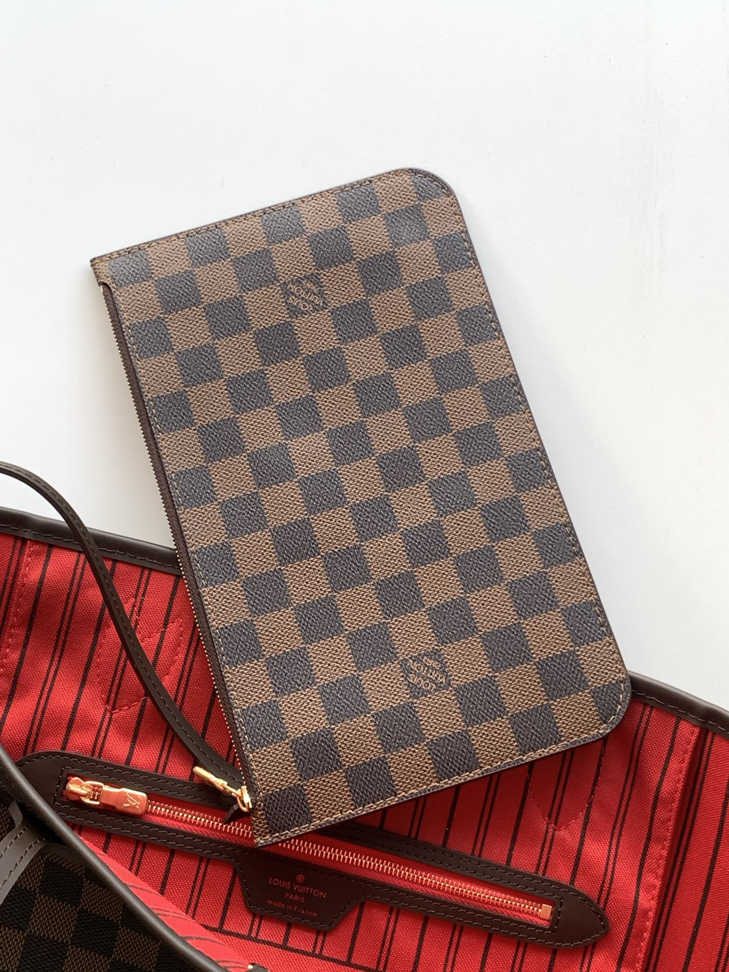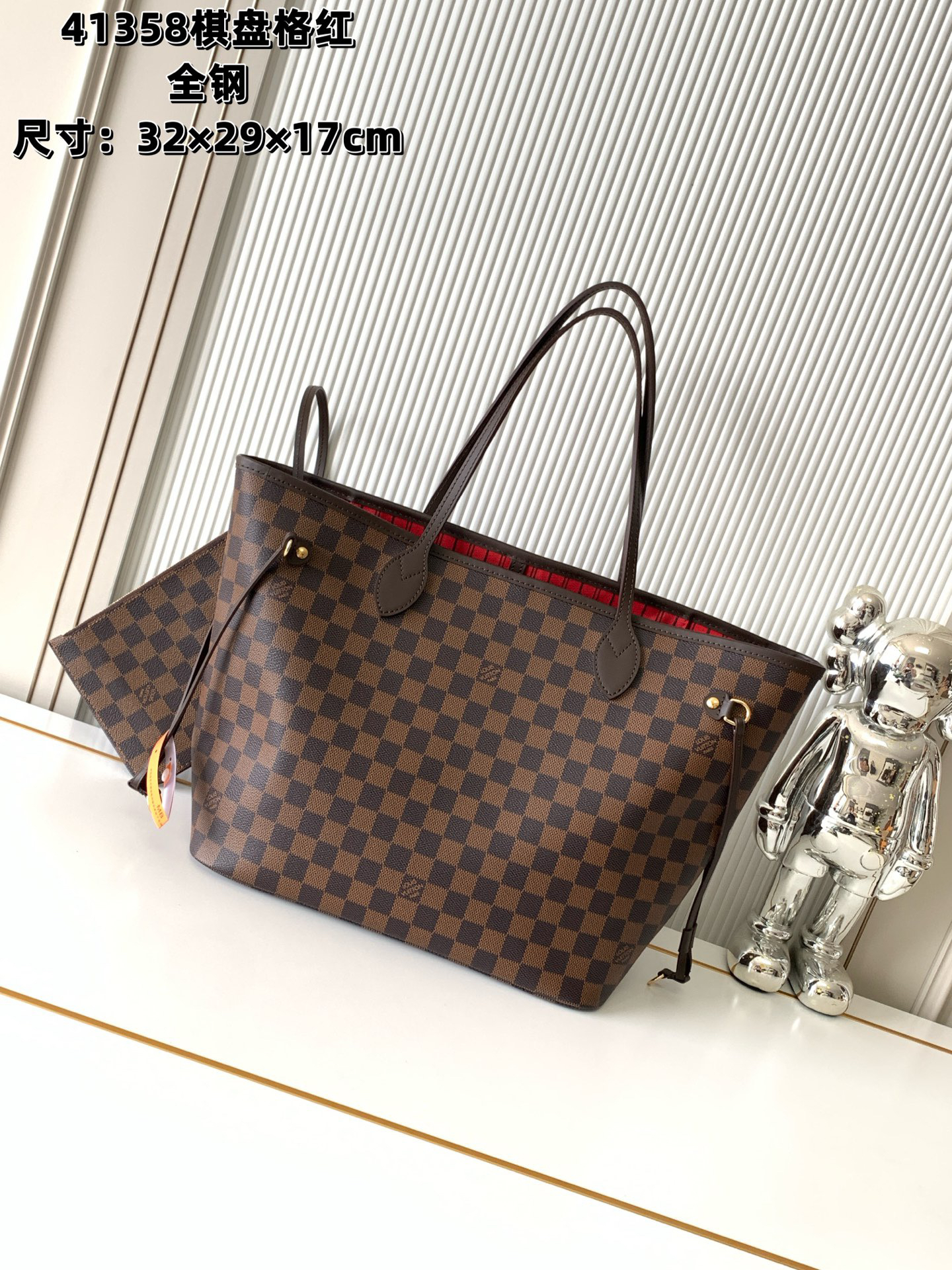 秋冬特惠💰1290 渠道级LV【全钢五金 变码芯片】te级LV 全套包装 41358棋盘格红 经典购物袋 中号 路易威登新款 Neverfull 全新演绎经典手袋,探索袋内精致细节。重新设计的内袋采用了清新的织物内衬和灵感源自路易威登档案馆的复古细节,最值得称道的莫过于可脱卸式拉链手包,它既可单独作为一只精致手拿包使用,亦可作为额外的口袋。 明快的内衬色调为 Monogram 经典帆布增加了更多活泼生动之感。