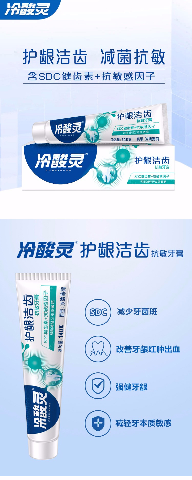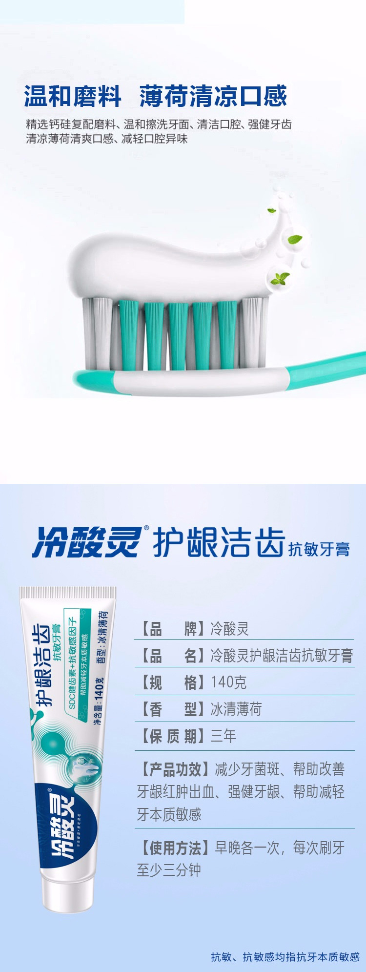 冷酸灵护龈洁齿抗敏牙膏140g随机赠送其他品牌牙刷2支