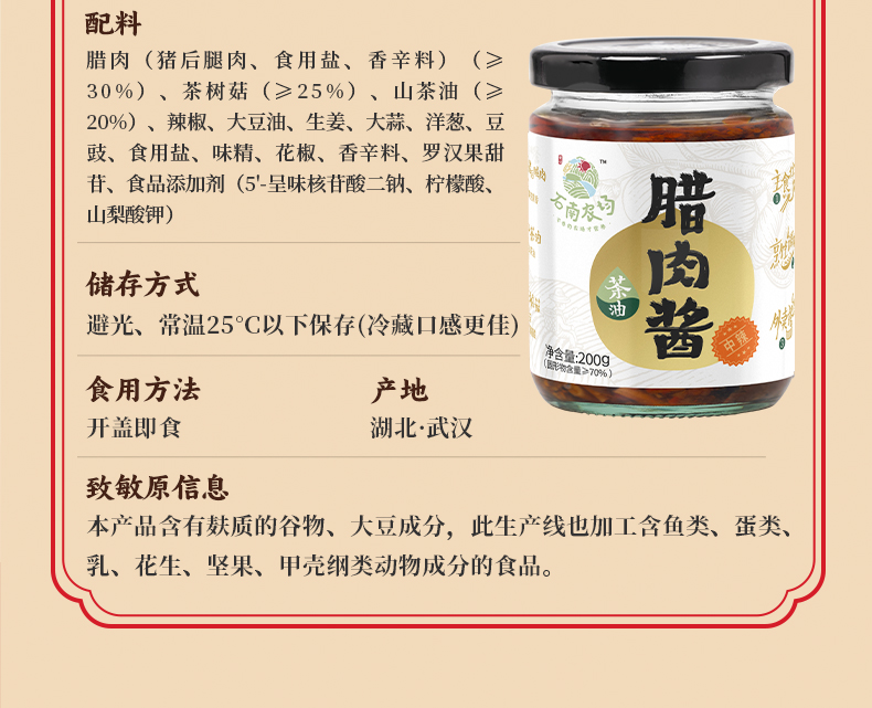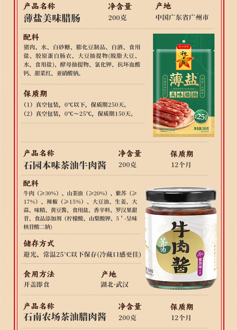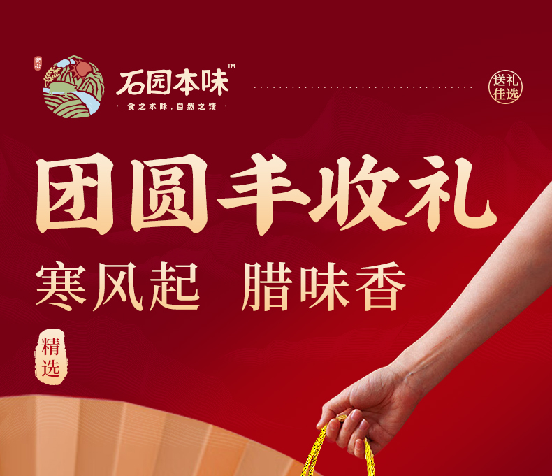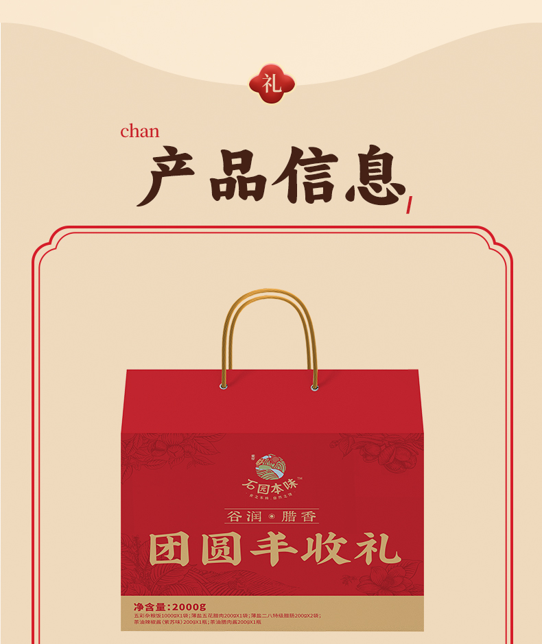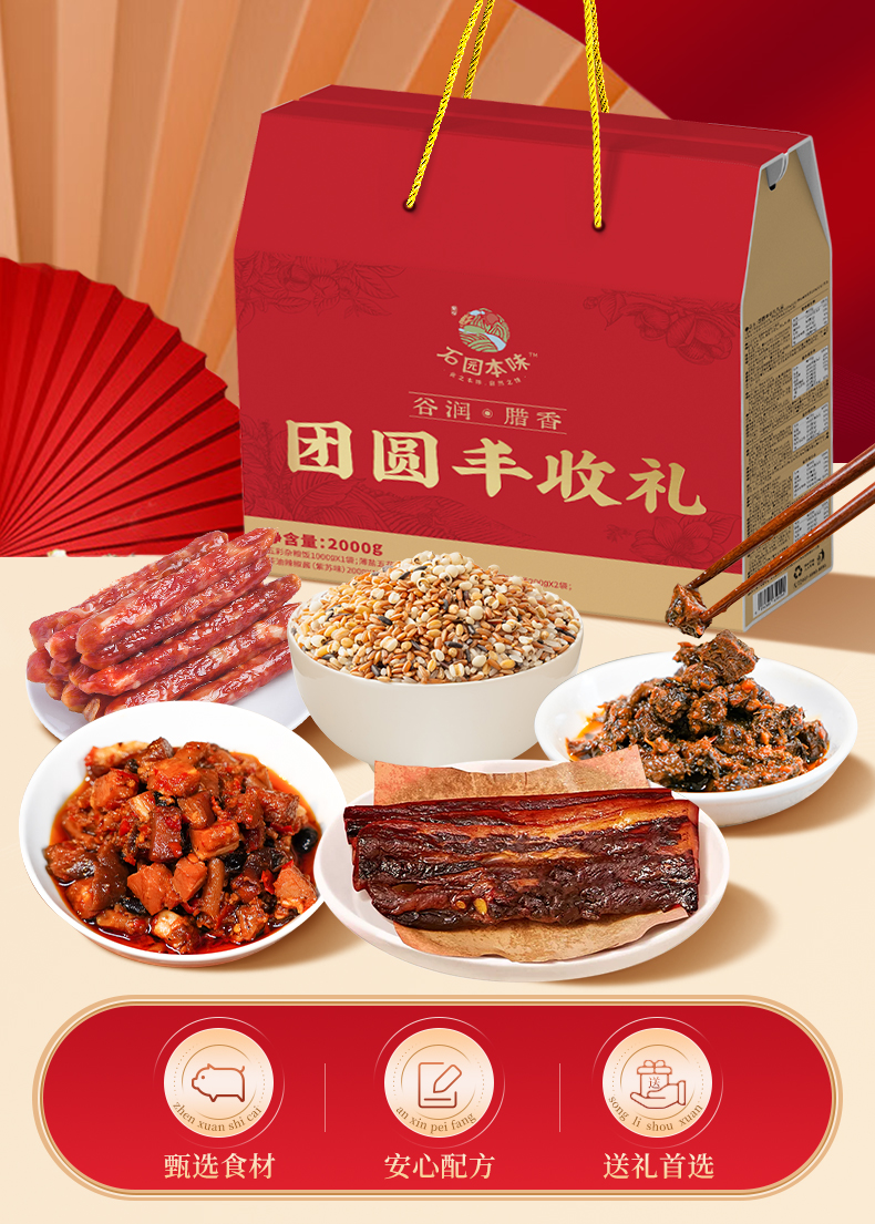 咸宁 石园本味 团圆丰年礼-腊味成双福盒2000g(杂粮饭1000g/袋、五花腊肉200g/袋、美味腊肠200g/袋*2、腊肉酱200g/瓶、 牛肉酱200g/瓶 )