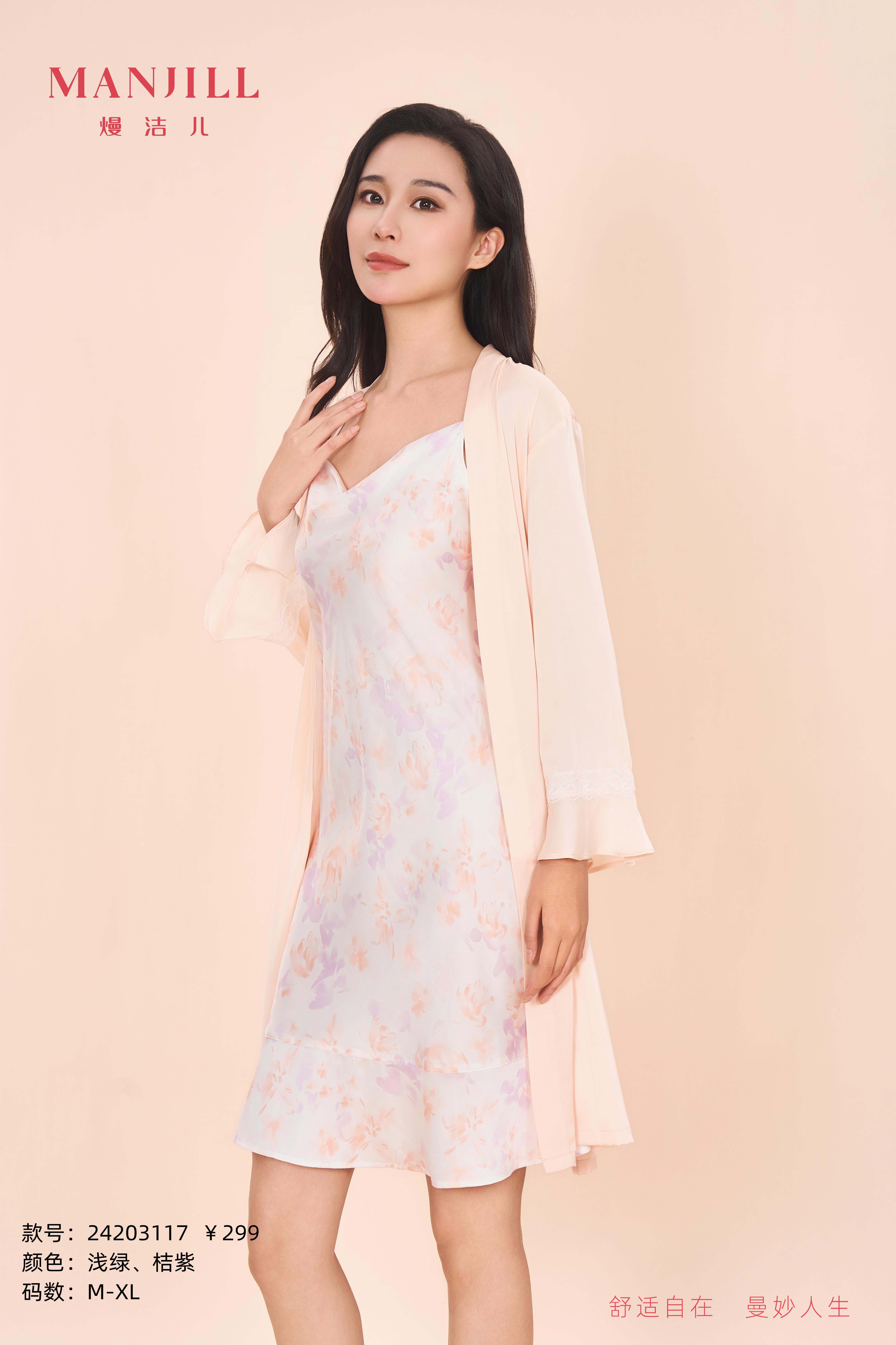 【商场同款】熳洁儿 春夏女士冰雪丝和尚领七分袖袍外套+吊带裙慵懒优雅24203117