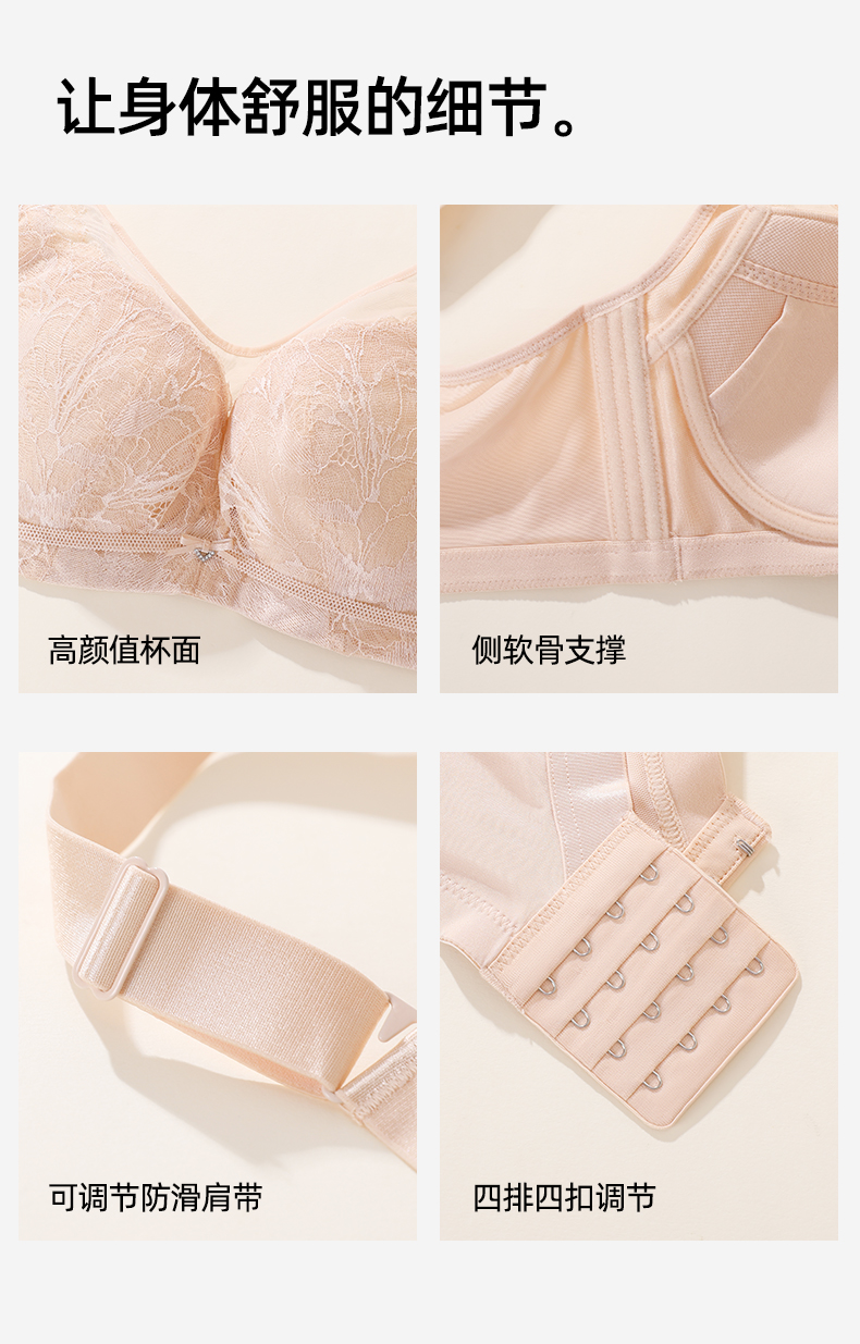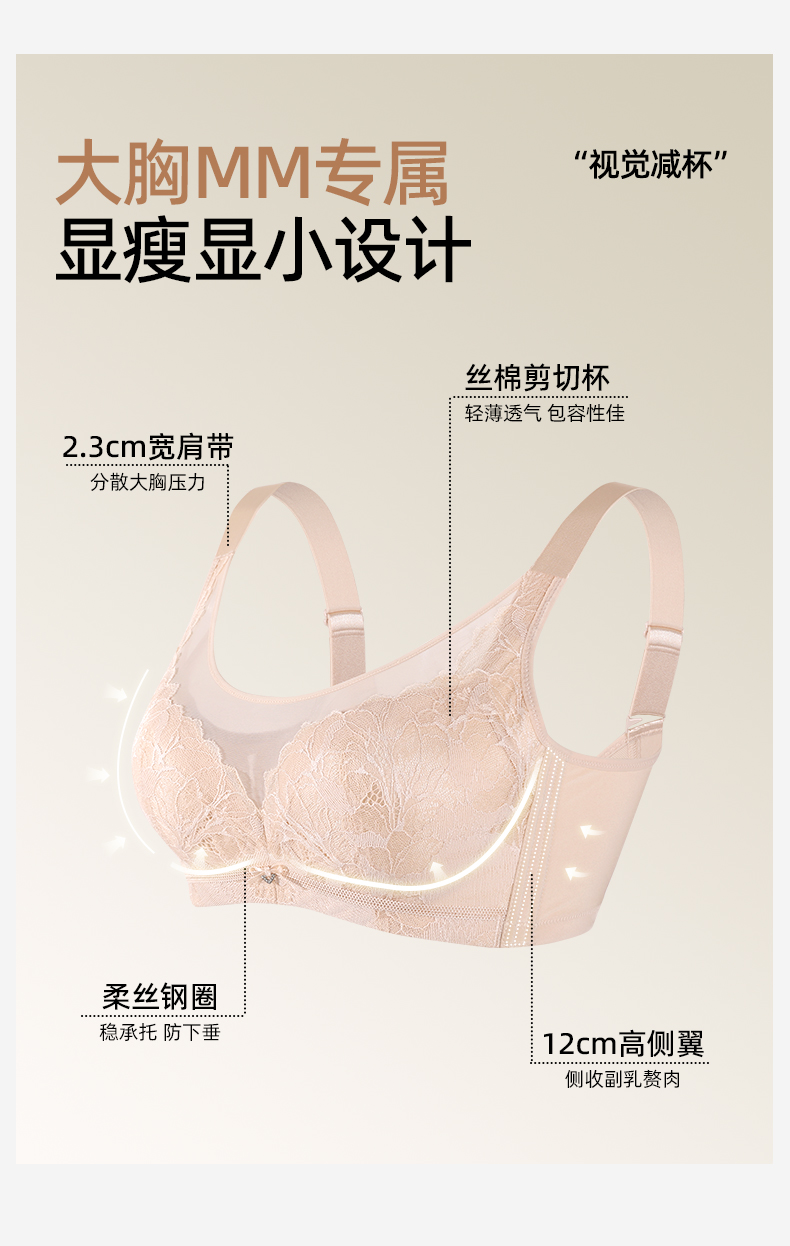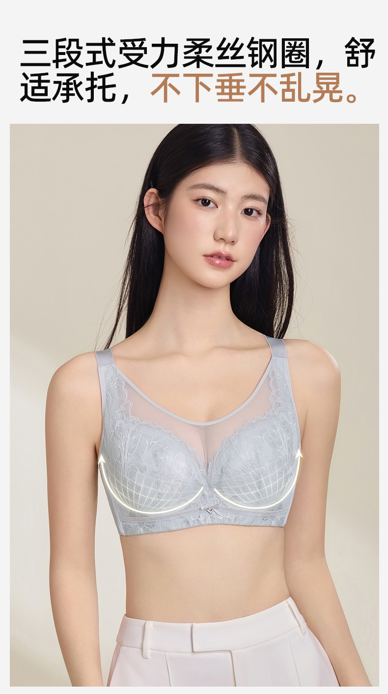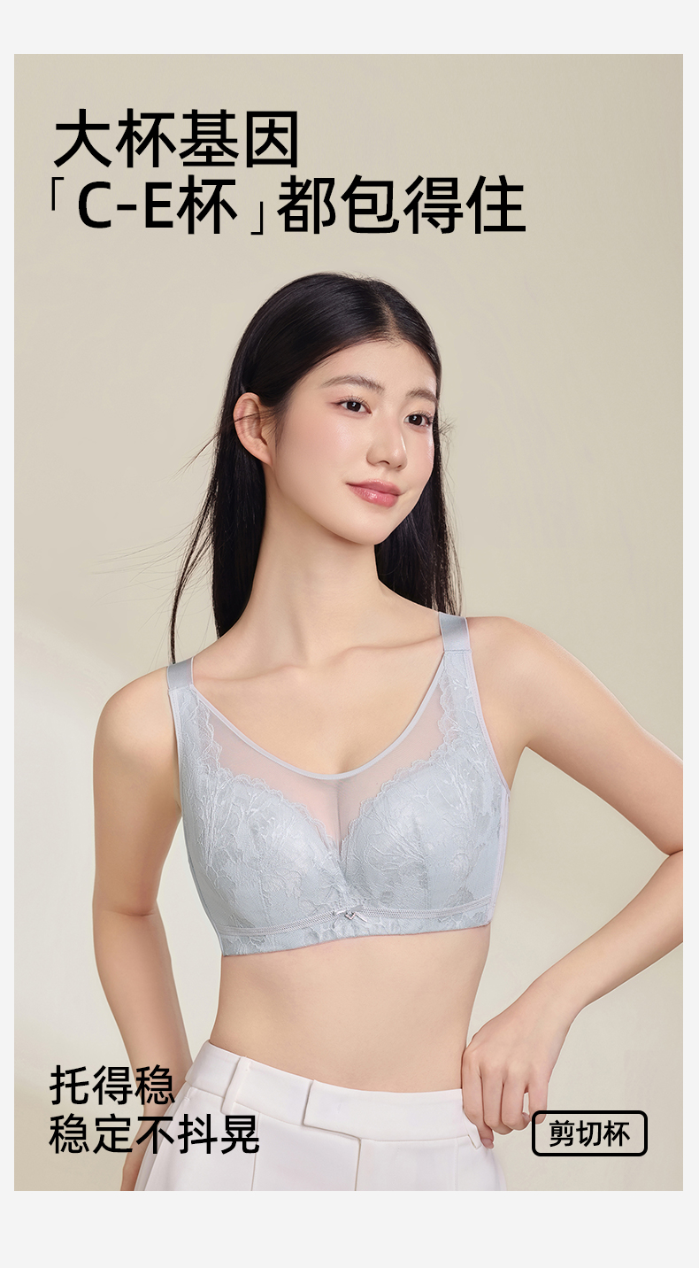 【商场同款】熳洁儿 大胸显小抹胸式剪切杯文胸蕾丝搭配无痕CDE杯24201331