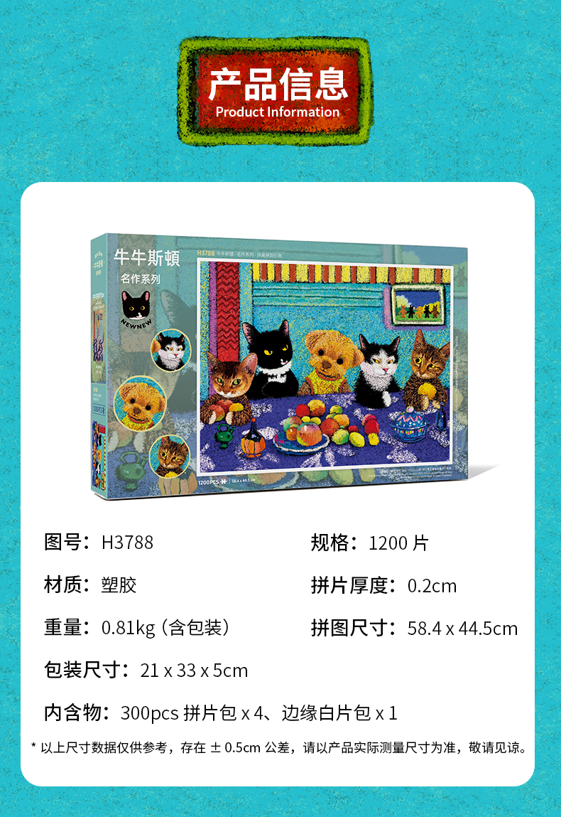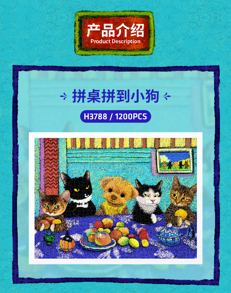 1200片 平面塑料拼图 H3788 牛牛斯頓-名作系列-拼桌拼到小狗