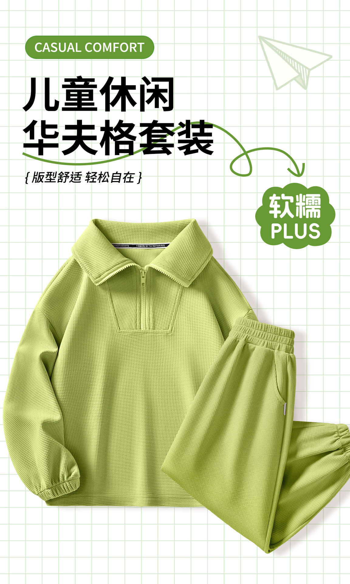 小黄鸭儿童套装2024年新款春季华夫格女童套装时尚洋气休闲两件套