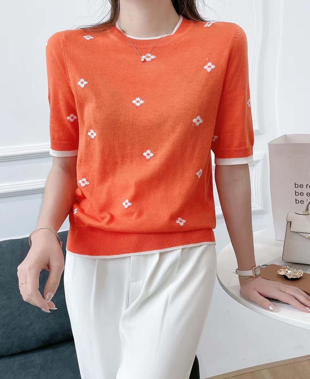 女四叶草菱形花上衣368