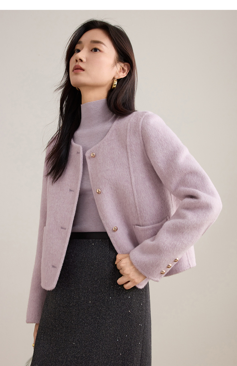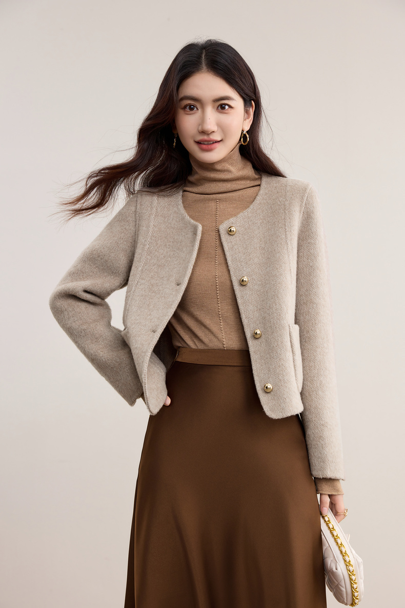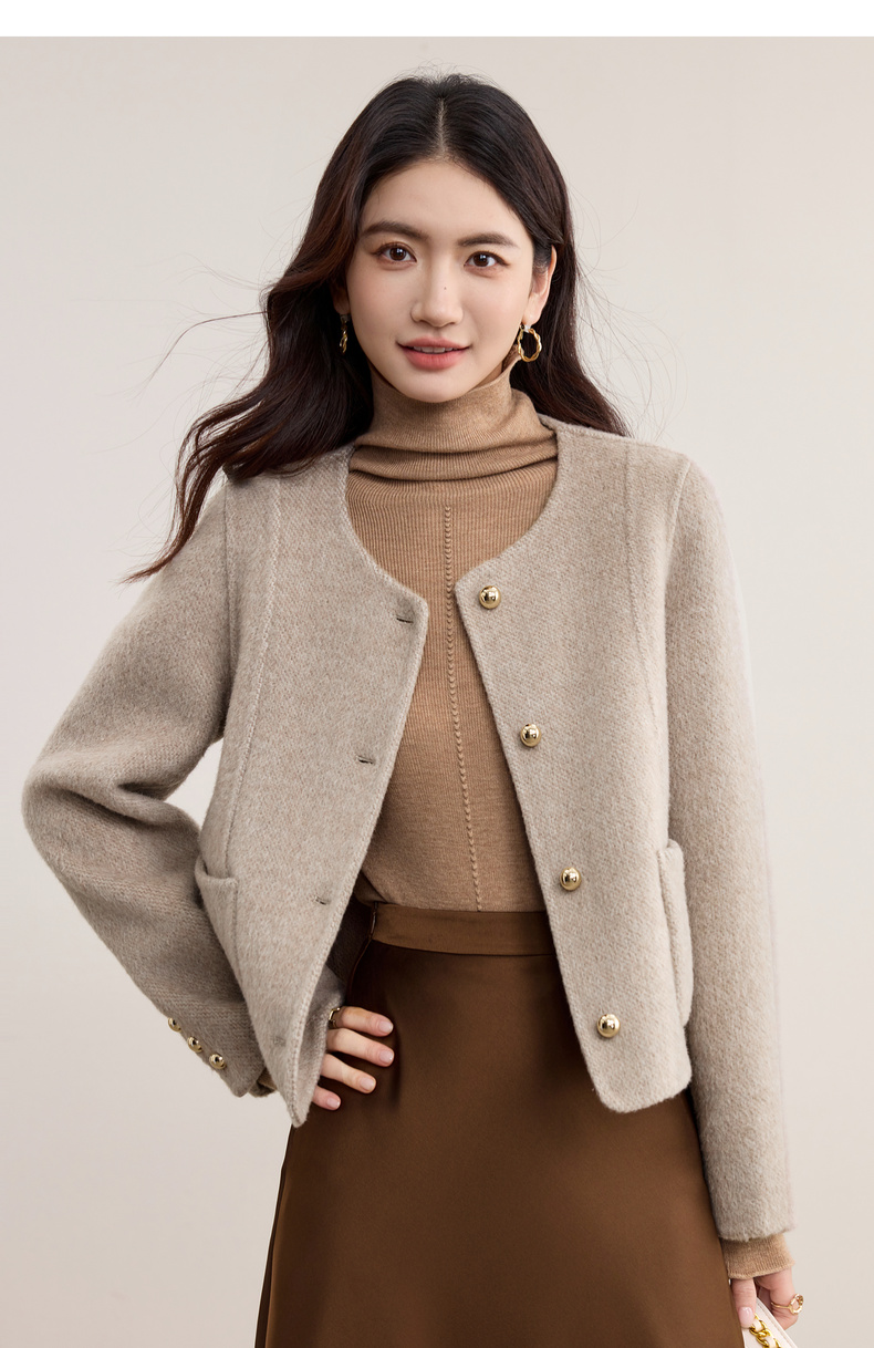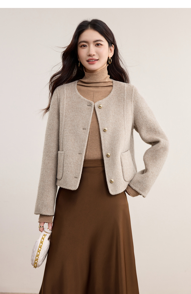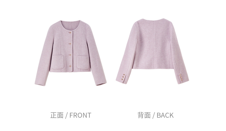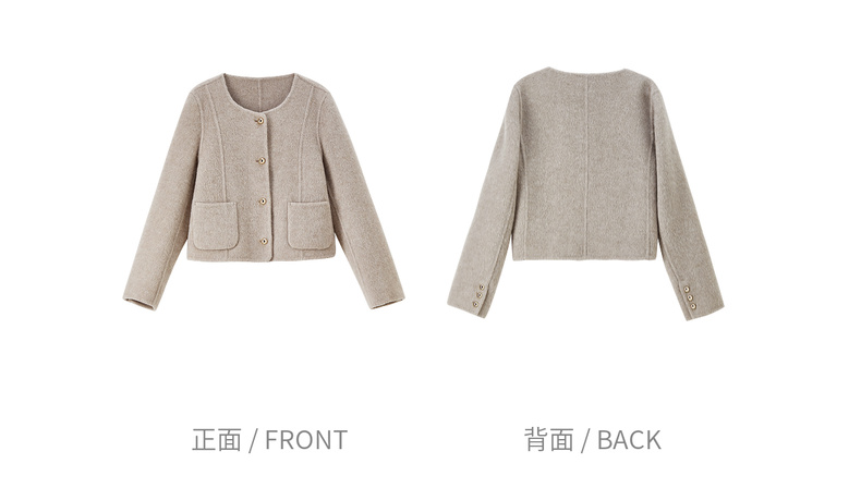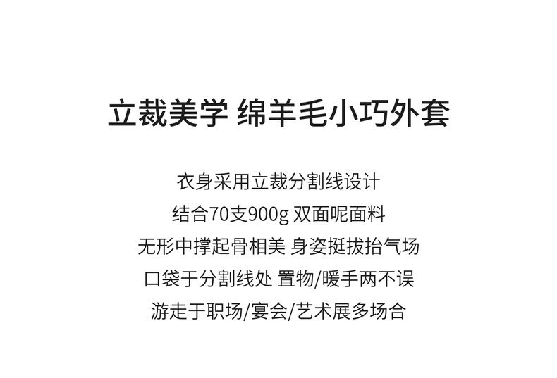 【内购】【绵羊毛】通勤圆领撞色扣圆领立裁分割宽松保暖小巧双面呢外套-W54OG2739