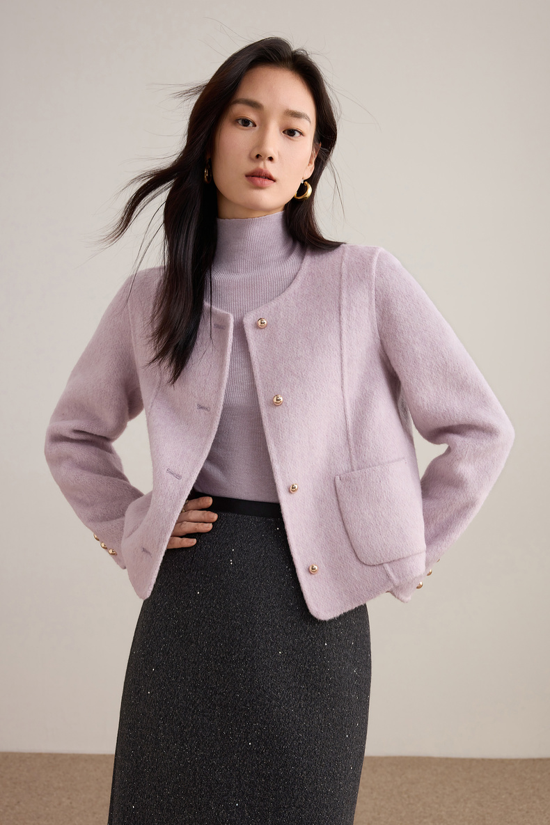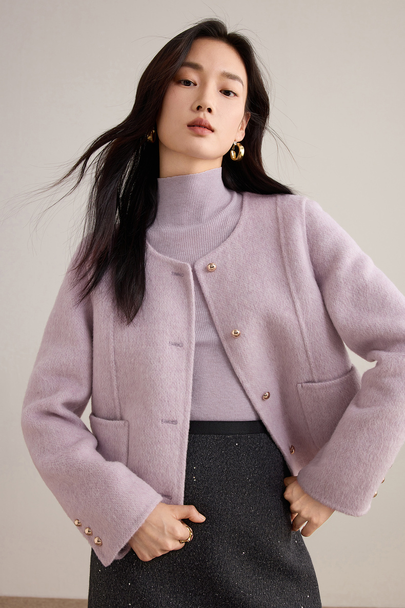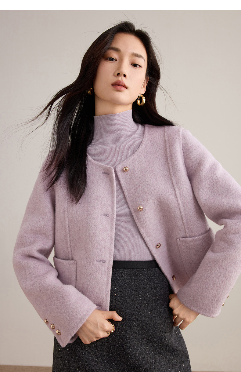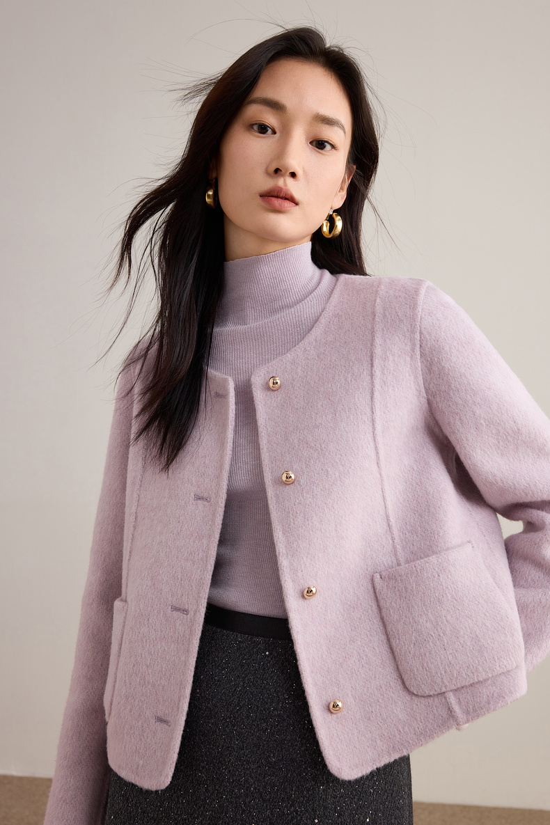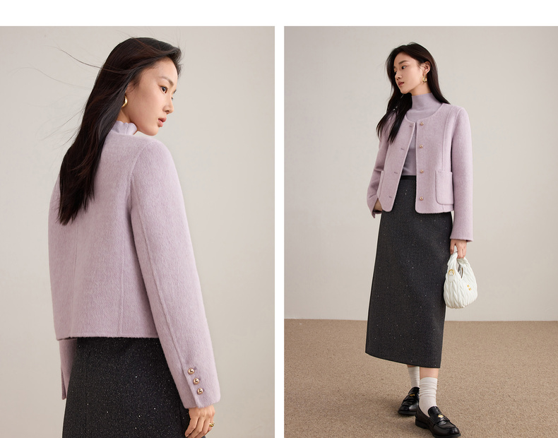 【内购】【绵羊毛】通勤圆领撞色扣圆领立裁分割宽松保暖小巧双面呢外套-W54OG2739