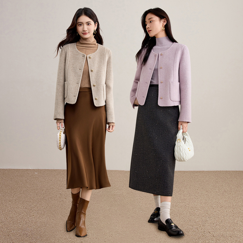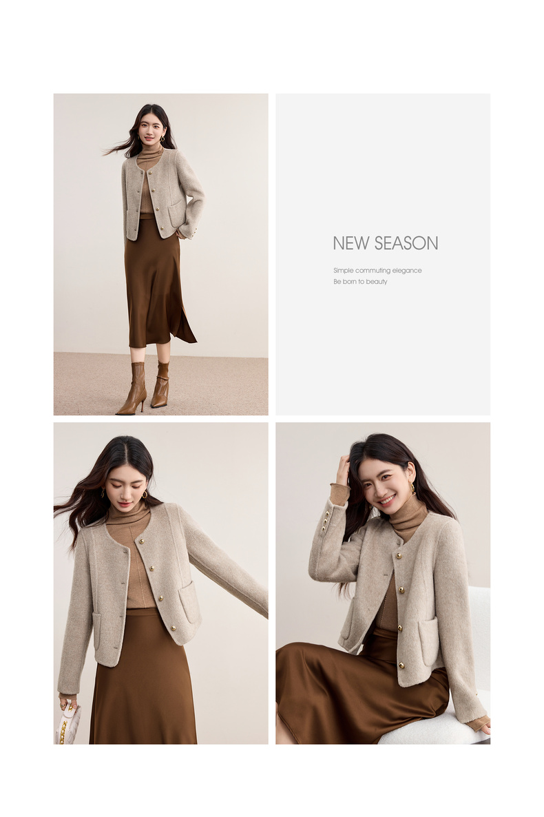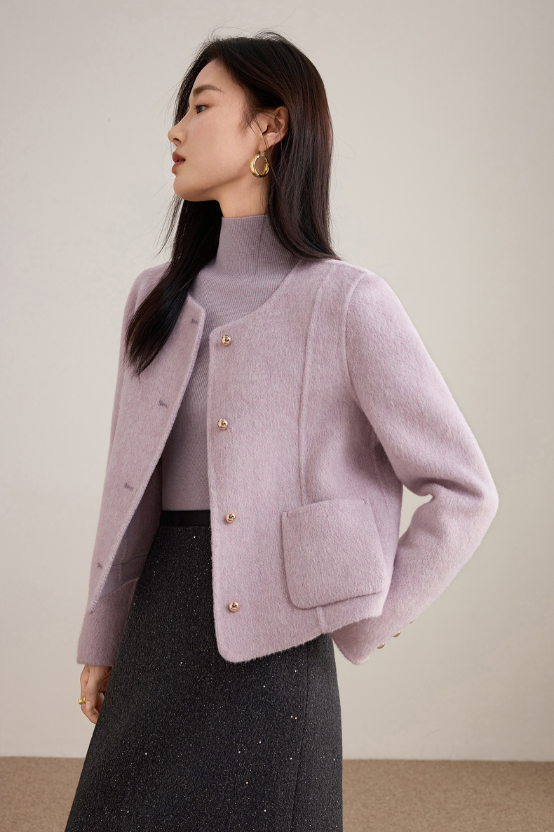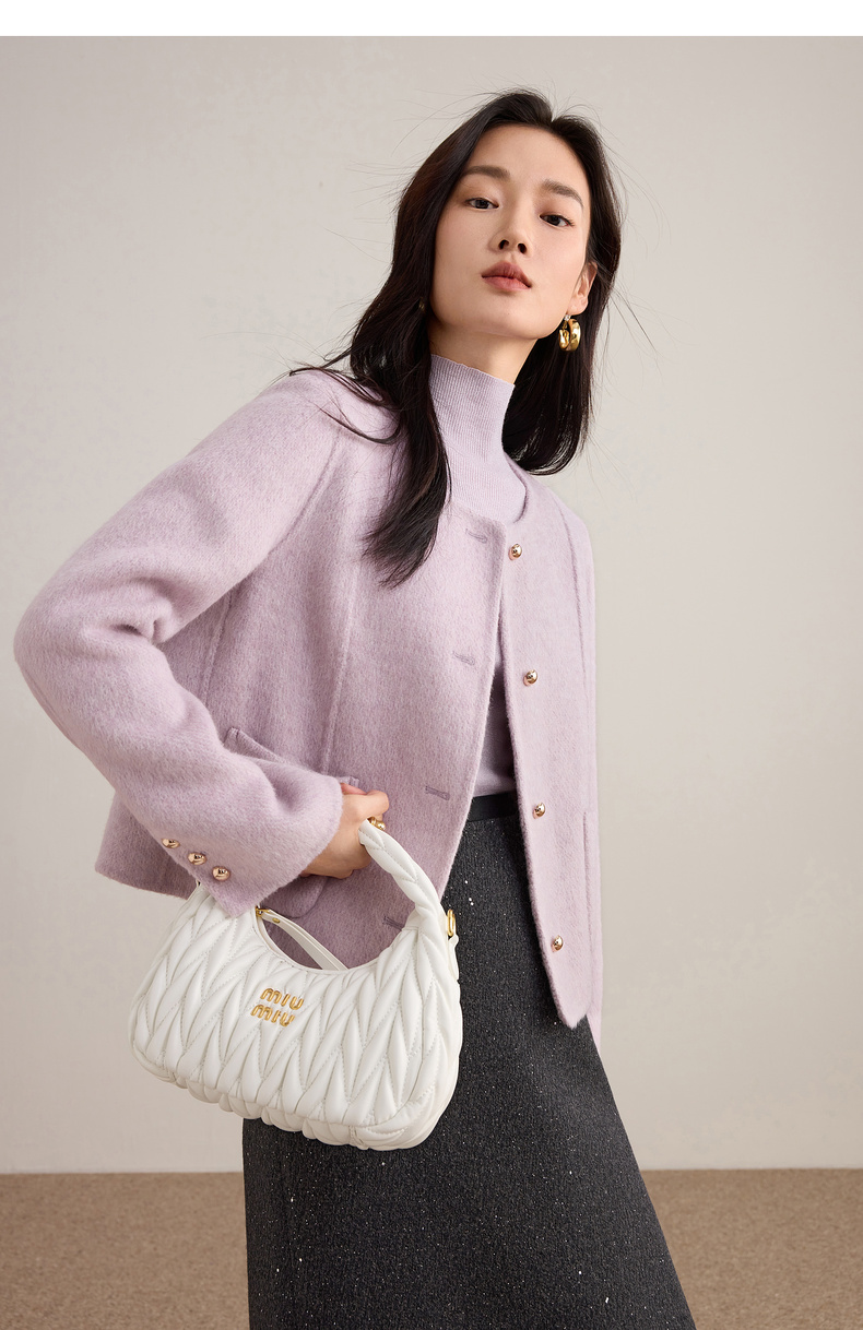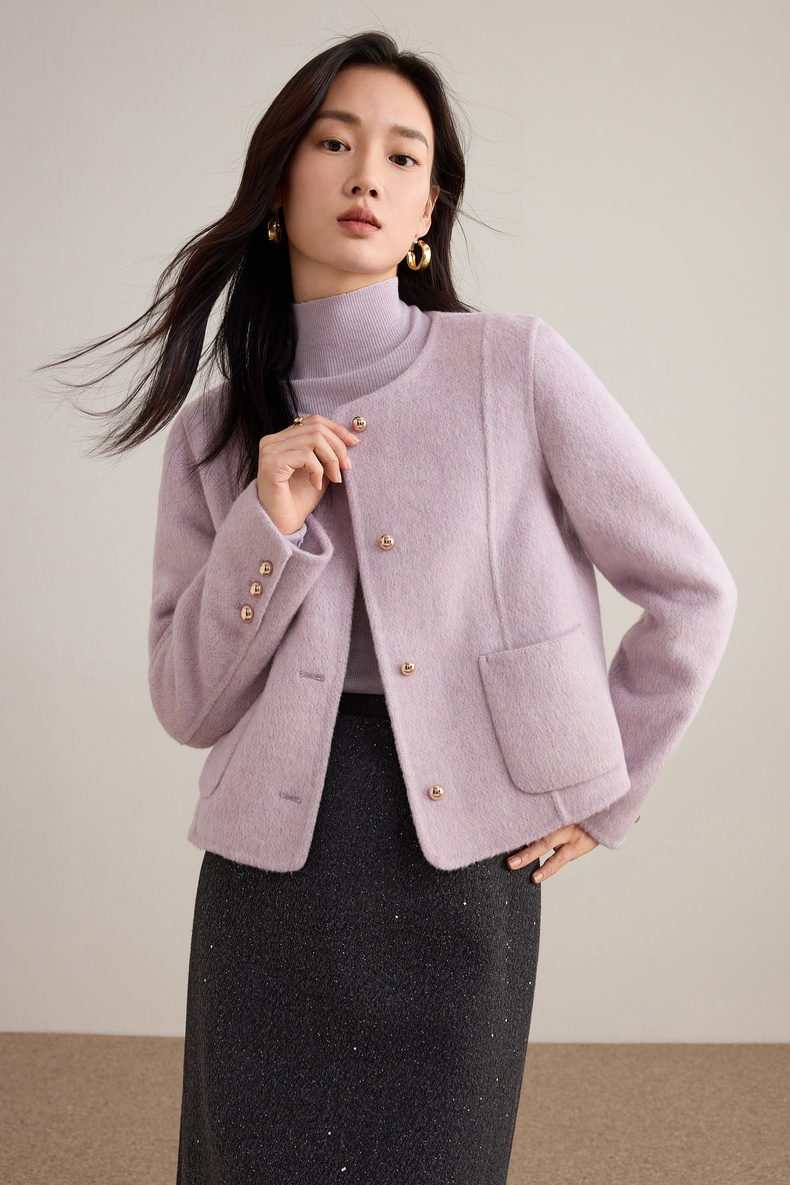 【内购】【绵羊毛】通勤圆领撞色扣圆领立裁分割宽松保暖小巧双面呢外套-W54OG2739