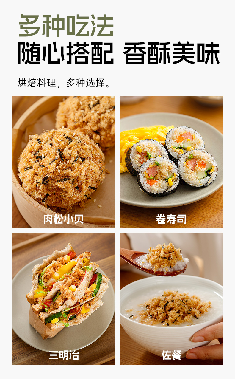 海苔肉松即食早餐配粥拌饭肉酥小贝面包蛋糕烘焙卷寿司猪肉松零食