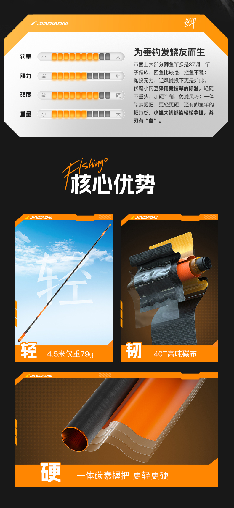 (超细版本)佳钓尼伏魔小冈豆超轻细鲫鱼竿手杆超轻超硬高碳台钓手竿