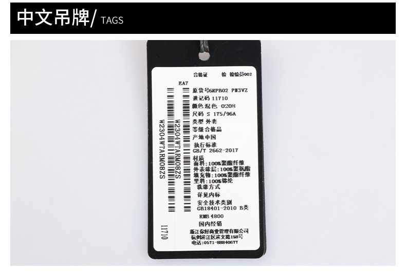 【超惠秒】Armani EA7 男士户外运动防风雨抗寒保暖外套 11710