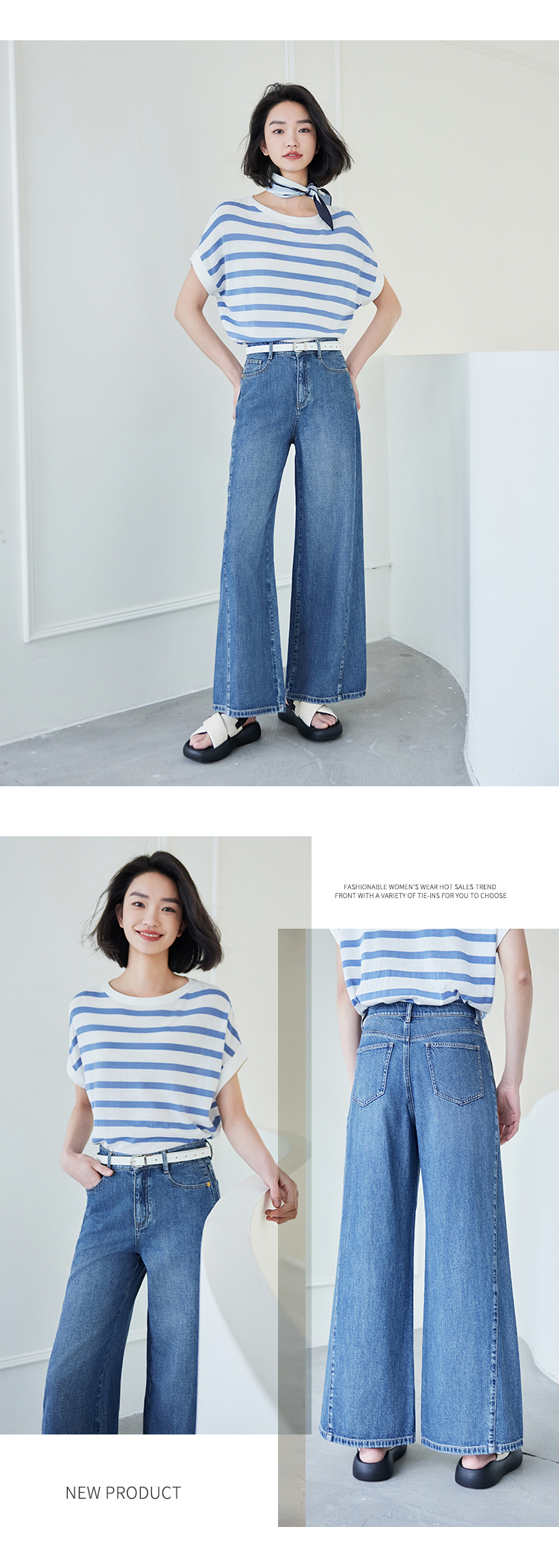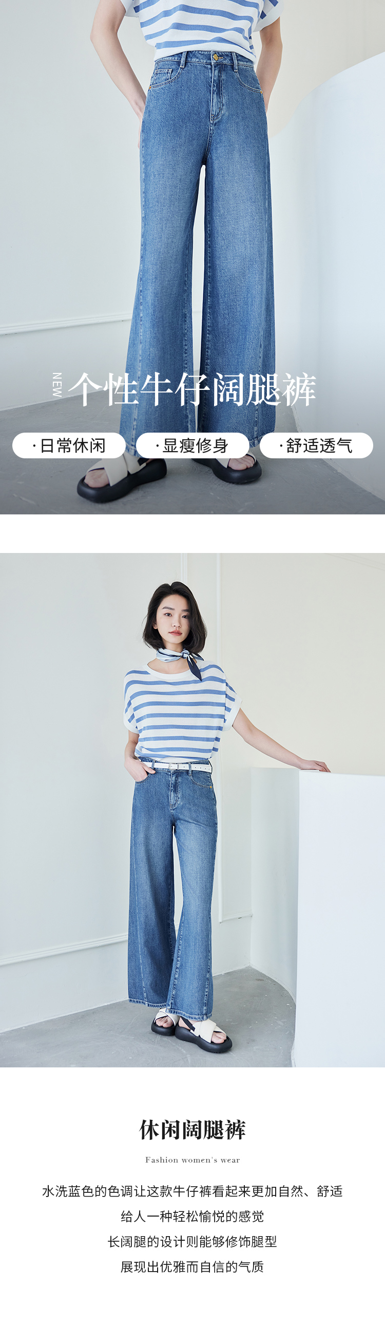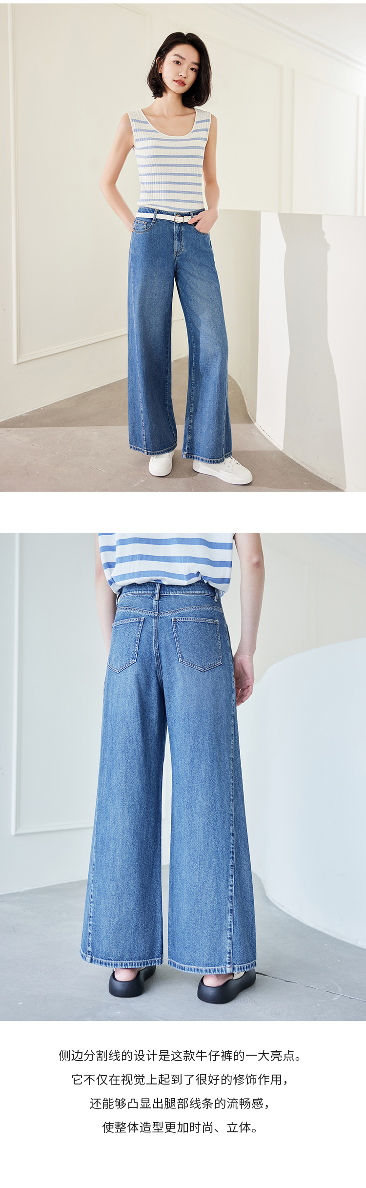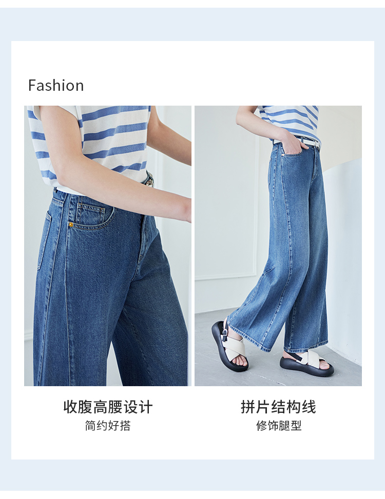 【商场同款】CNT4497 “ 开运牛仔裤 ” 拼接结构线阔腿牛仔裤 时髦减龄显瘦洒脱 莱赛尔+棉麻材质软垂中有着清爽感, 更适合夏季穿着