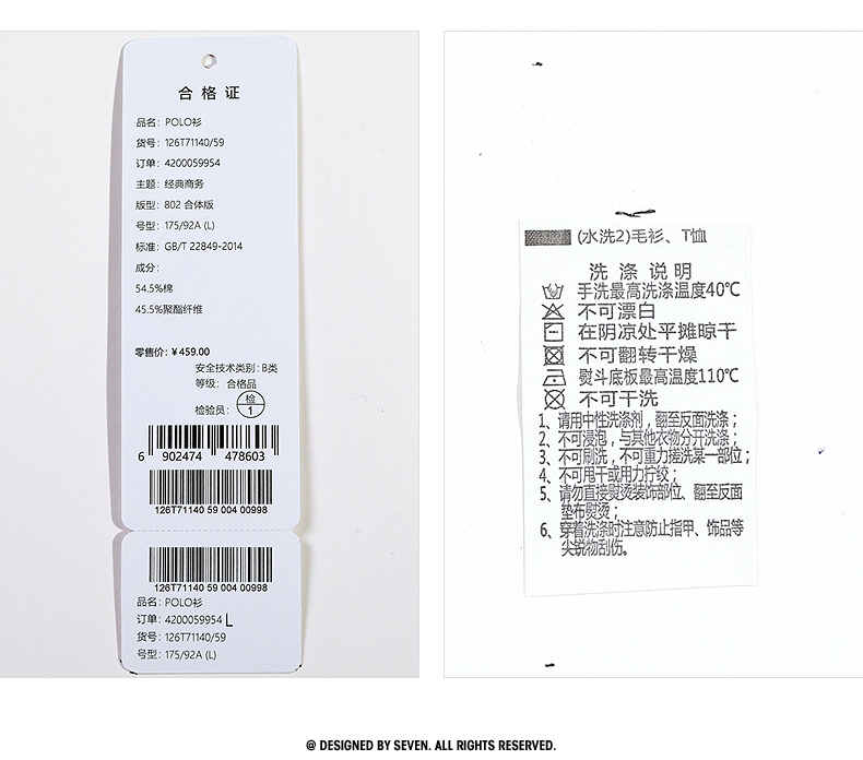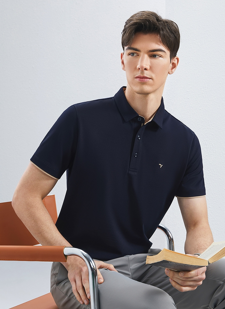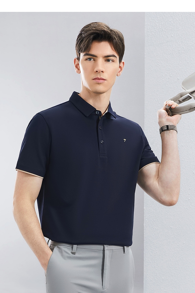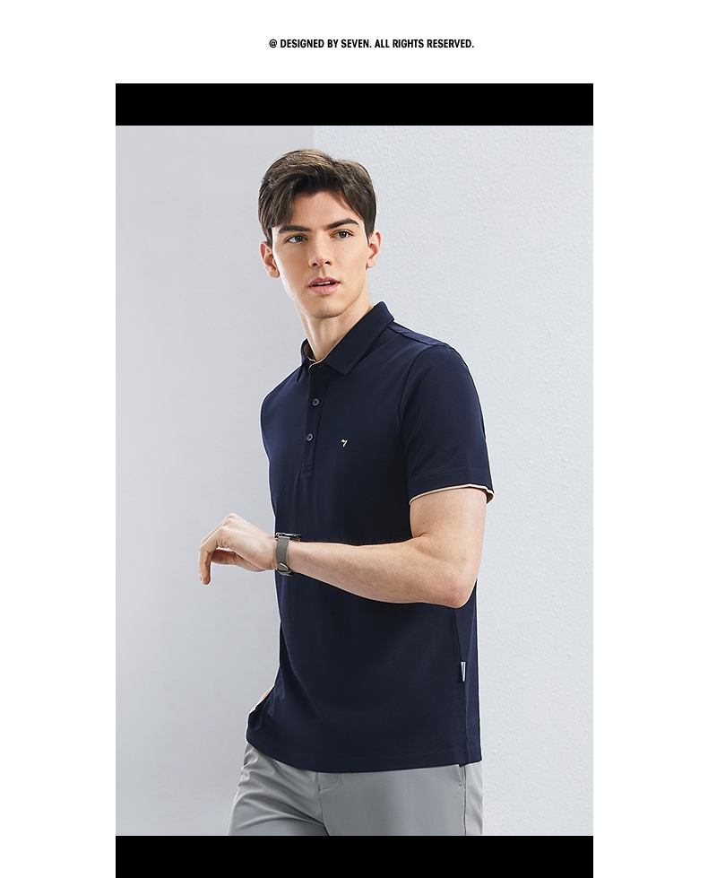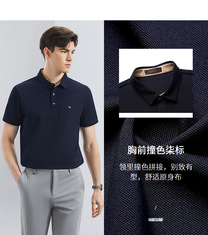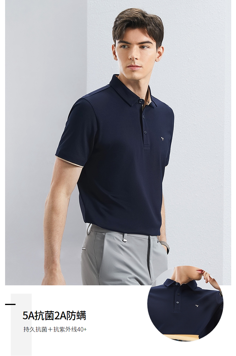 【5A抗菌】柒牌短袖男款polo衫夏季新款商务休闲撞色绣花翻领T恤126T71140