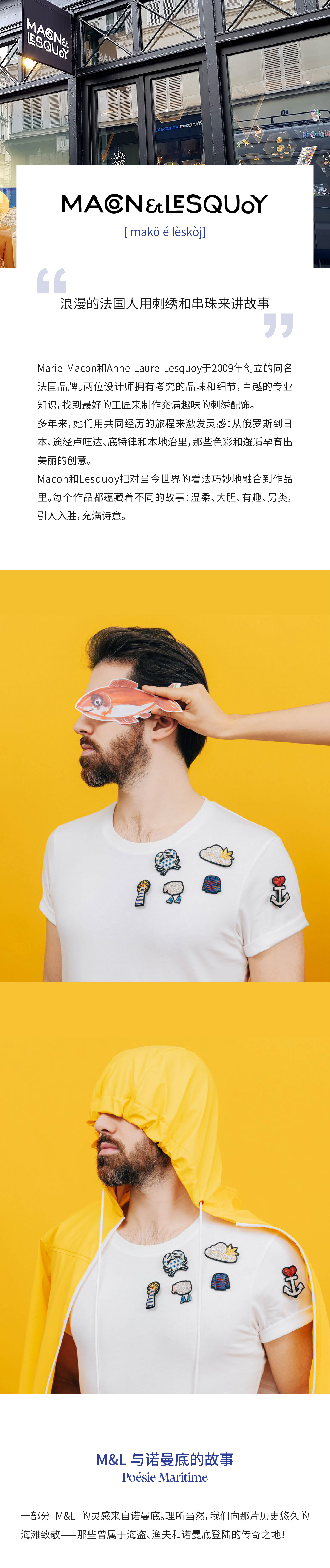 Macon&Lesquoy 原创设计 扇贝珍珠 海洋系列 M&L刺绣手工饰品胸针