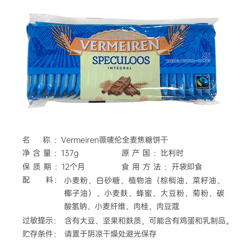 比利时薇唛伦全麦焦糖饼干137g/057388 酥脆可口麦香馥郁配咖啡配红茶