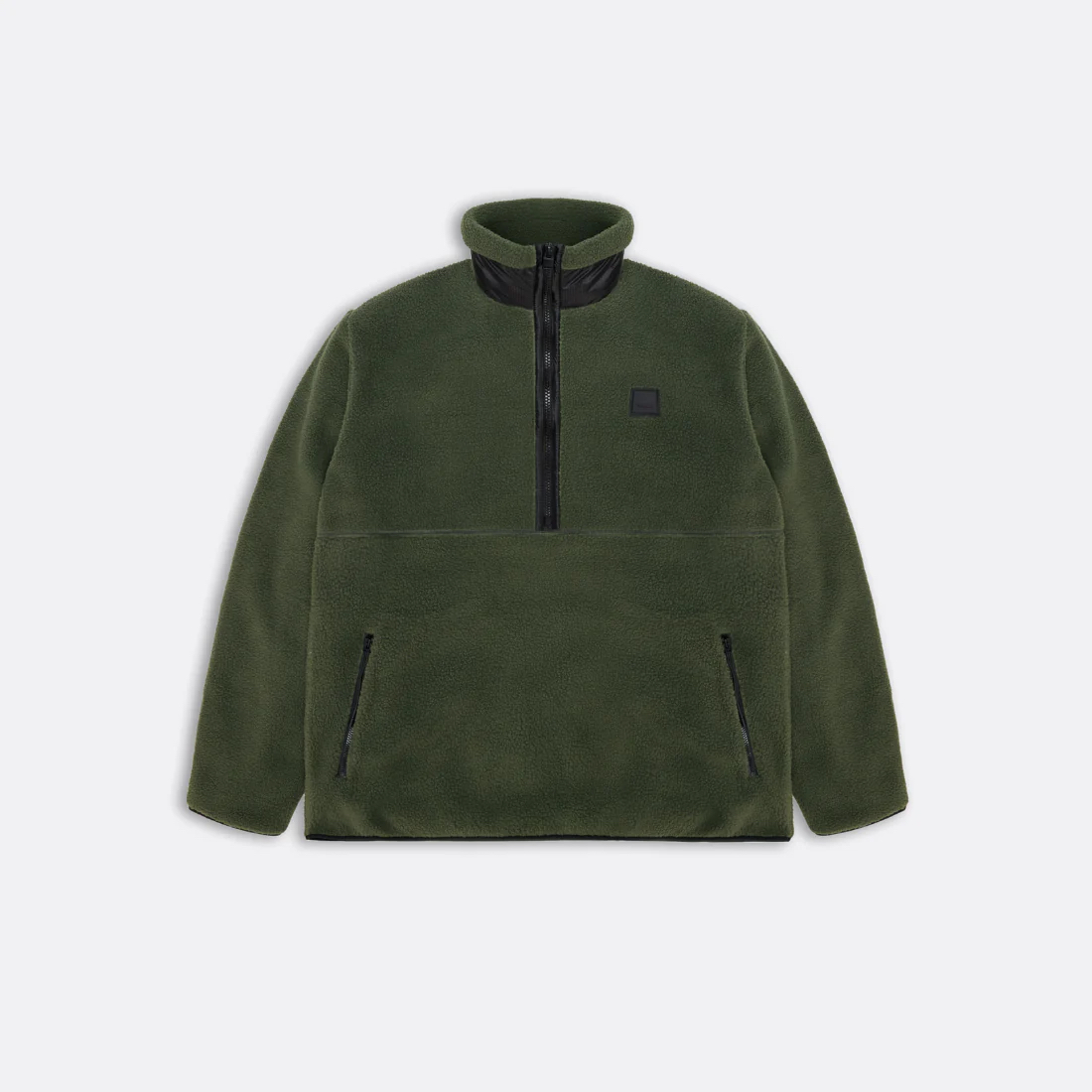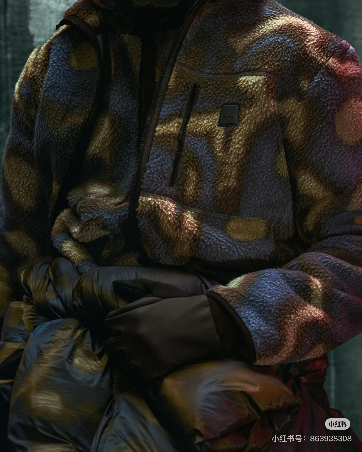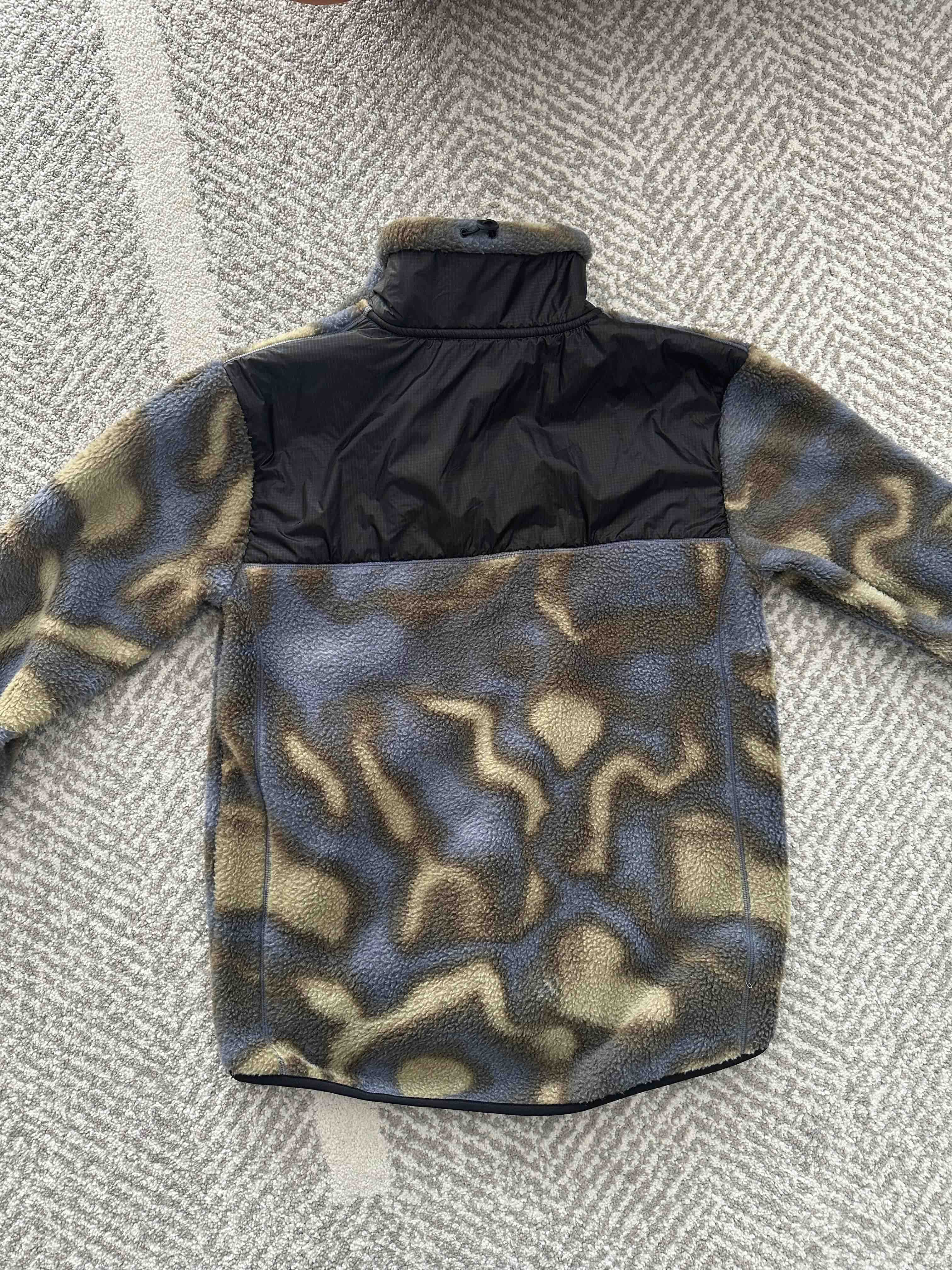 厚抓绒外套。双层面料,内里平绒,外面粗摇粒绒。柔软厚实且保暖。各种细节,拼接包边,领子可收紧。