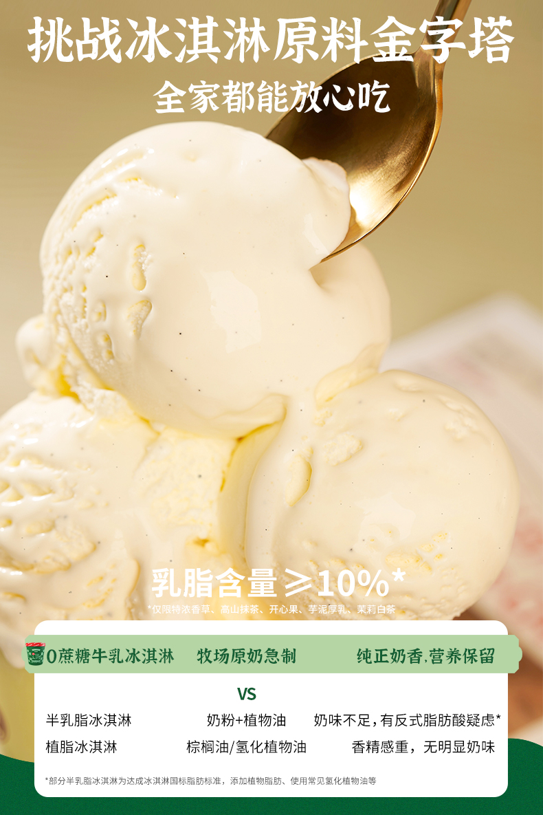 【0蔗糖牛乳冰淇淋 牧场直供生牛乳】轻遇0蔗糖牛乳冰淇淋460ml 单一牧场直供原乳制作 不加一滴水