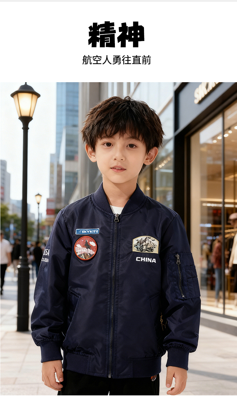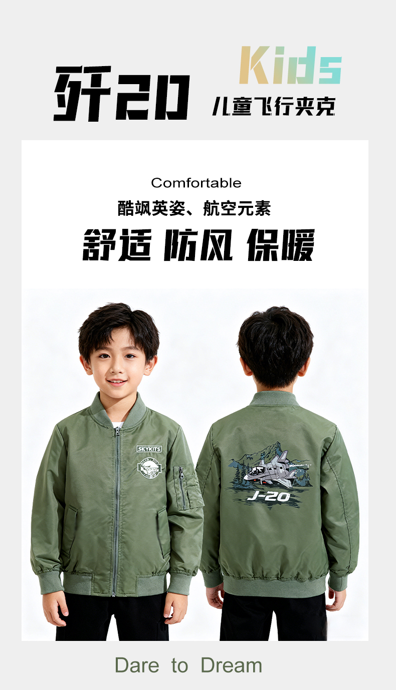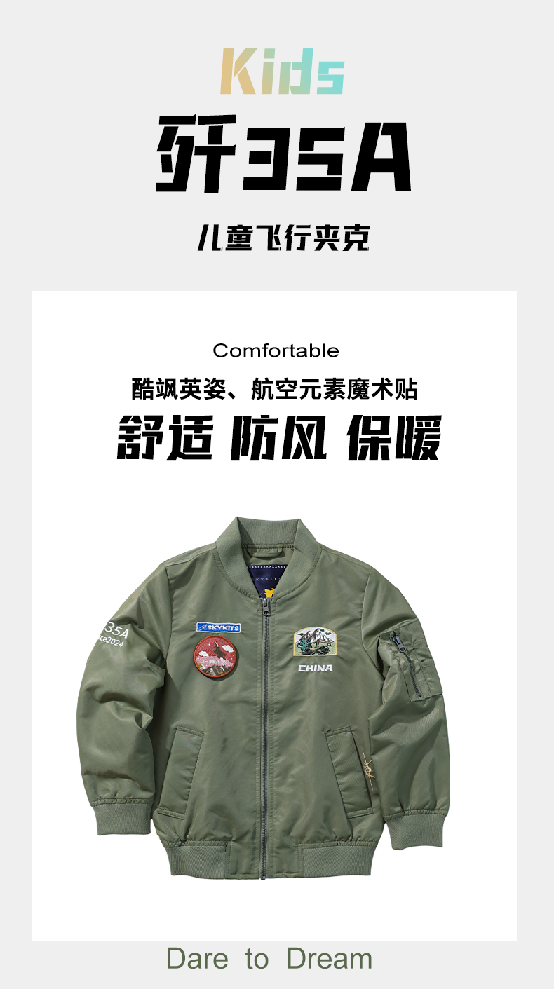 【中航文化授权】歼20/歼35A儿童飞行夹克 精美飞机刺绣 酷飒英姿圆满飞行员梦 做工精细/舒适/防风/保暖