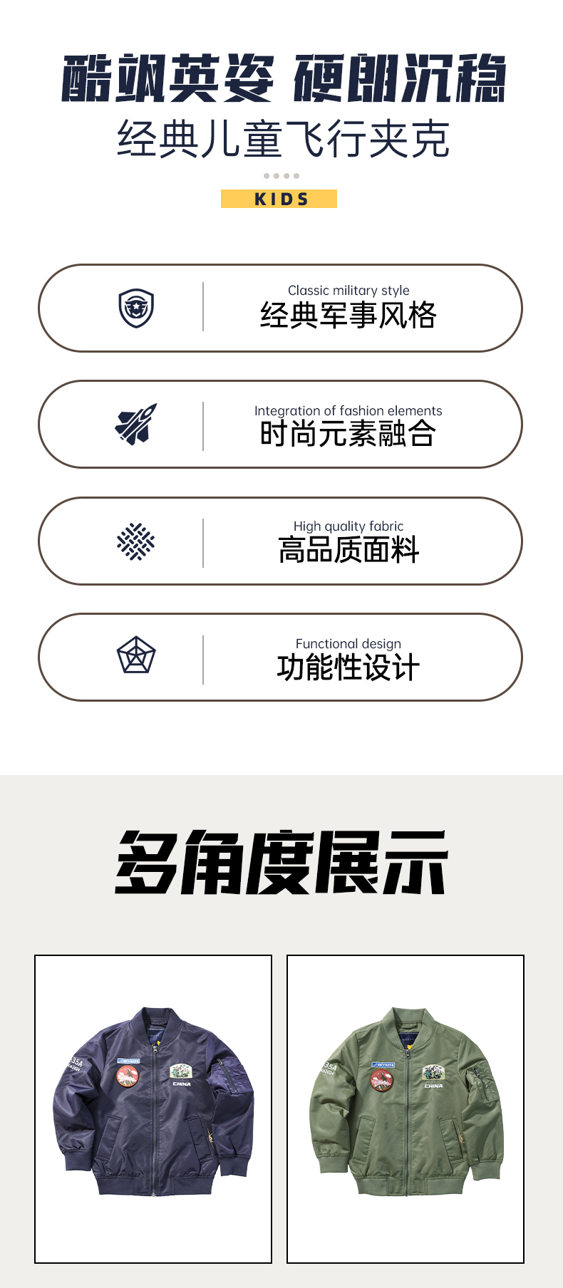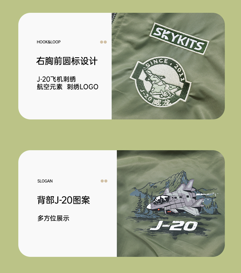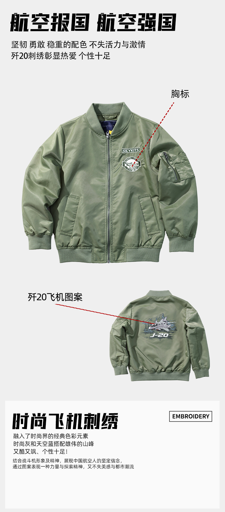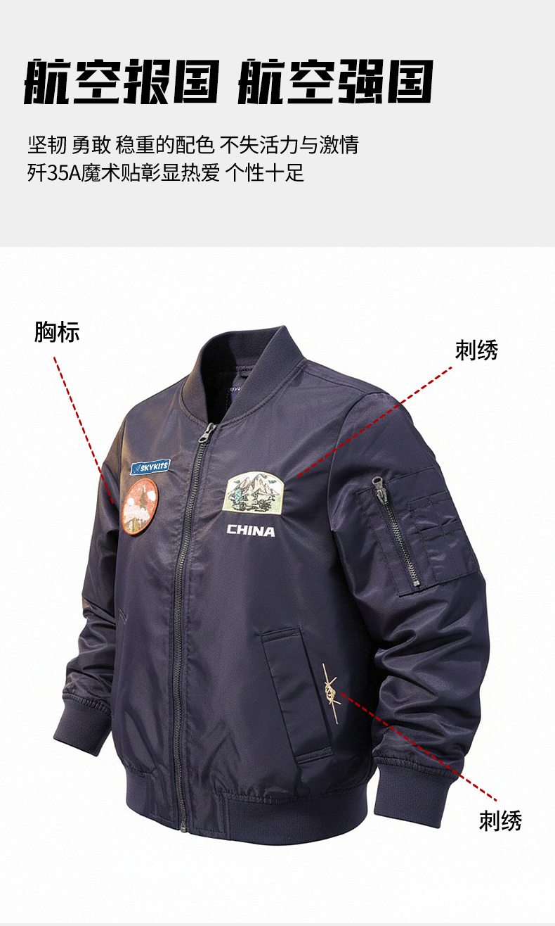【中航文化授权】歼20/歼35A儿童飞行夹克 精美飞机刺绣 酷飒英姿圆满飞行员梦 做工精细/舒适/防风/保暖