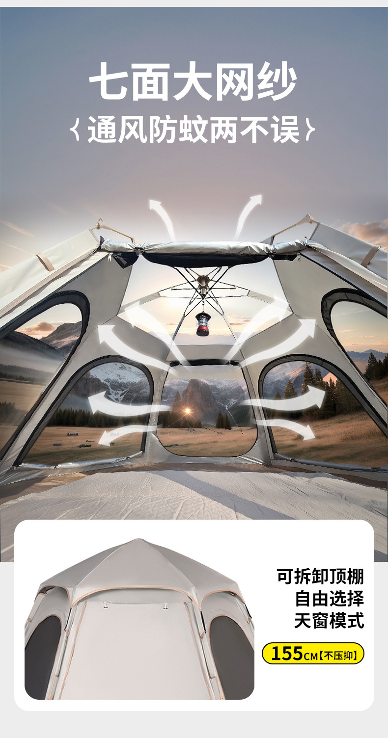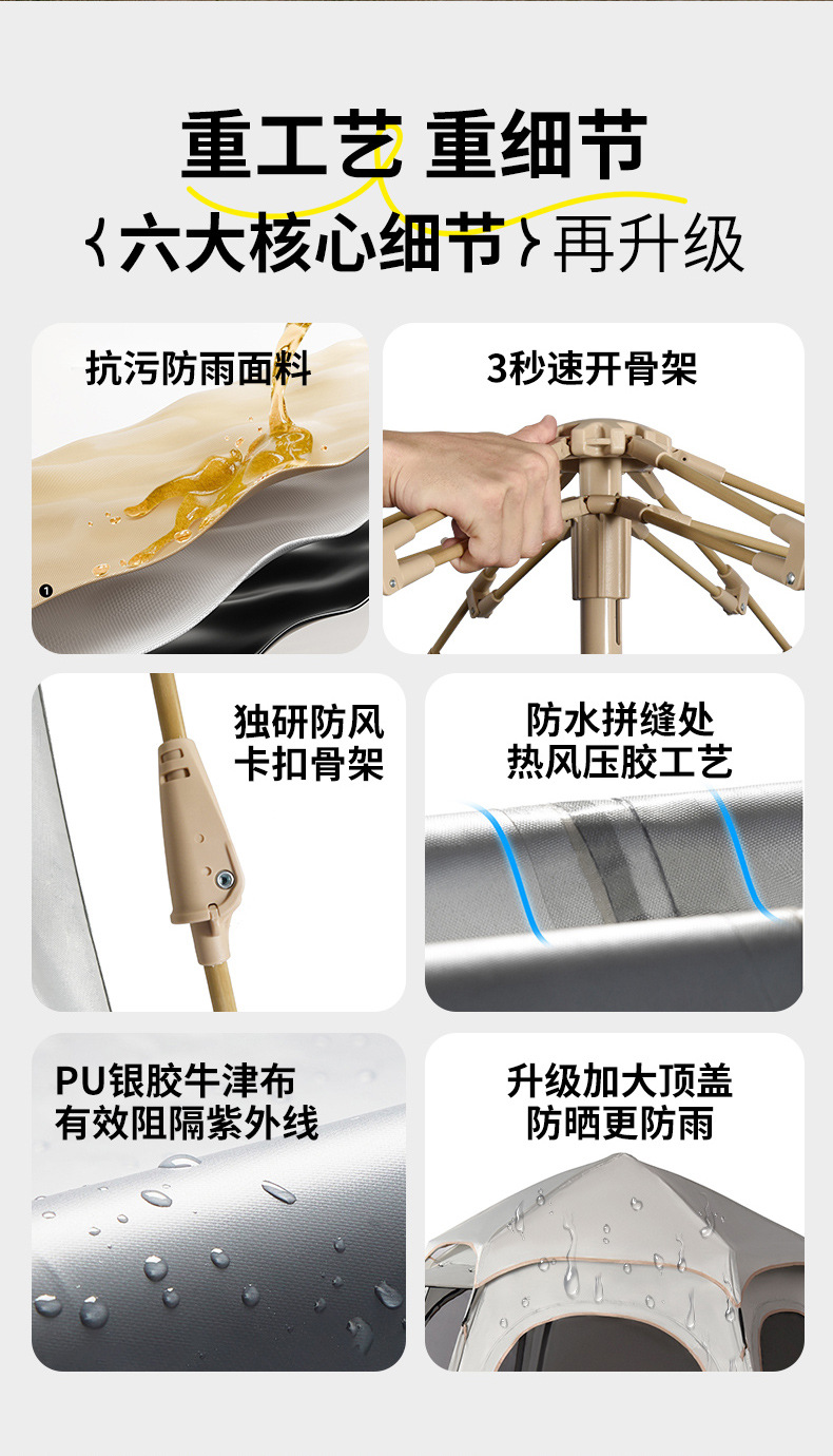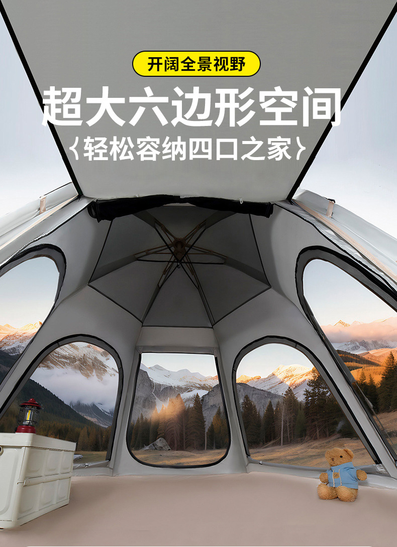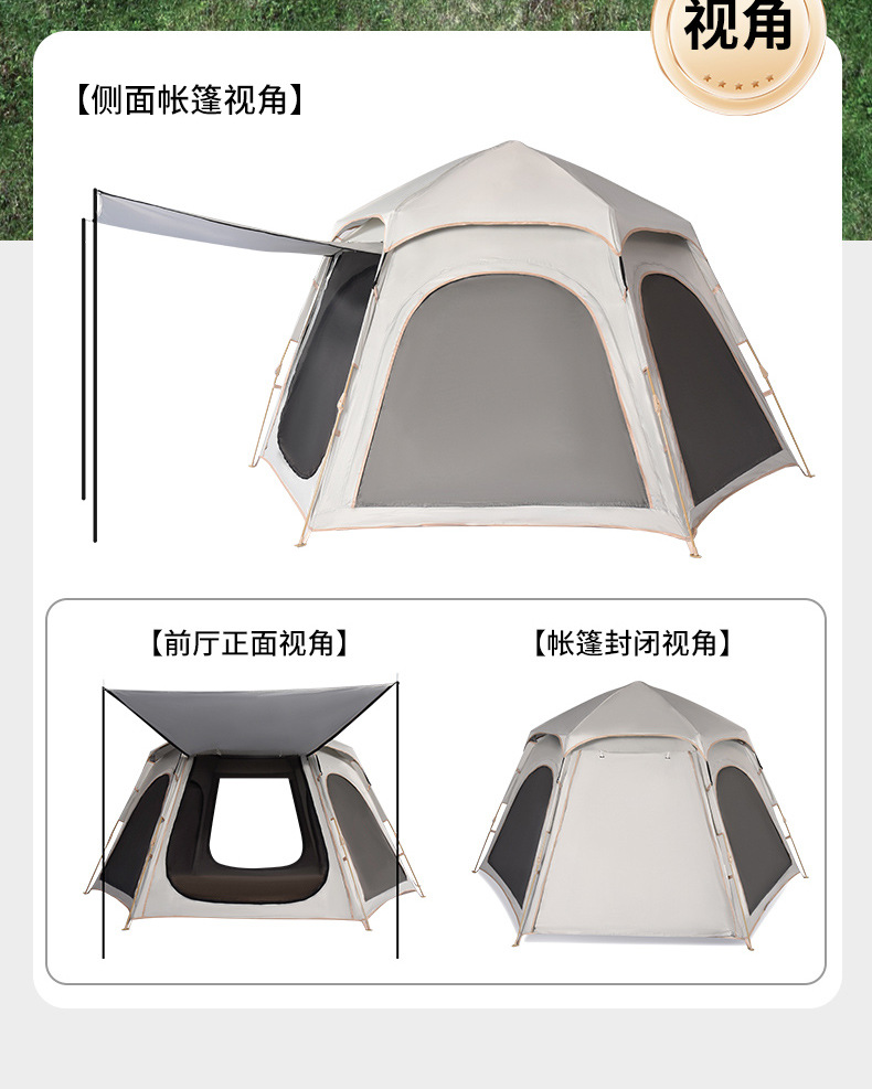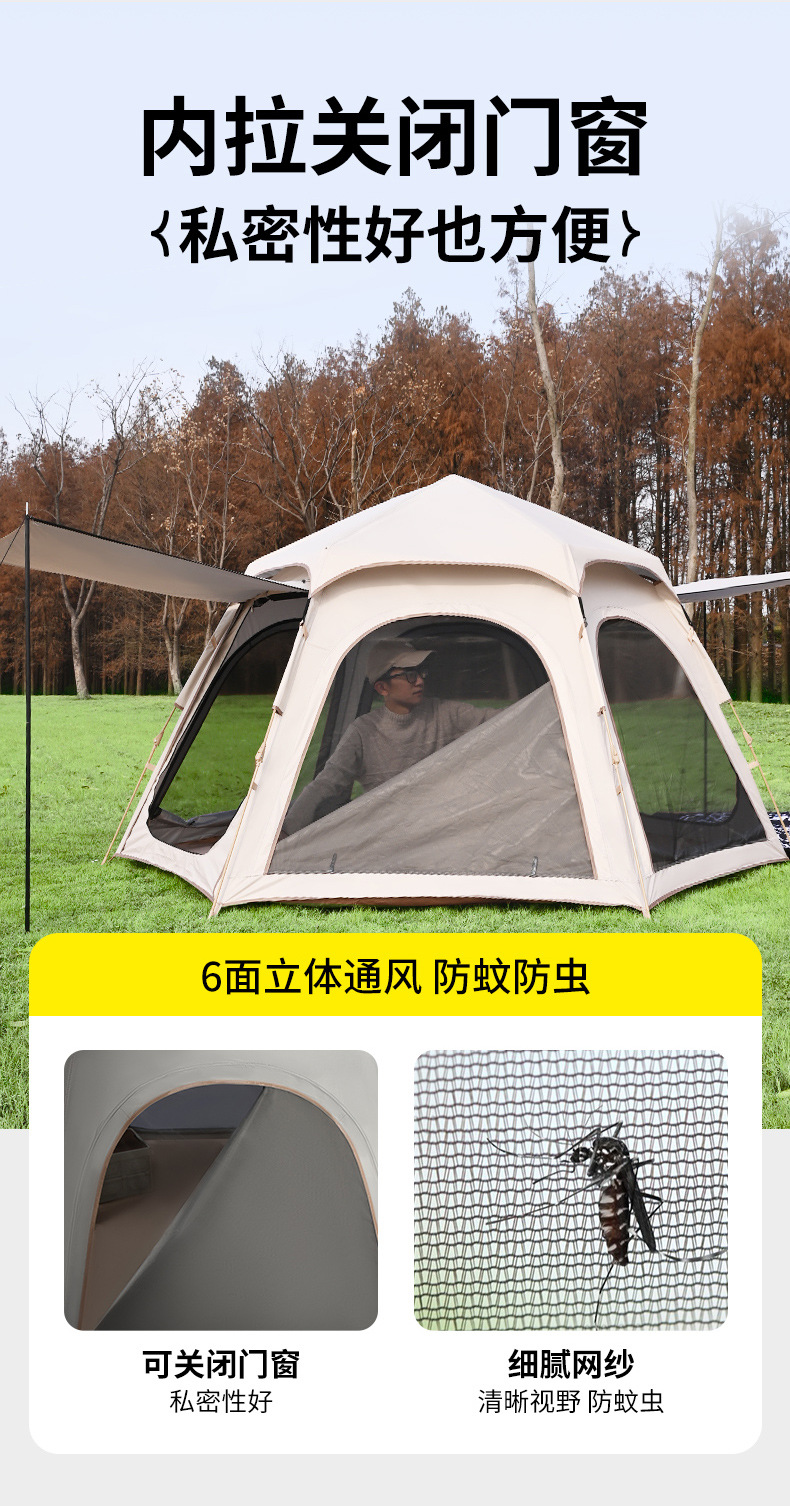 【超大六边形空间❗️自动速开骨架】户外野营全自动帐篷快速打开折叠防晒超大沙滩野外露营全景六角帐。jd