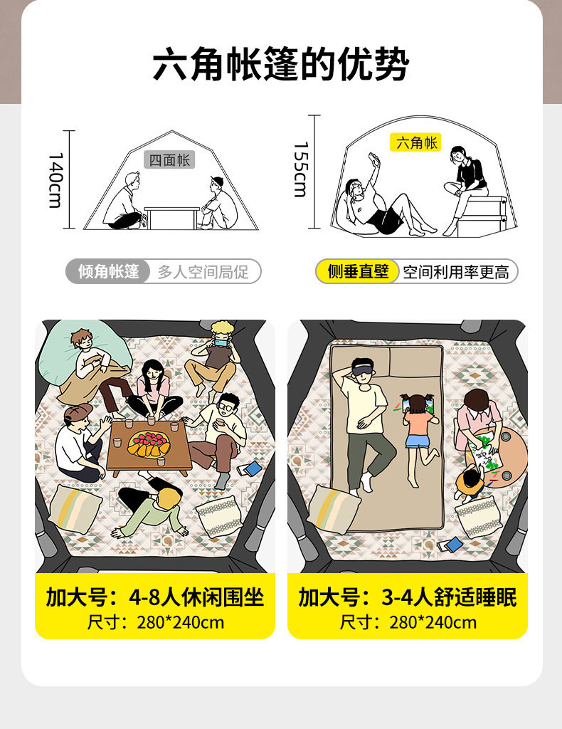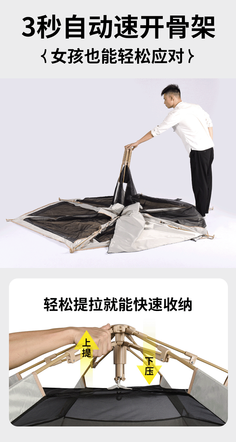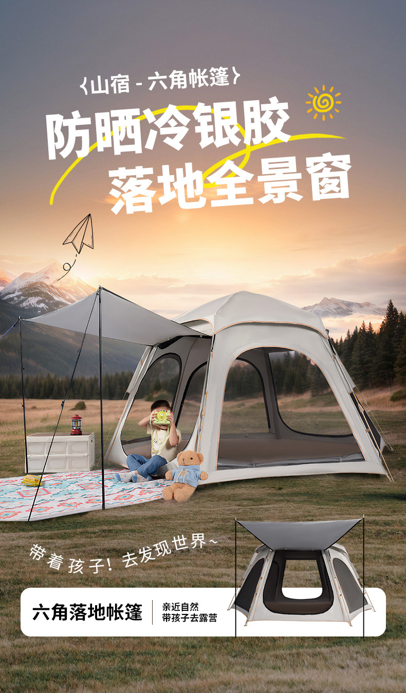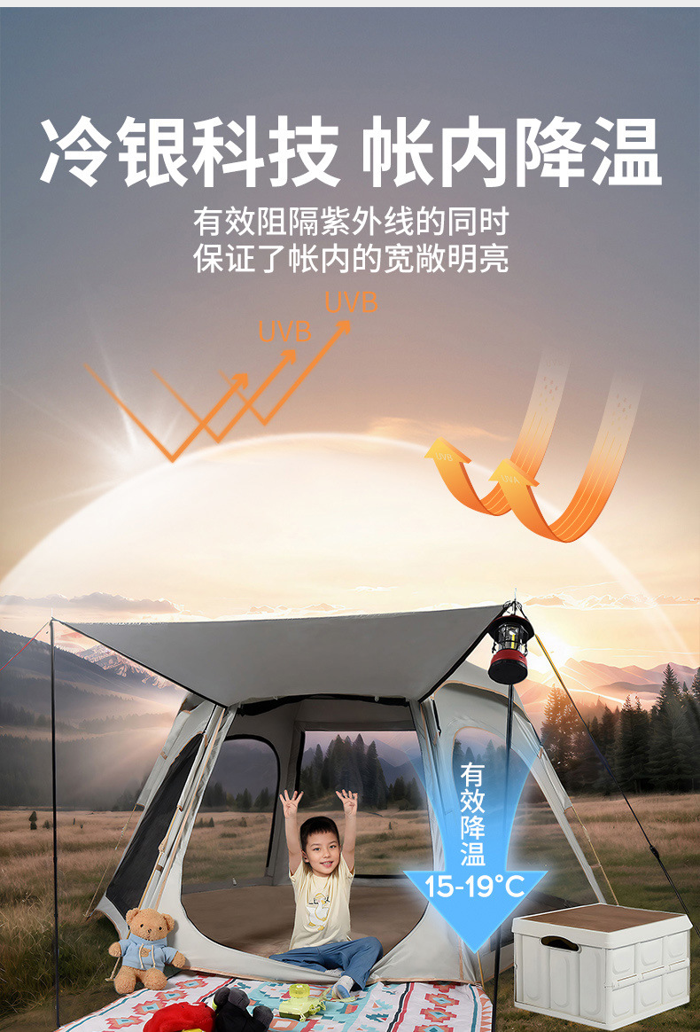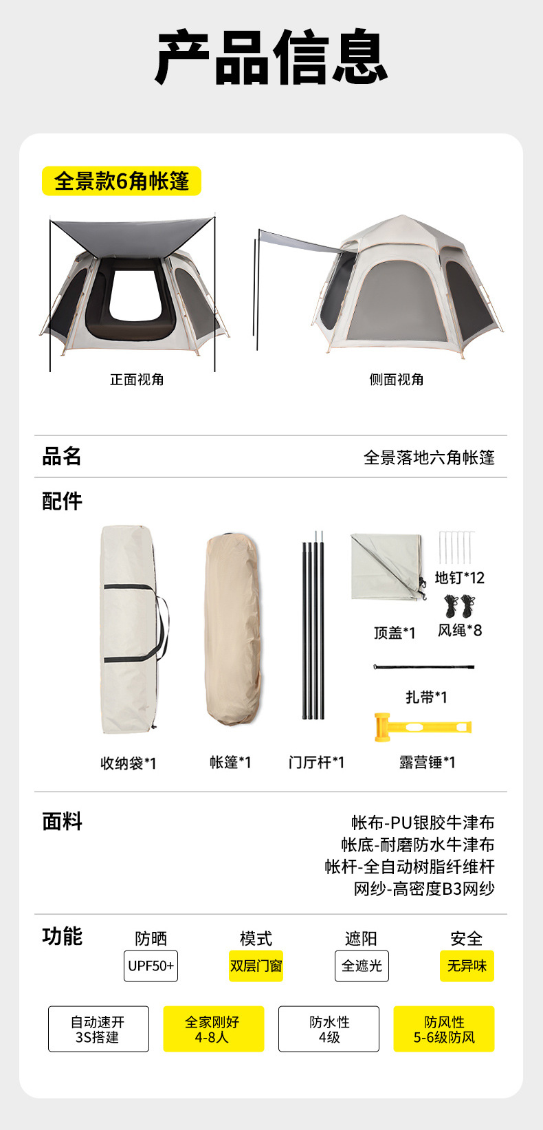 【超大六边形空间❗️自动速开骨架】户外野营全自动帐篷快速打开折叠防晒超大沙滩野外露营全景六角帐。jd