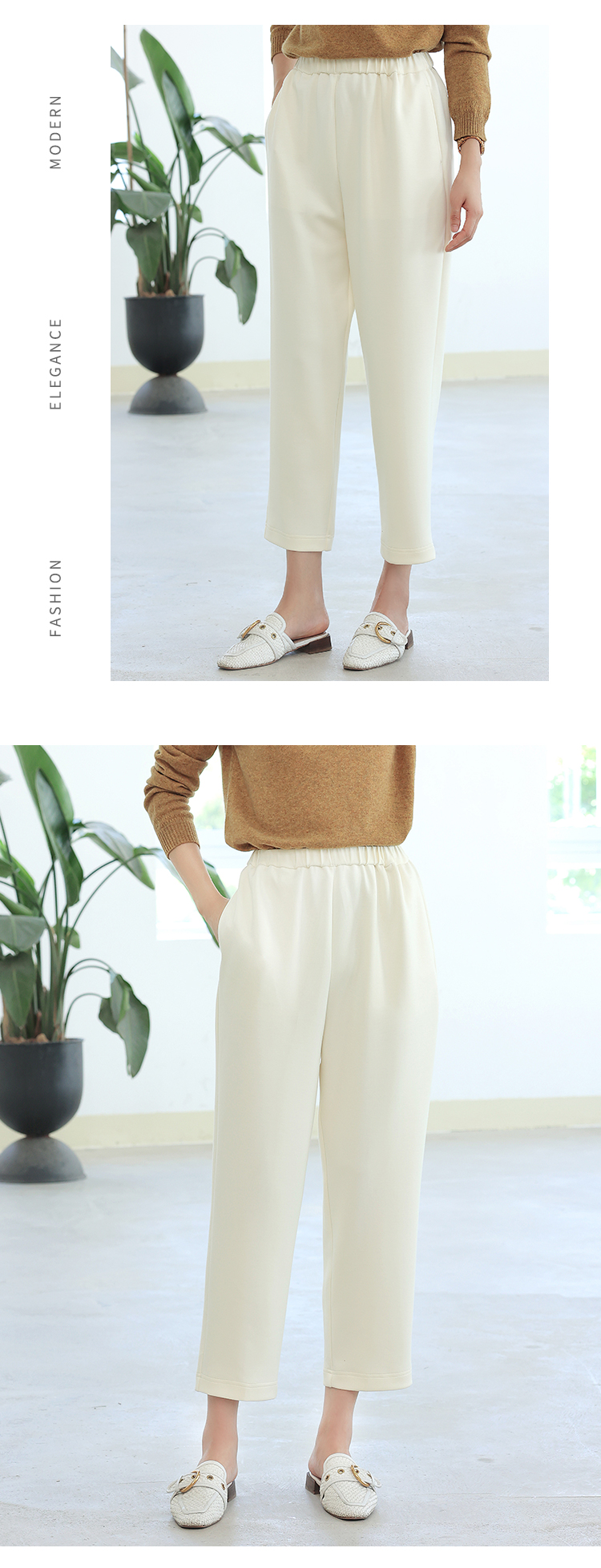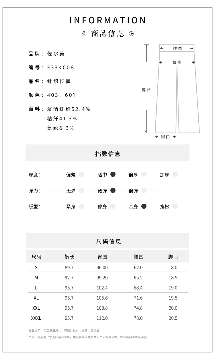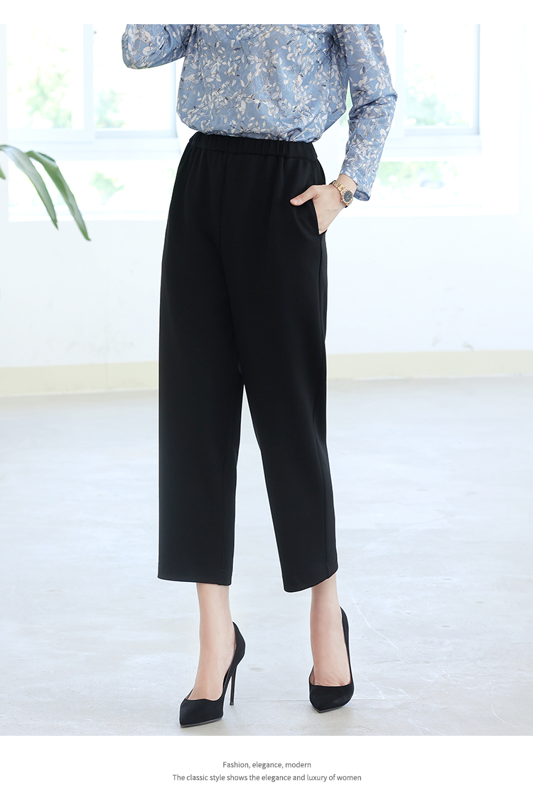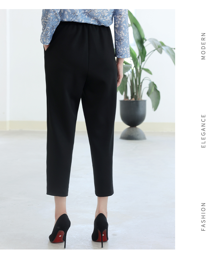 佐尔美秋季新款 百搭气质松紧腰长裤女E33KC08