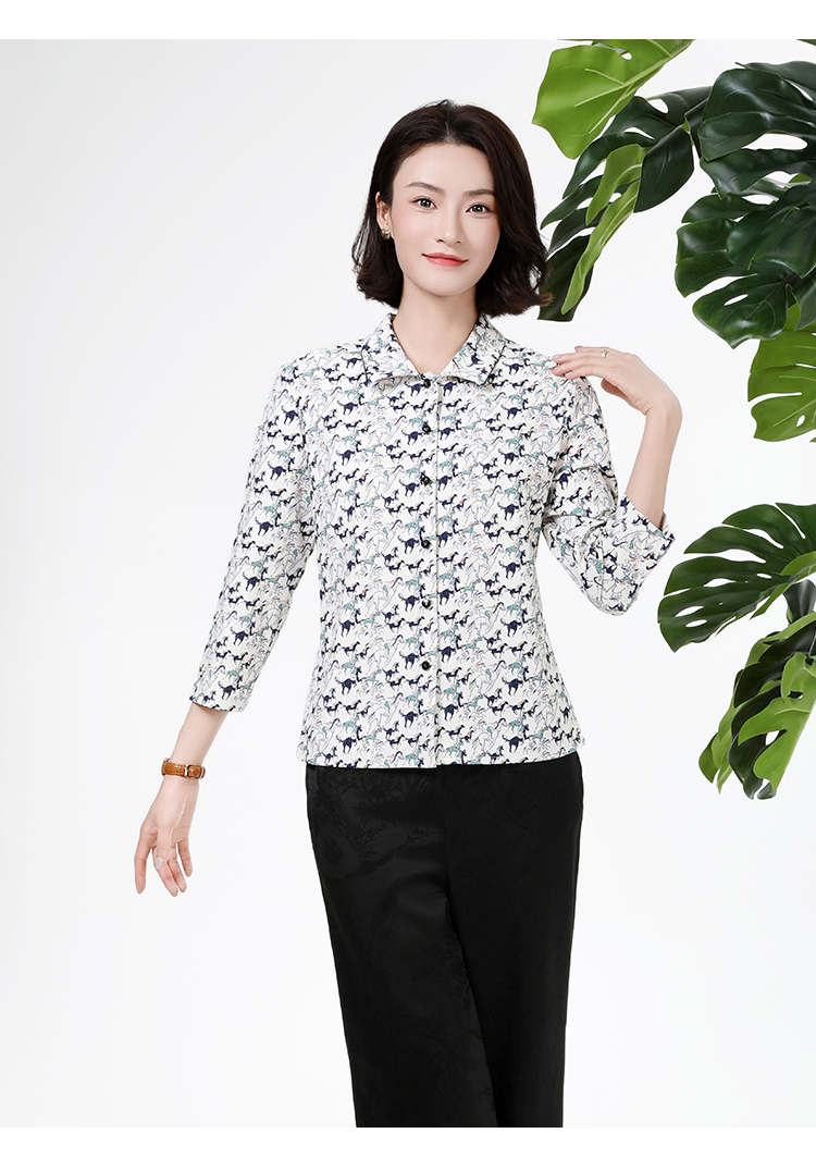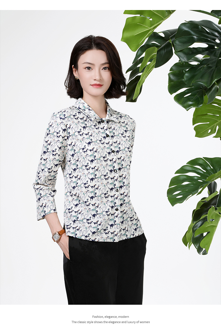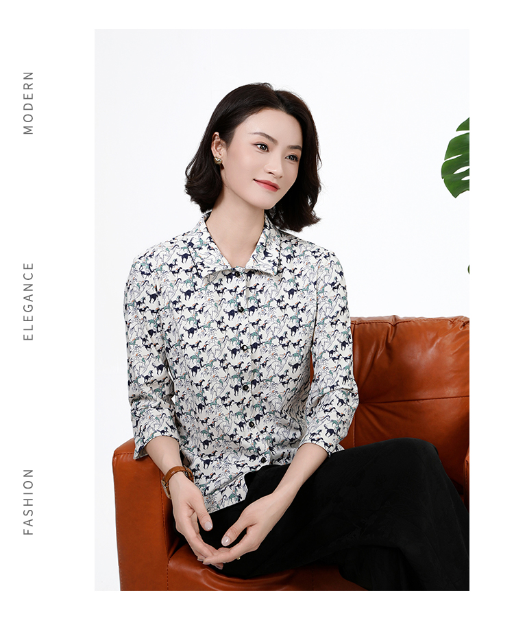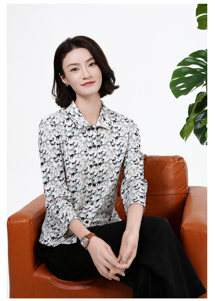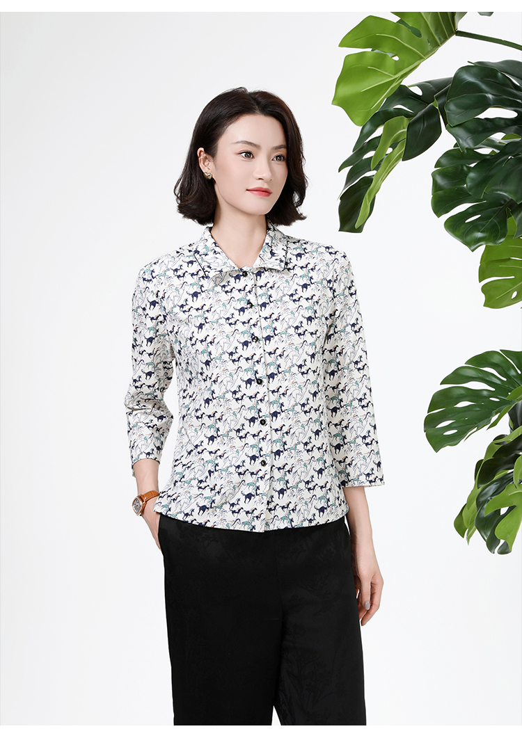 佐尔美秋季上新优雅清新印花减龄设计翻领长袖衬衣女M51CC11