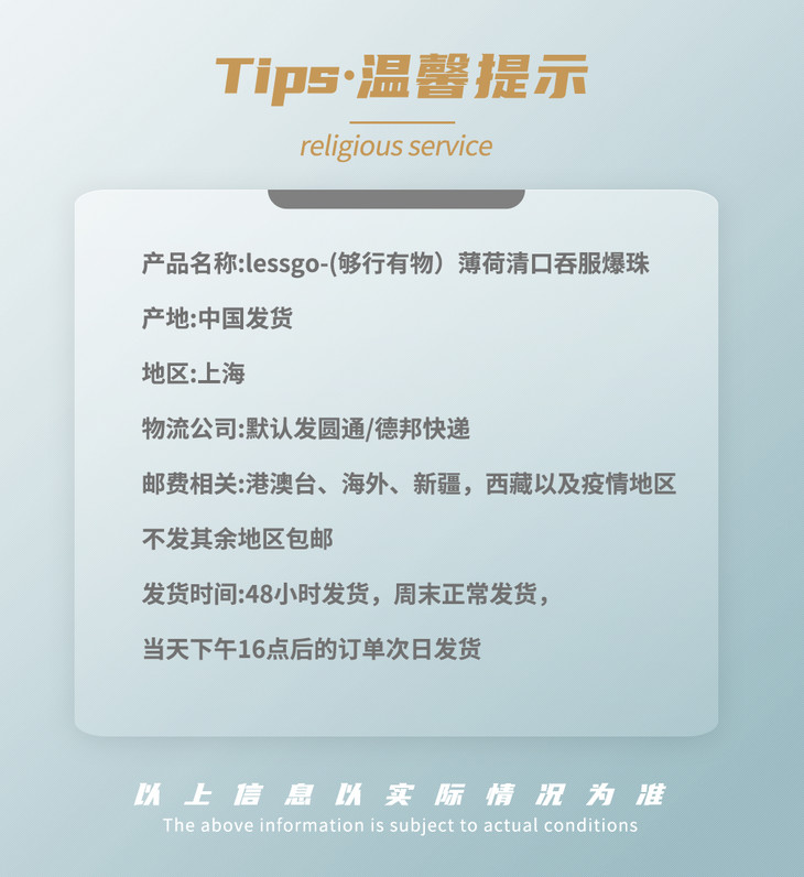 【清新口气,摆脱口气尴尬】lessgo薄荷清口吞服爆珠 三倍薄荷清凉 保持口气清新 小巧方便携带 30粒/盒