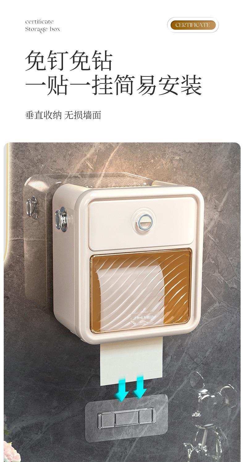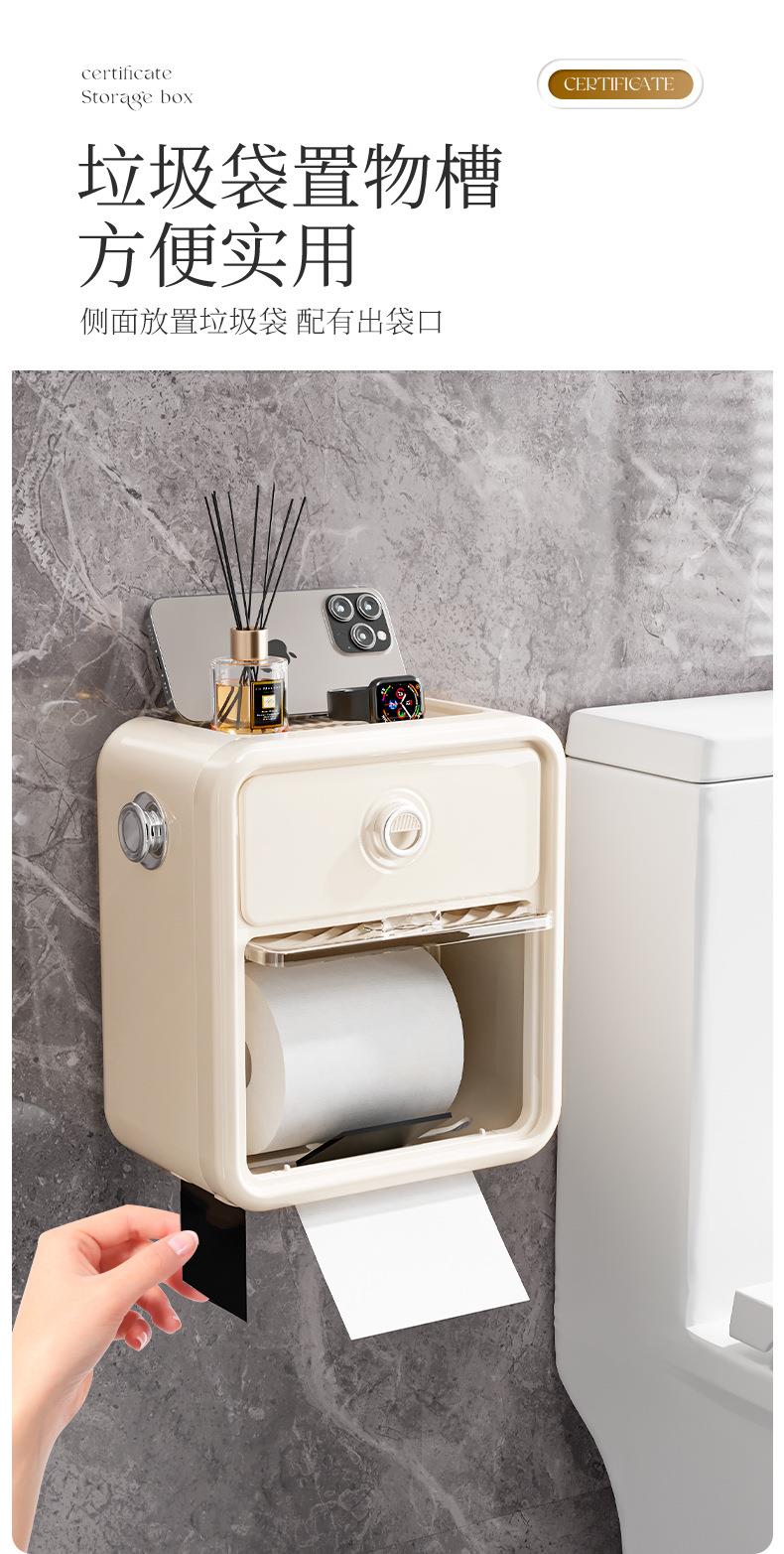 轻奢卫生间纸巾盒高级壁挂式洗脸巾收纳免打孔防水置物架镀银挂钩