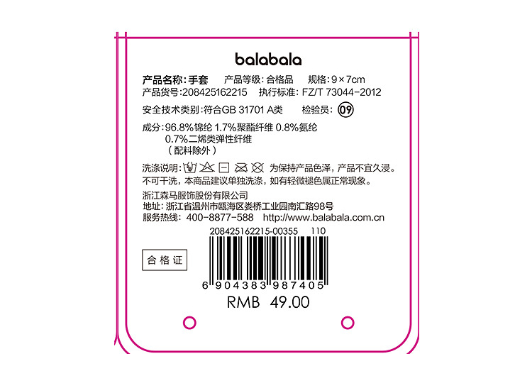巴拉巴拉balaOne儿童手套男童橄榄球玩偶翻盖2025年新款保暖舒适