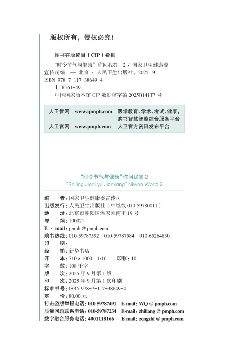 书名:“时令节气与健康”你问我答2