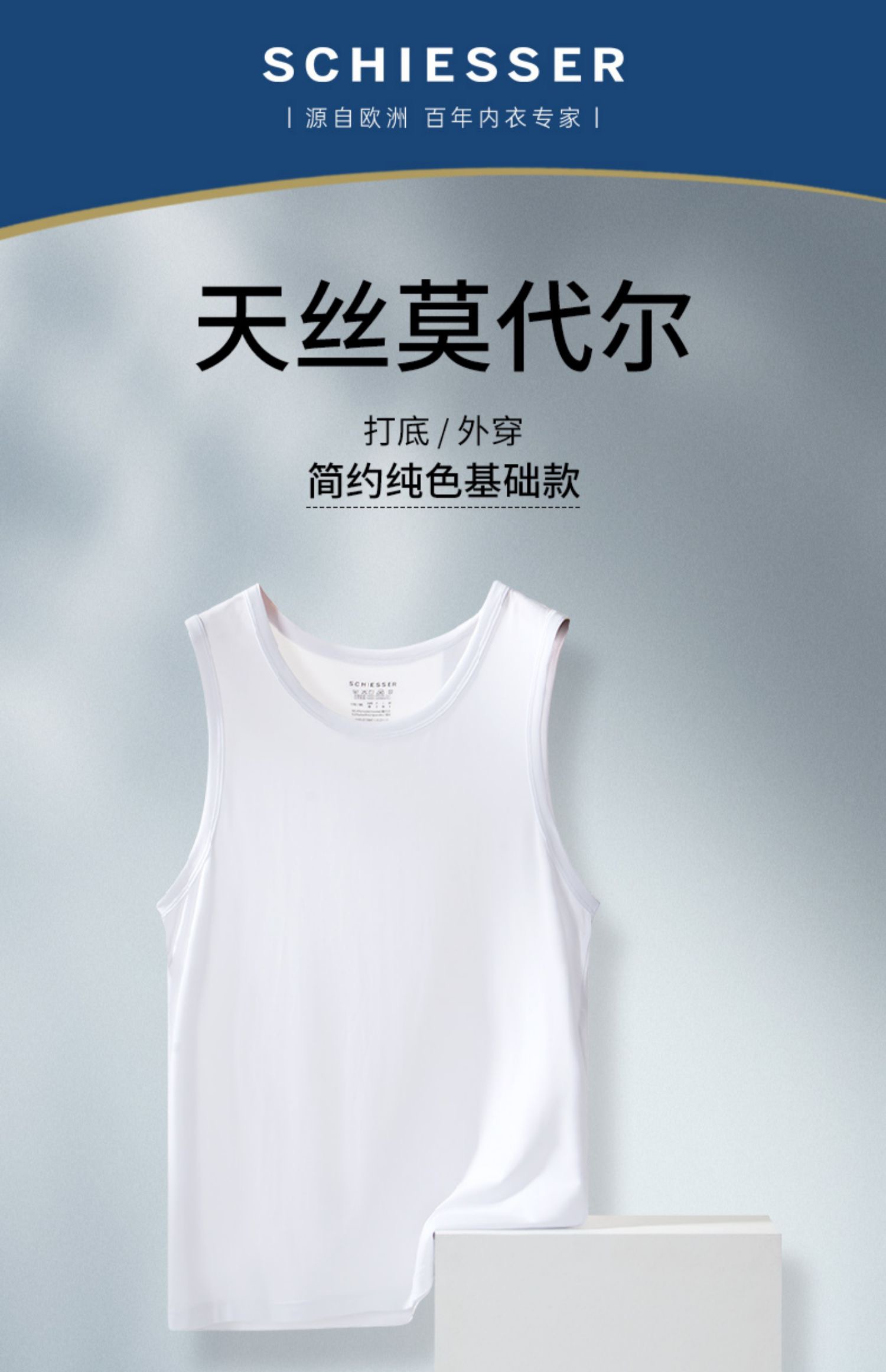 【天丝莫代尔】SCHIESSER 德国舒雅男士薄款天丝莫代尔透气亲肤背心35/18548V