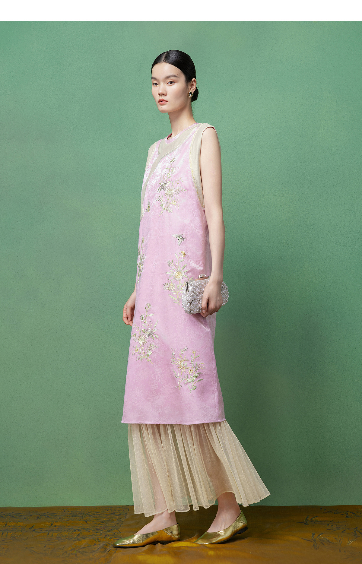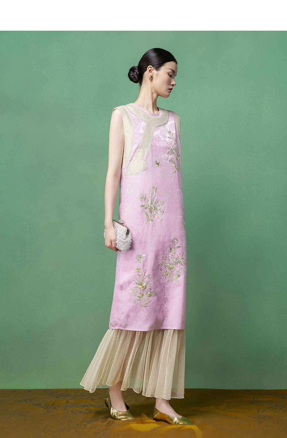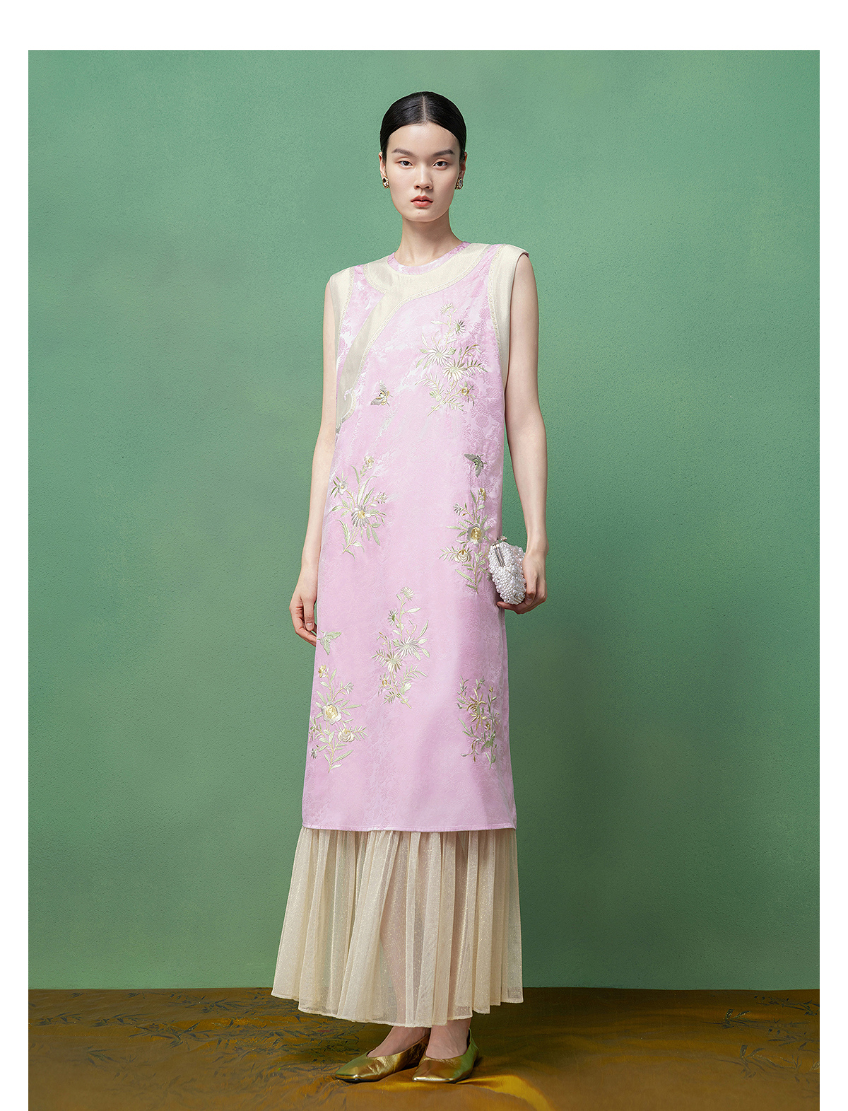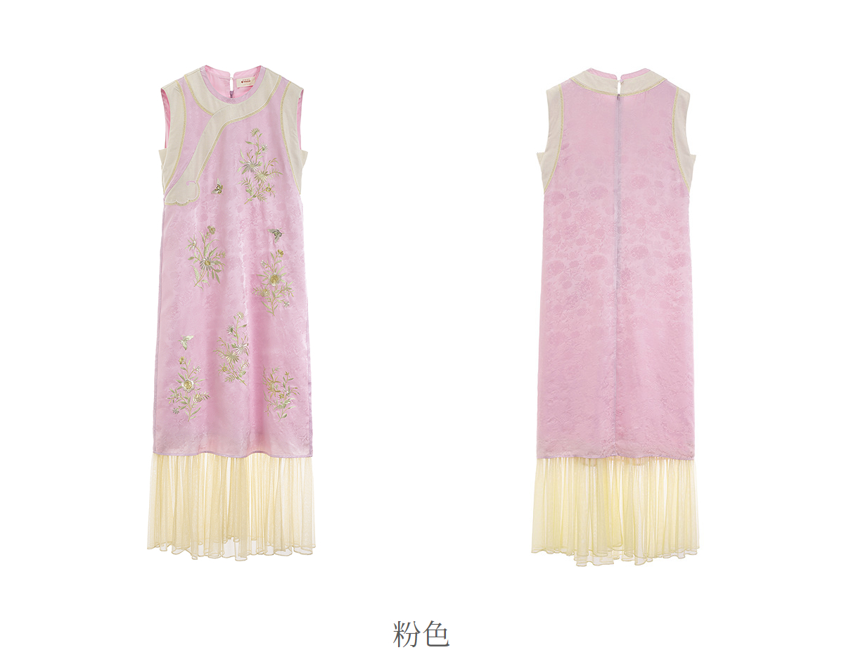 【林栖设计小店】花间芳菲|真丝罗绣花拼金葱纱2026春新款连衣裙1961234