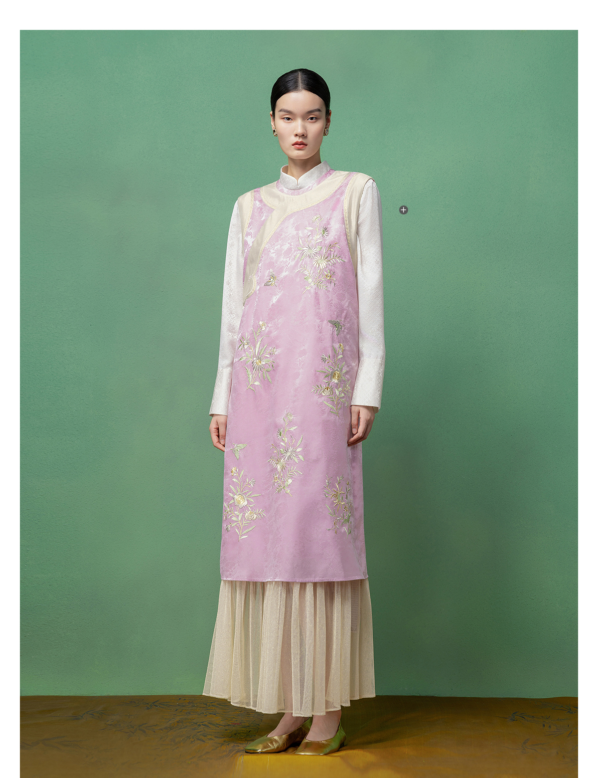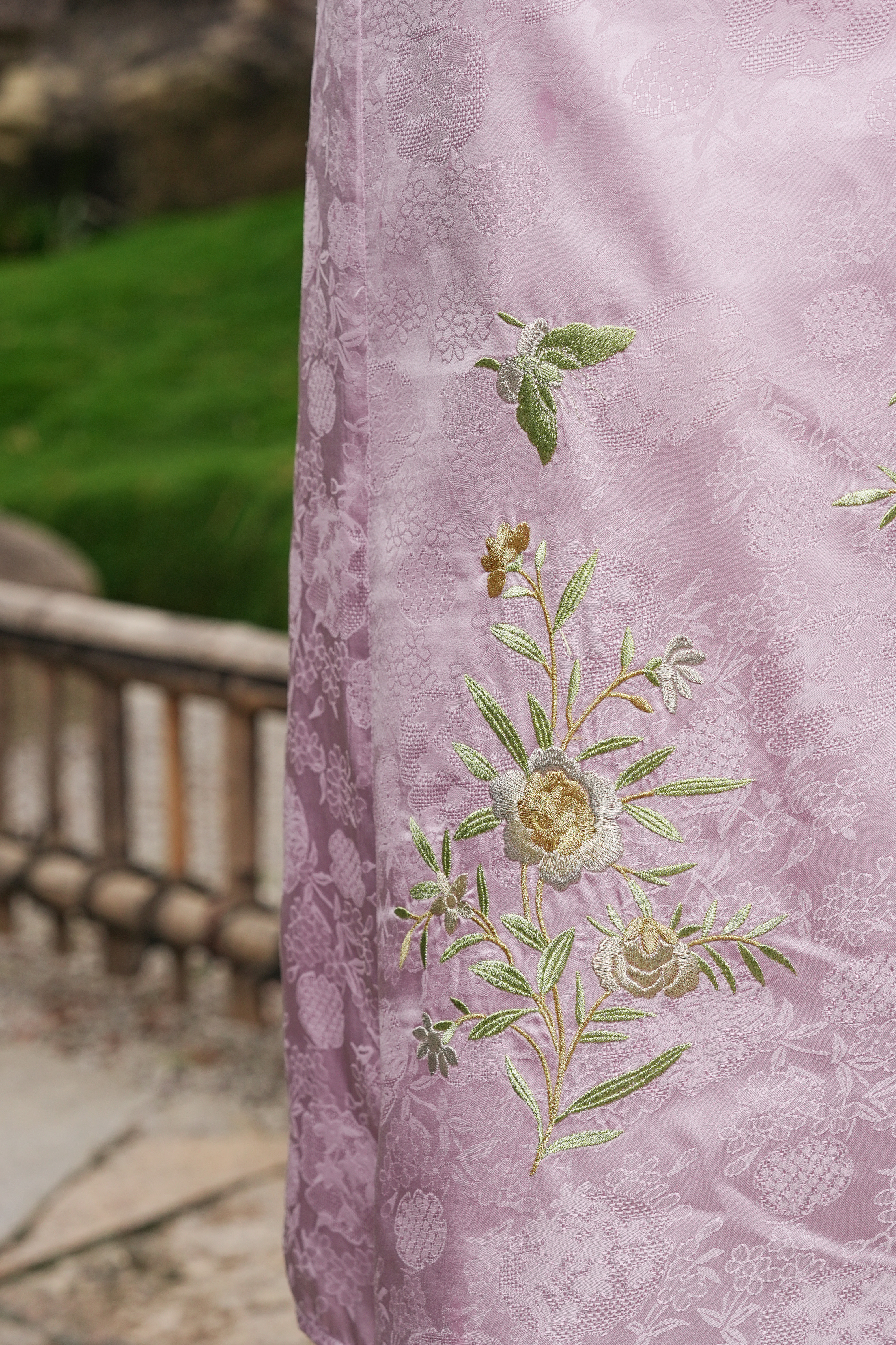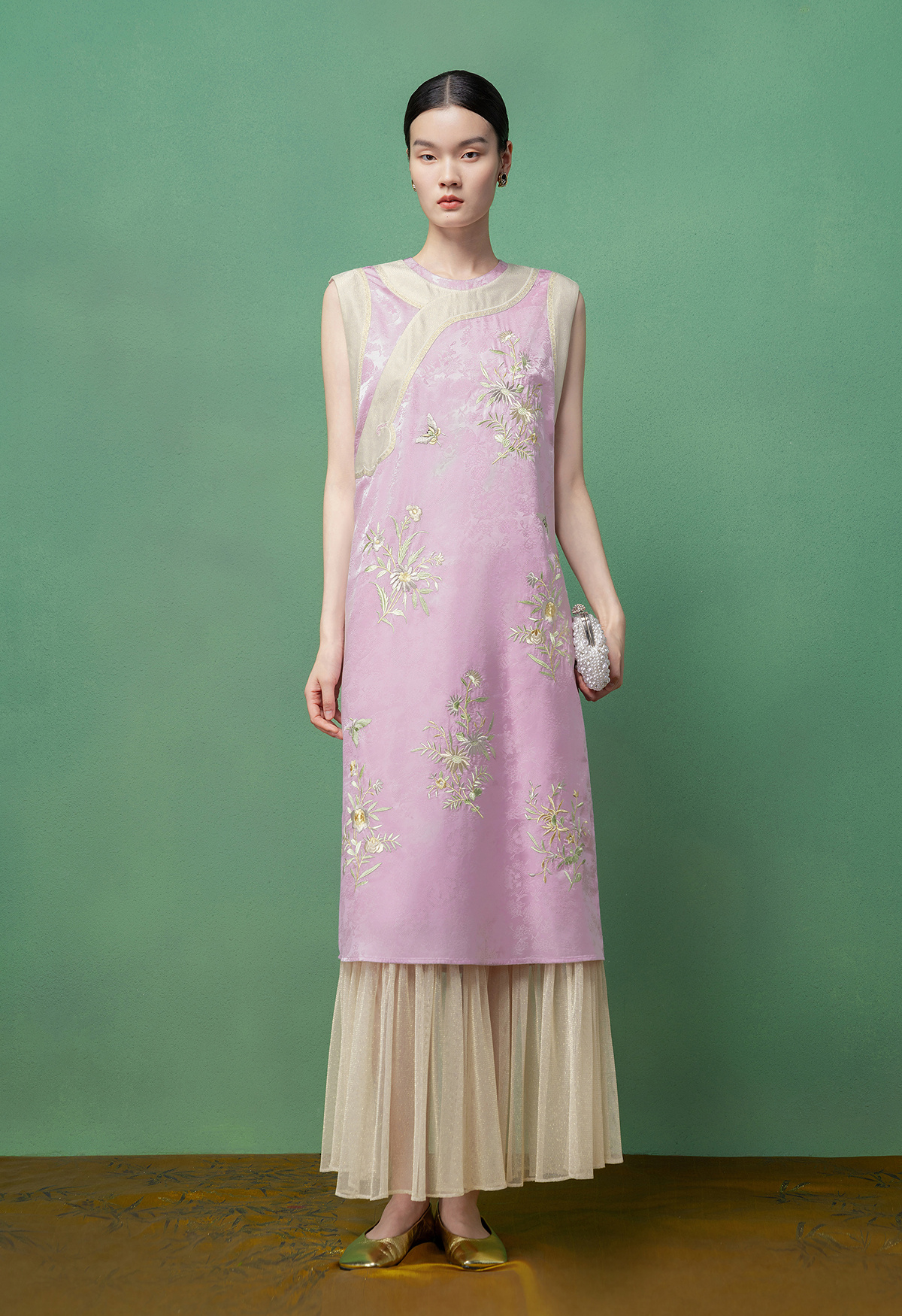 【林栖设计小店】花间芳菲|真丝罗绣花拼金葱纱2026春新款连衣裙1961234