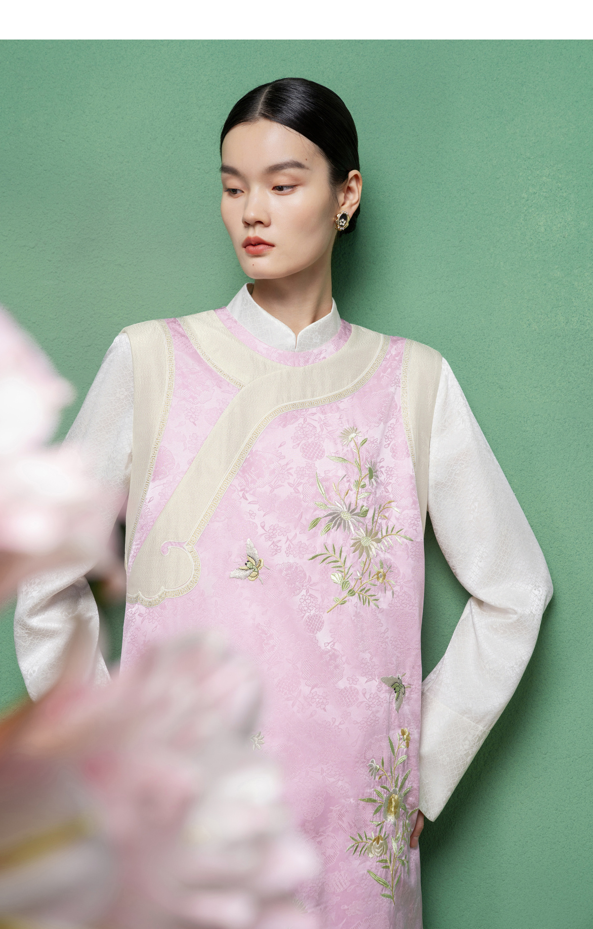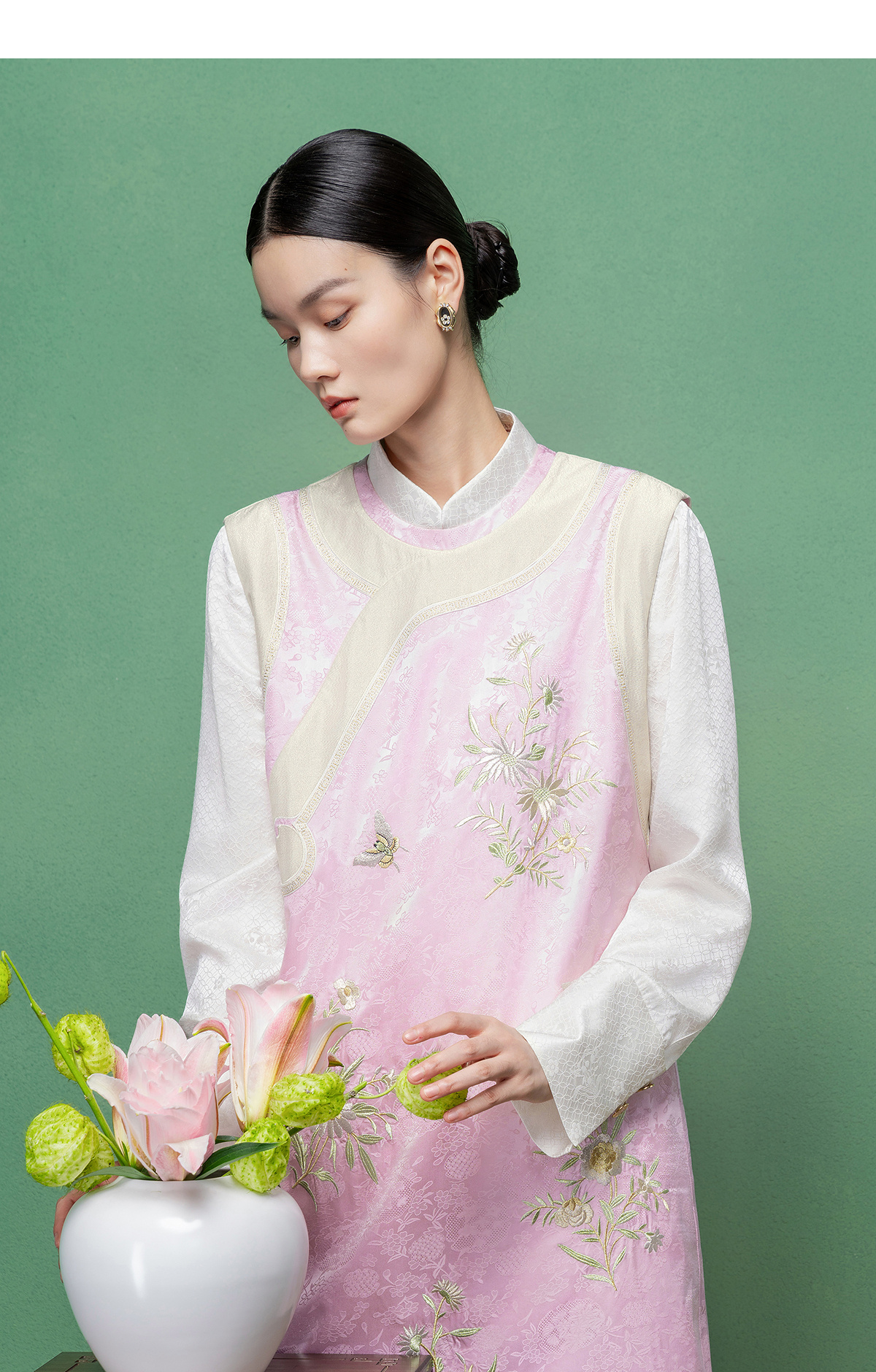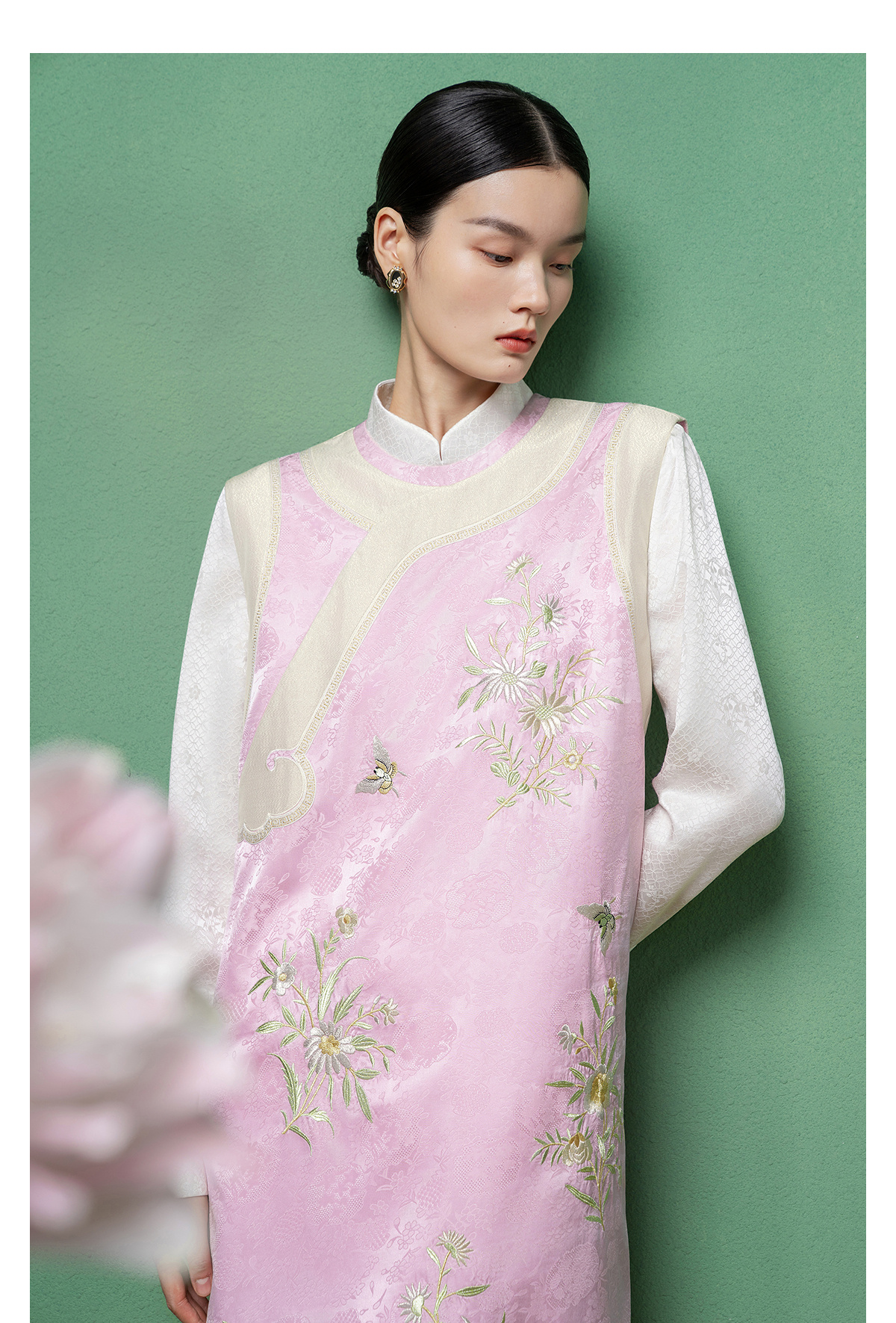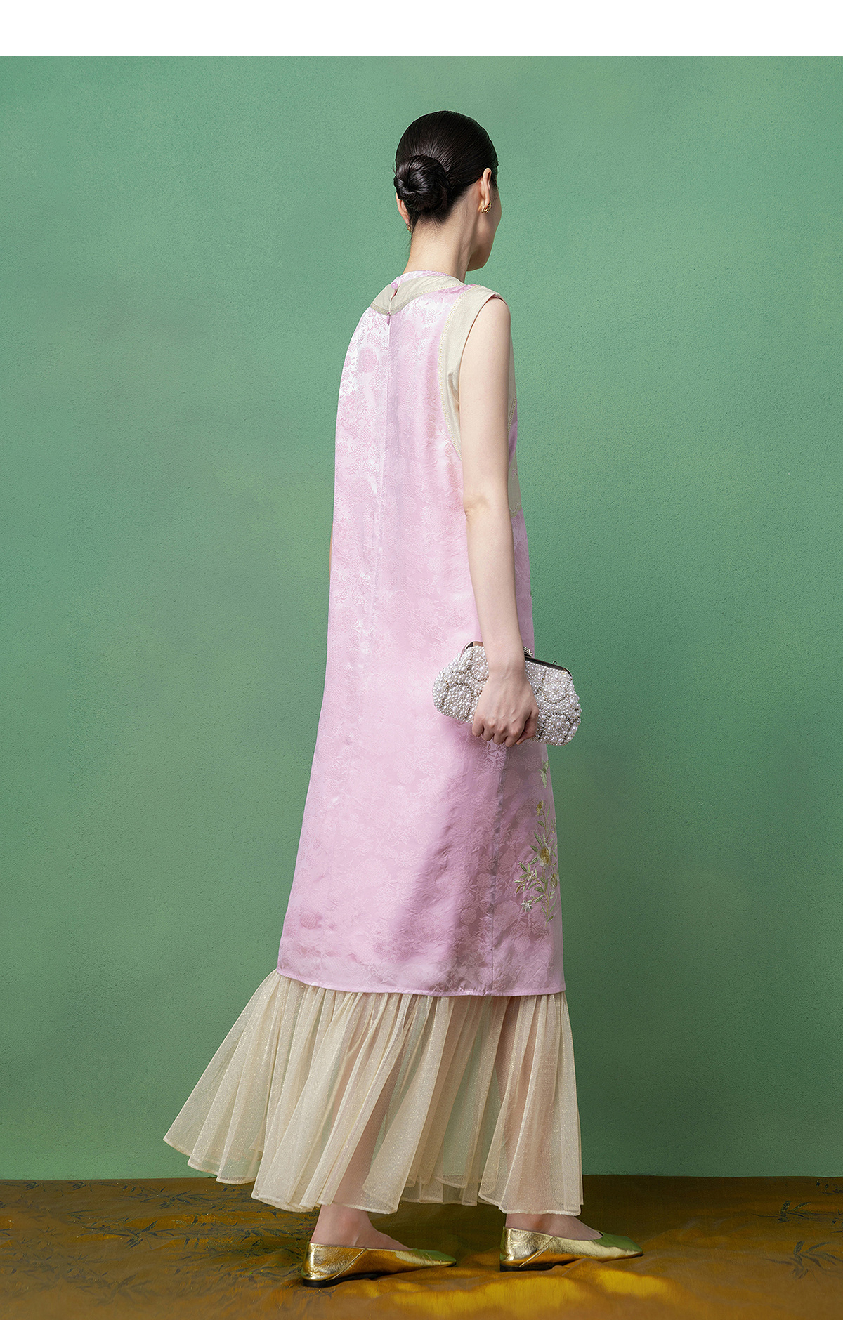 【林栖设计小店】花间芳菲|真丝罗绣花拼金葱纱2026春新款连衣裙1961234