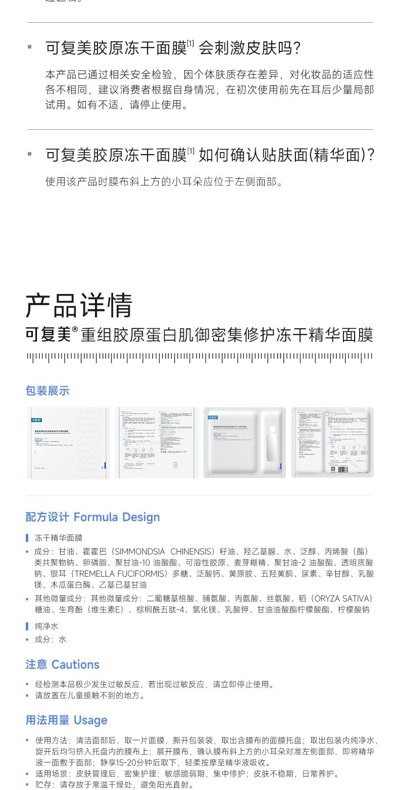 【多么生活专属】可复美重组胶原蛋白肌御密集修护冻 干精华面膜(无盒)