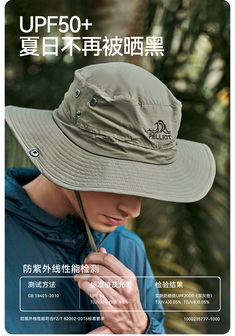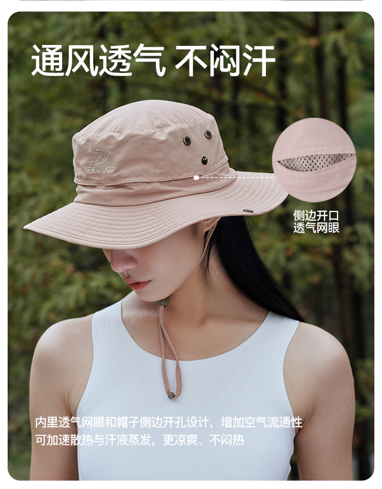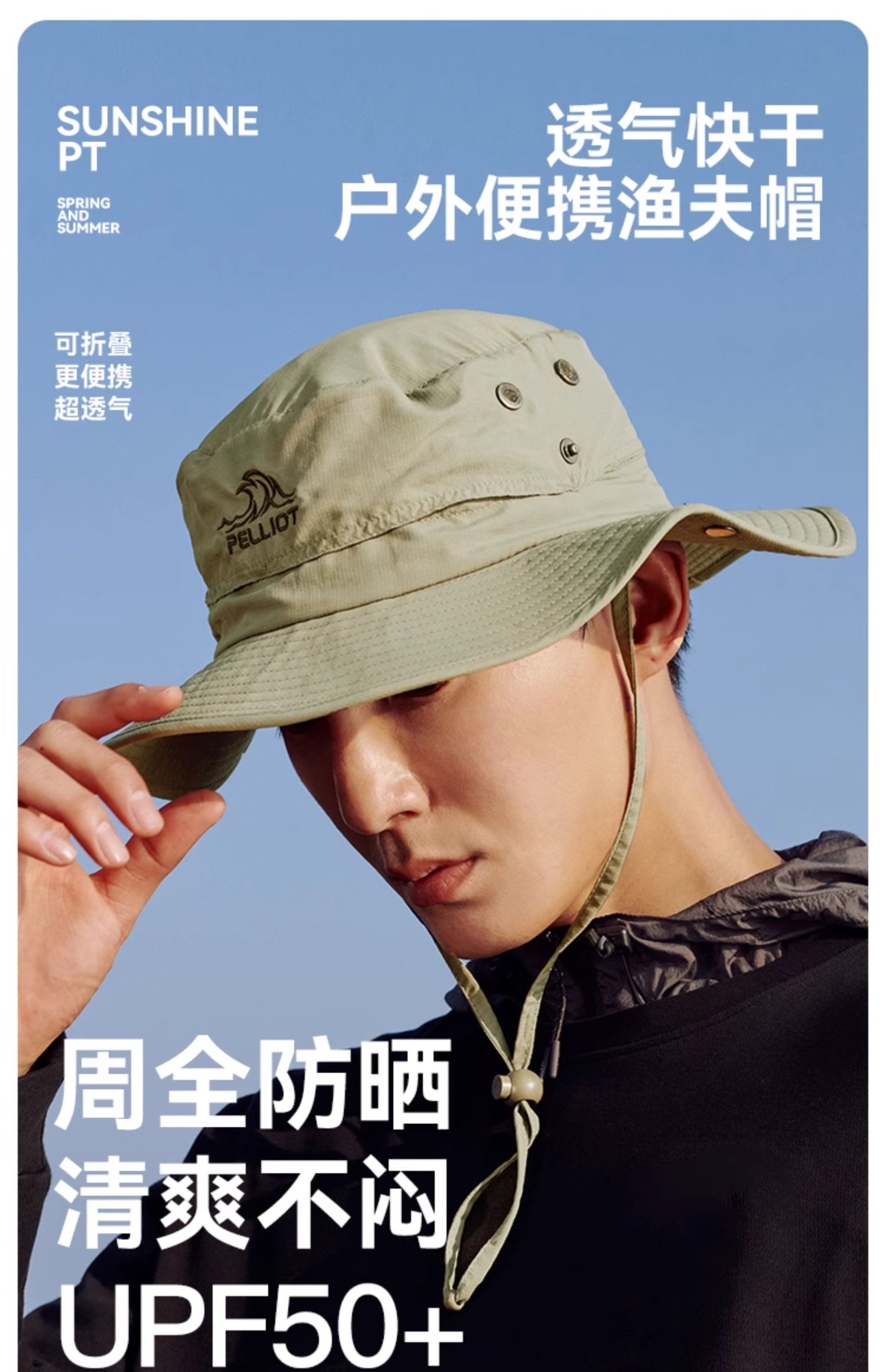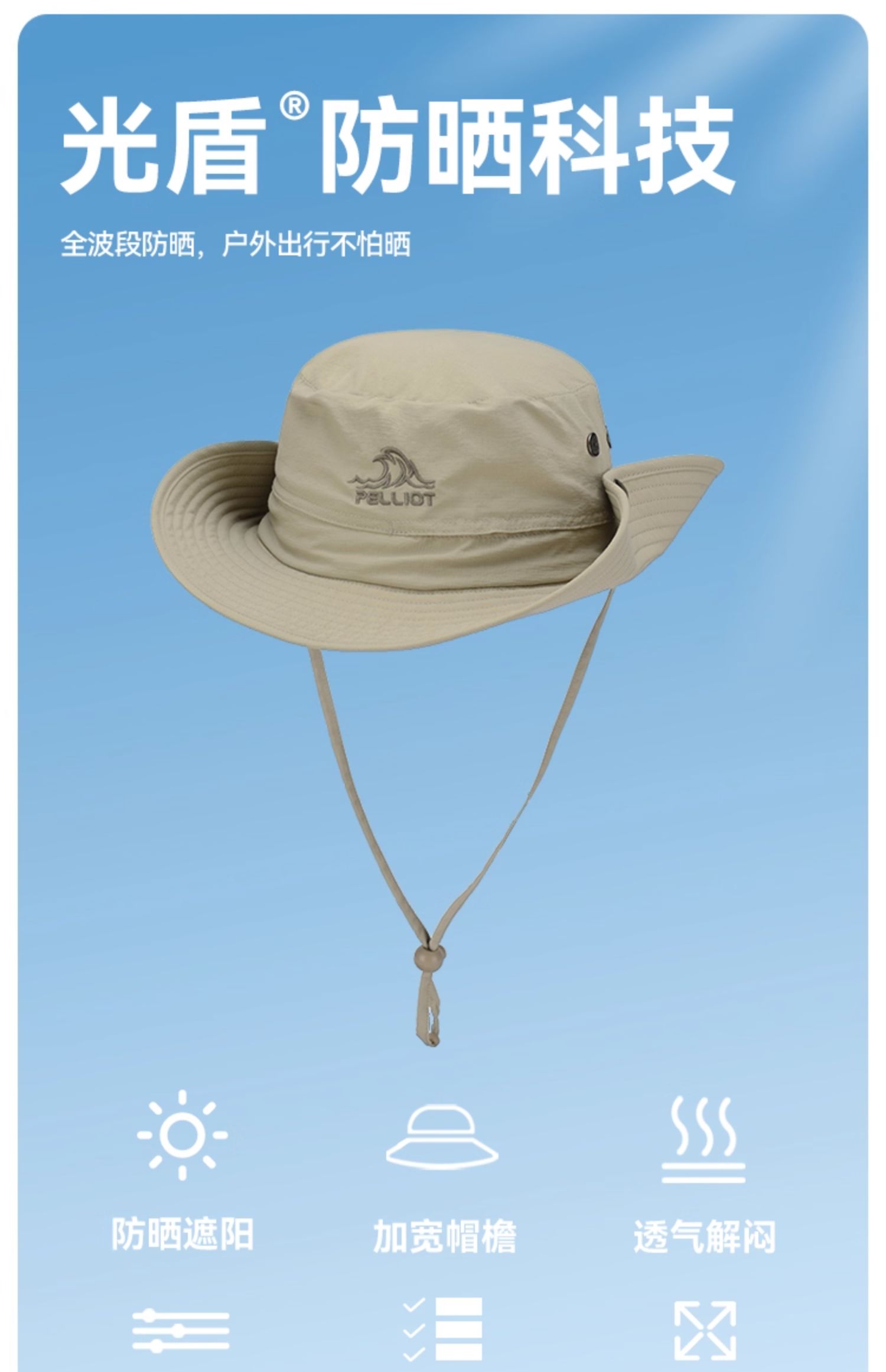伯希和户外防晒帽女2025新款登山徒步折叠遮阳透气遮阳渔夫帽男