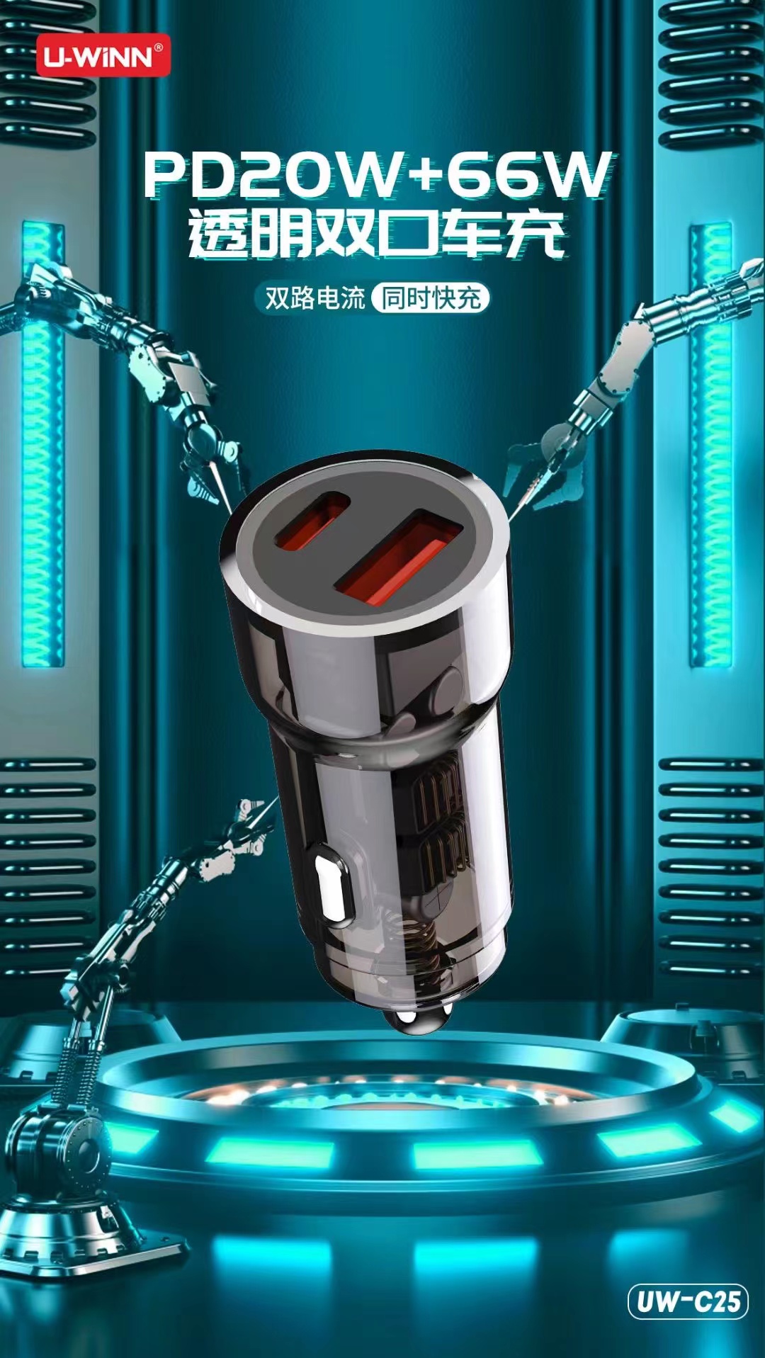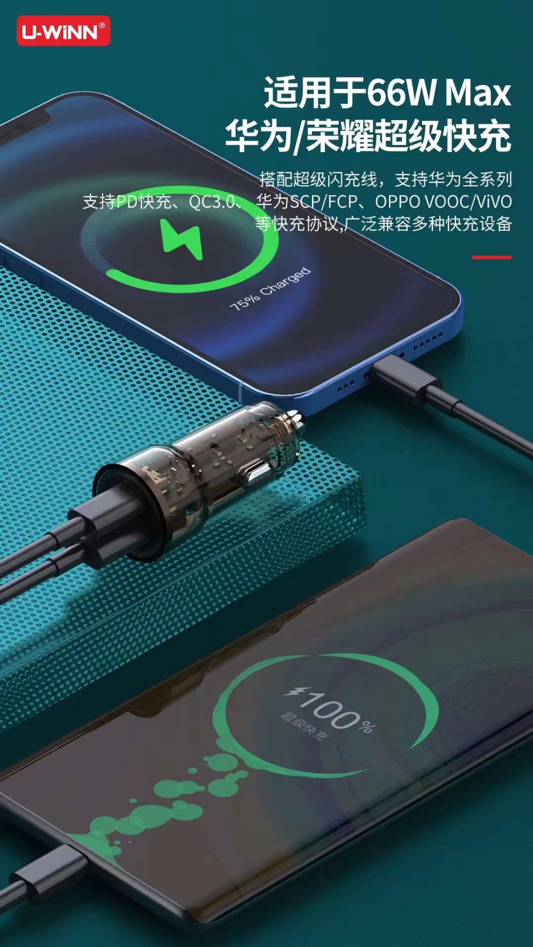25w全兼容闪充pd+66w全兼容快充车载充电器插头智能通用