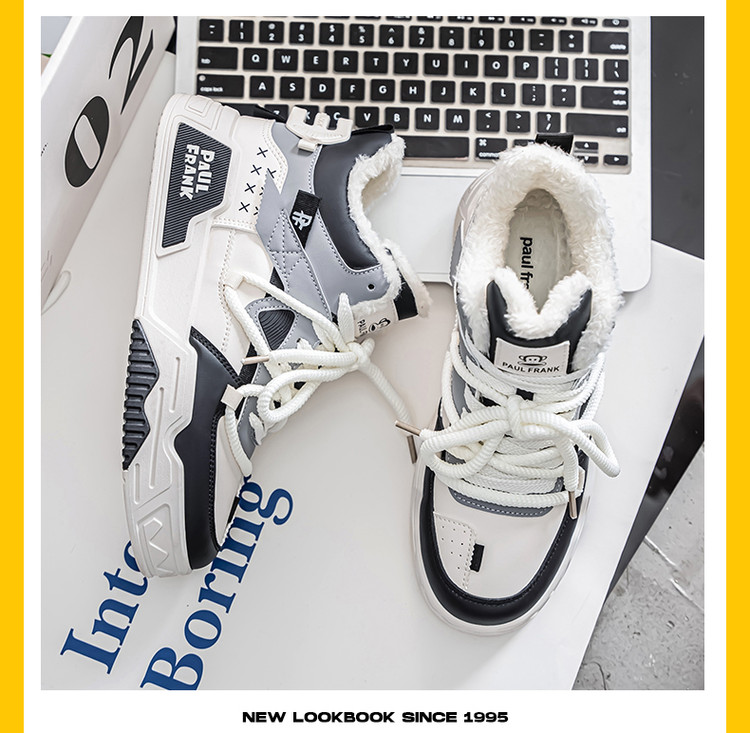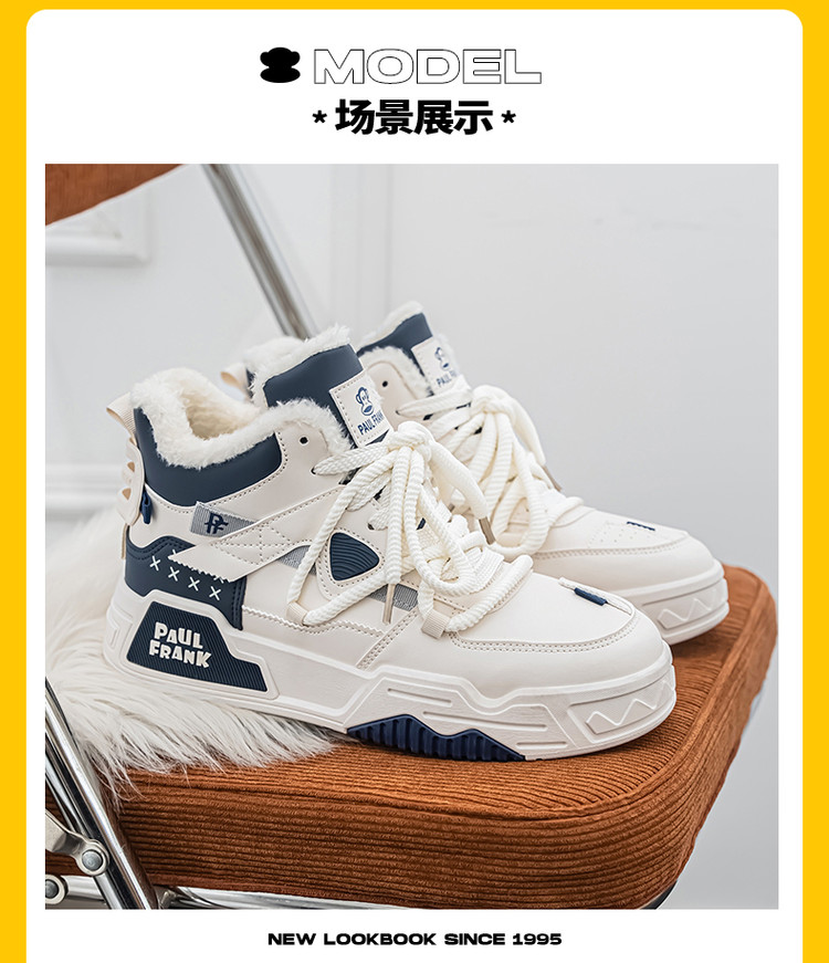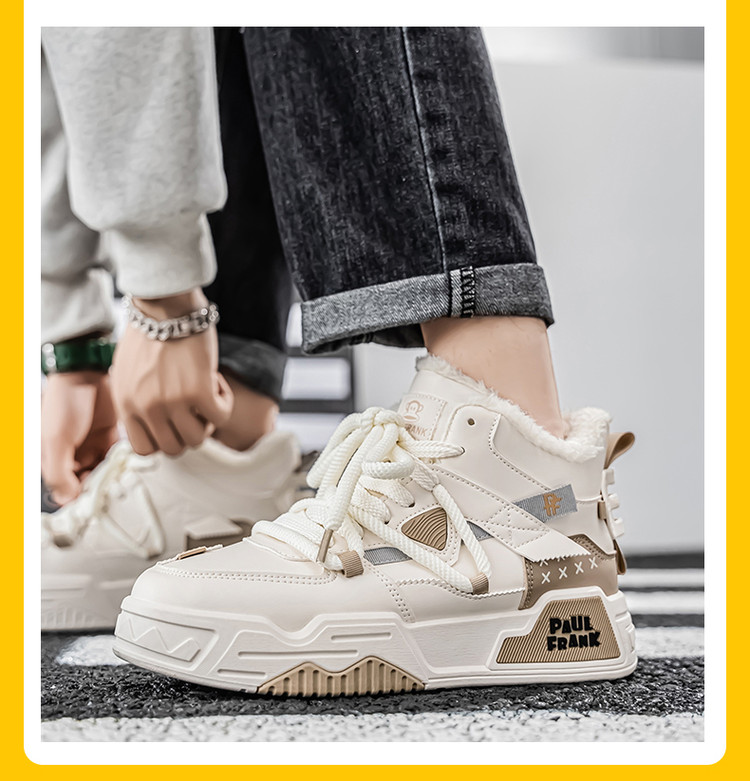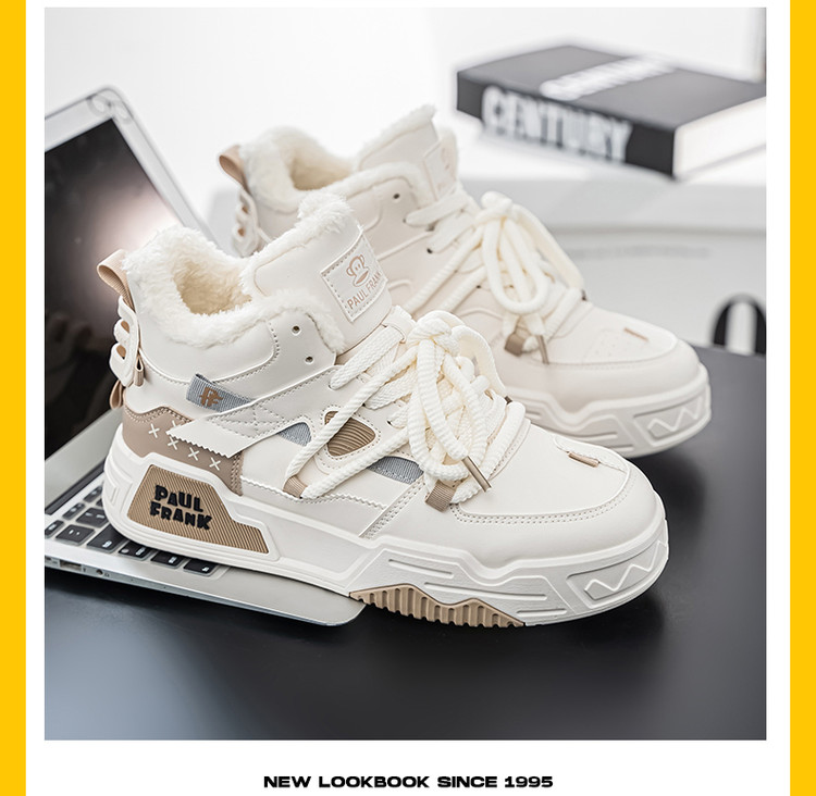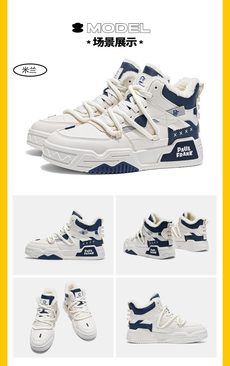 大嘴猴(paul frank)【男鞋高帮板鞋】周日(12.21)上午10点开始 冬季加绒保暖高帮休闲鞋百搭学生厚底运动鞋-FF
