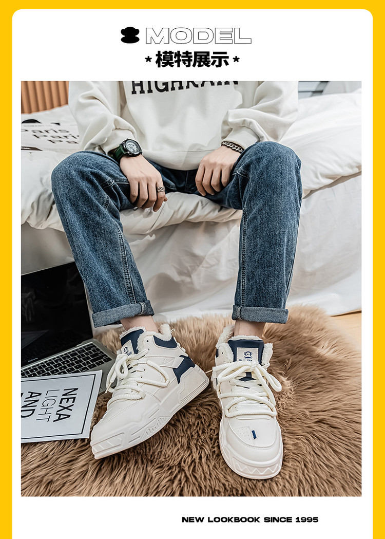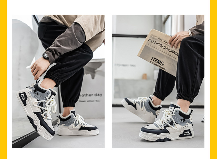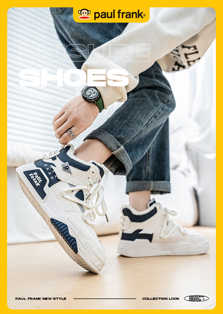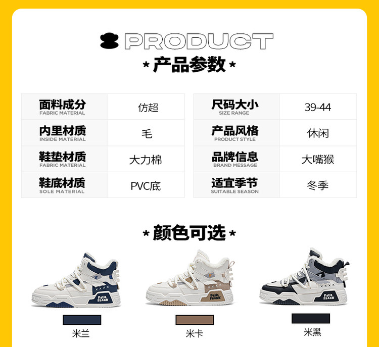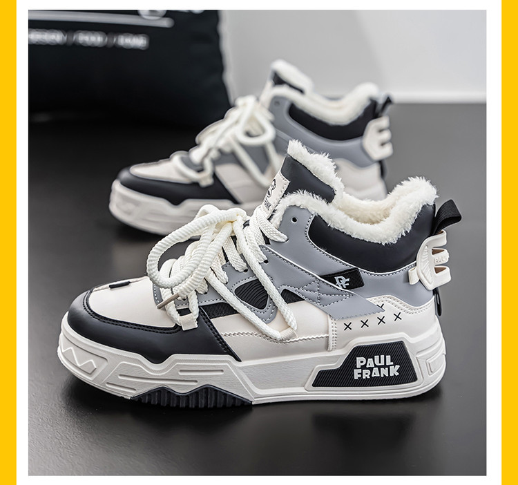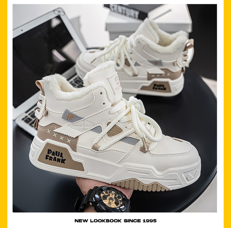 大嘴猴(paul frank)【男鞋高帮板鞋】周日(12.21)上午10点开始 冬季加绒保暖高帮休闲鞋百搭学生厚底运动鞋-FF